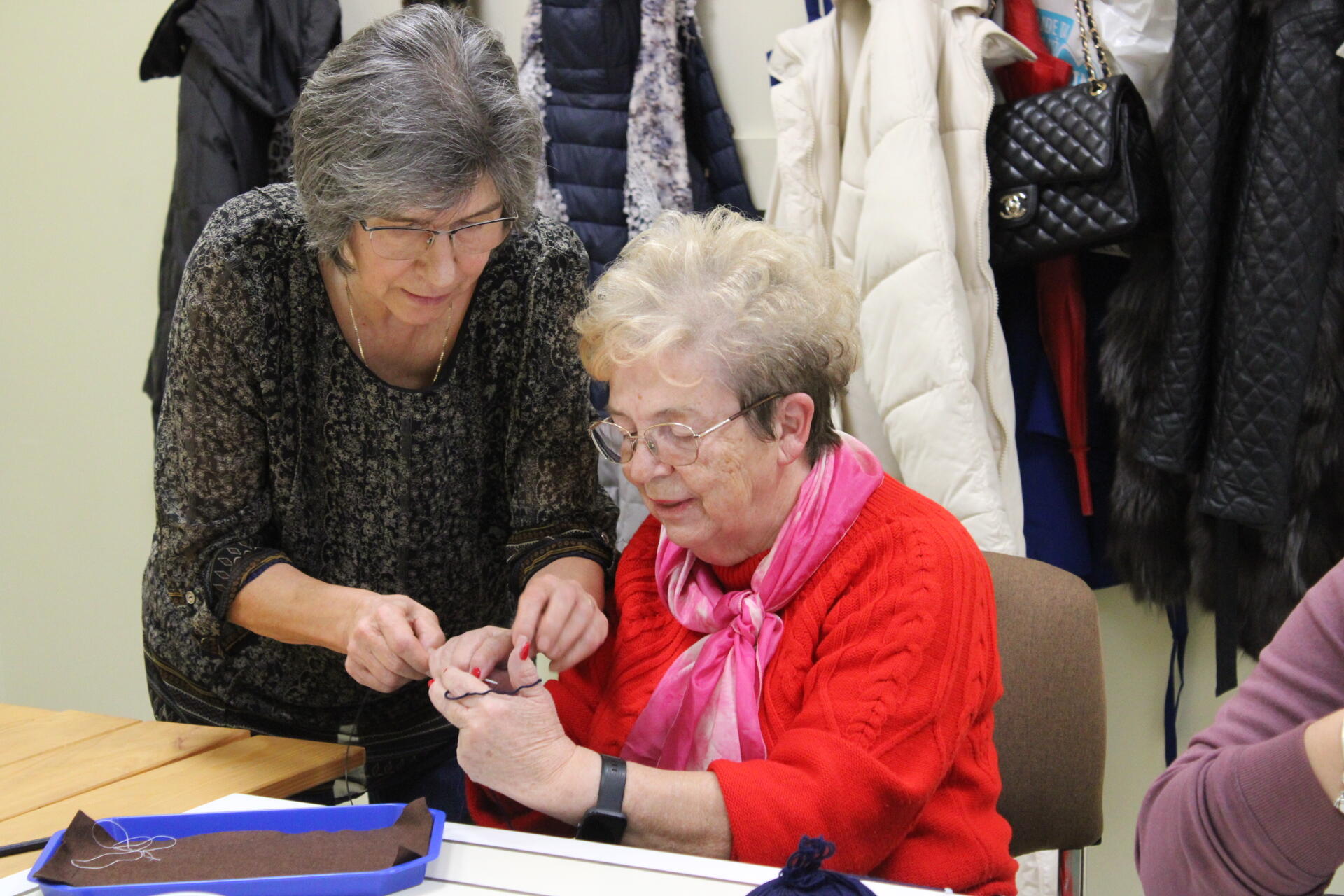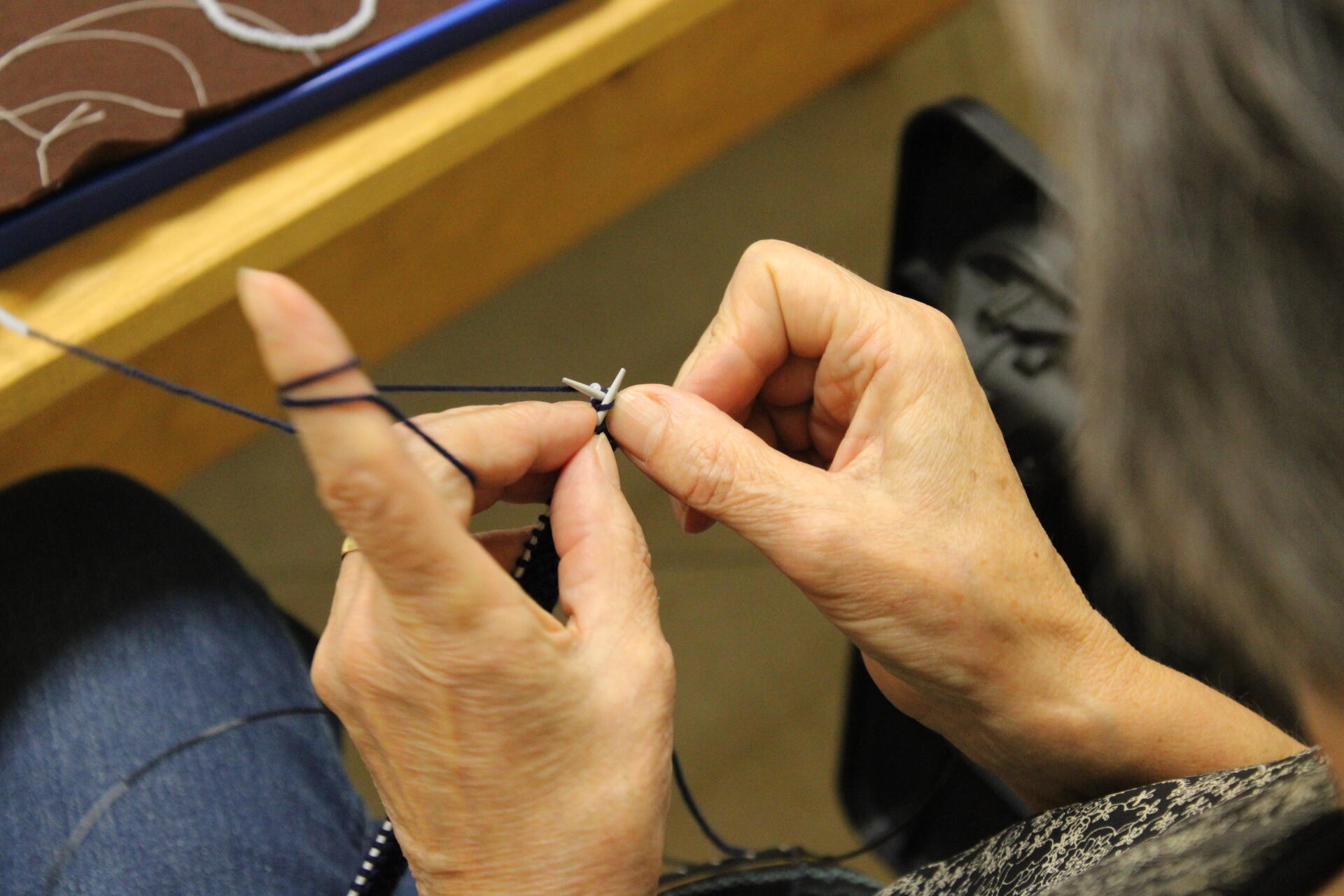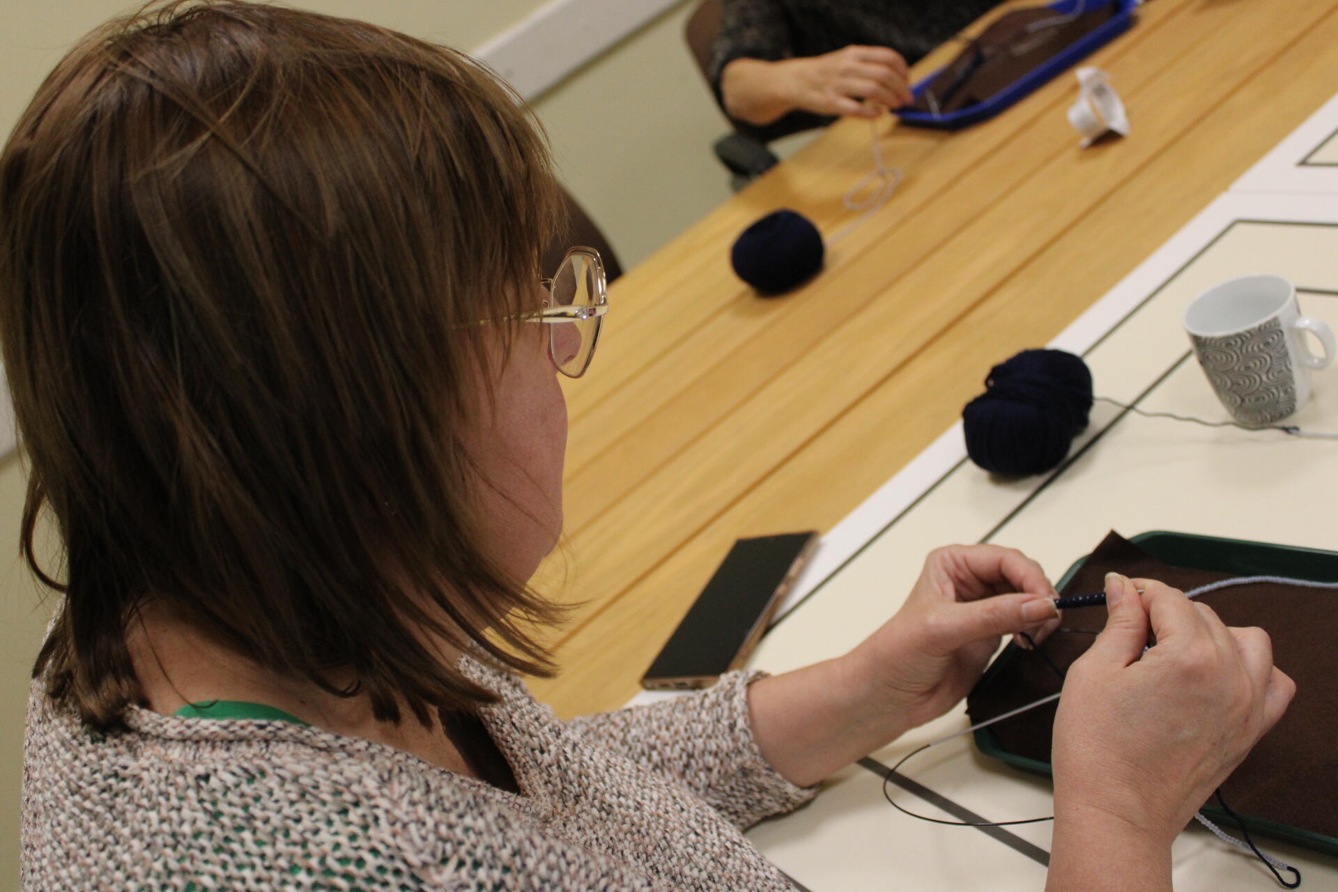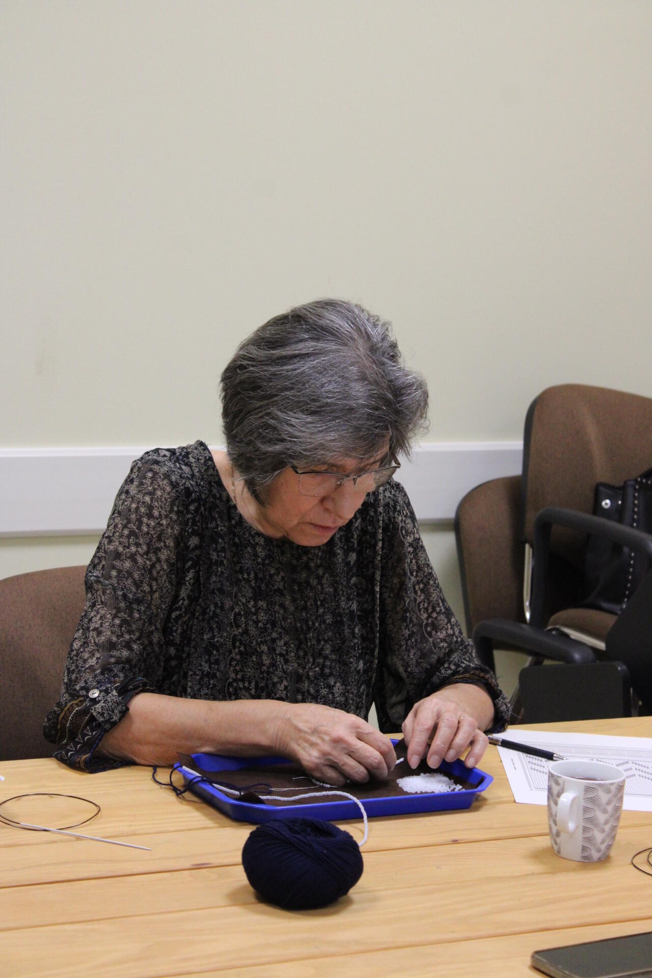A könyvjelző sikeres befejezése után új munkába vágtak bele szorgos gyöngykötőink. A gyöngyök sokaságának felfűzését követően egy, ma már ritkán használt, de igen praktikus kiegészítő, az érmelegítő készítésére került sor. A kezdősor megkötése után indulhatott is a mintalap alapján a motívum munkadarabba való beillesztése. Jövő héten folytatjuk!