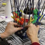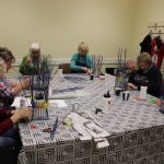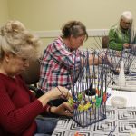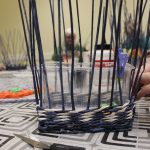 A papírfonó szakkör tagjai hétfőn folytatták a múlt alkalommal megkezdett kék négyszögletű kosár fonását. Ezúttal fehér pálcák felhasználásával minta is került a tároló falába, ezzel díszítve azt. Következő alkalommal a munkadarab befejezése után várja szakköröseinket az új feladat!
