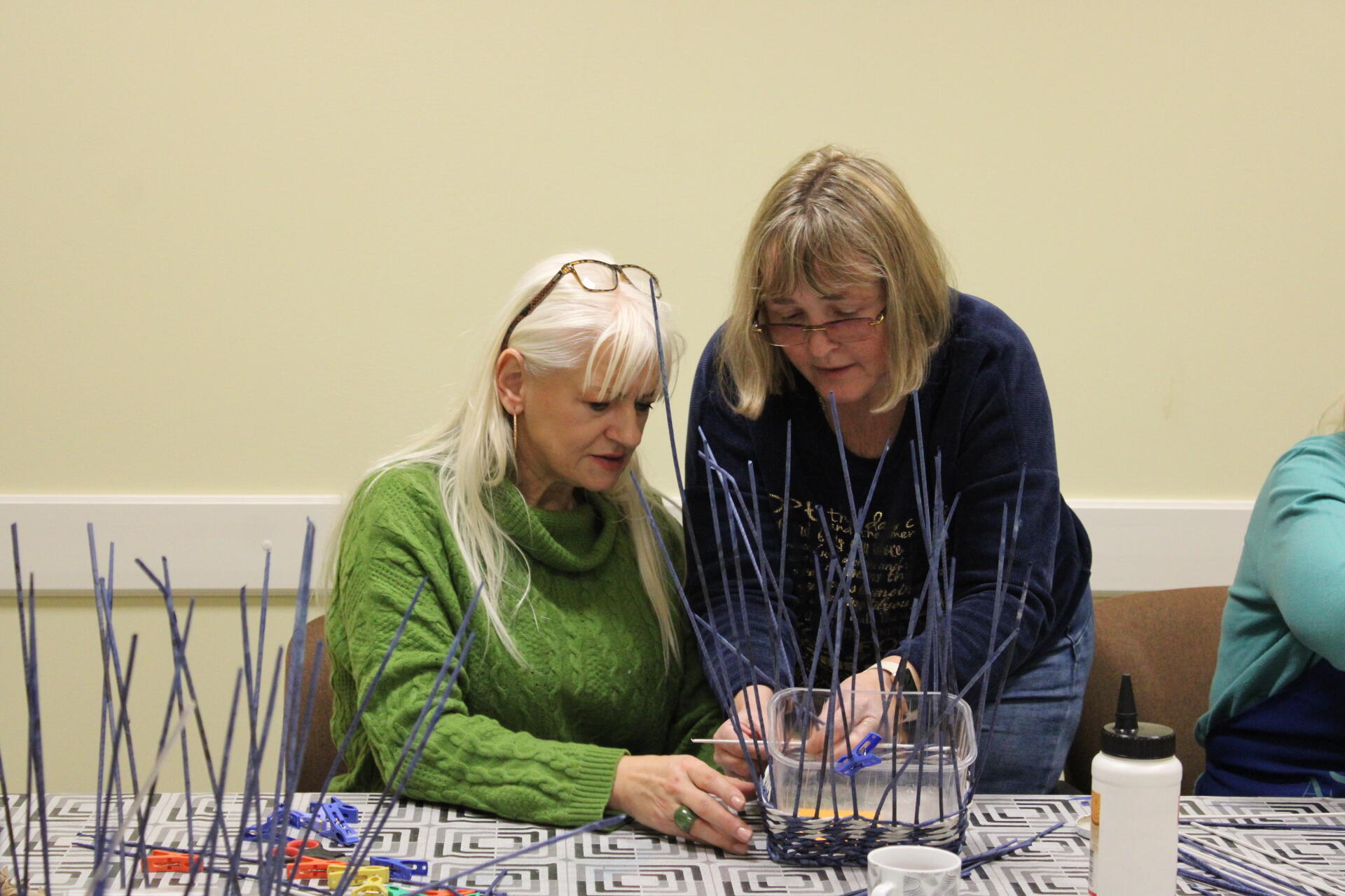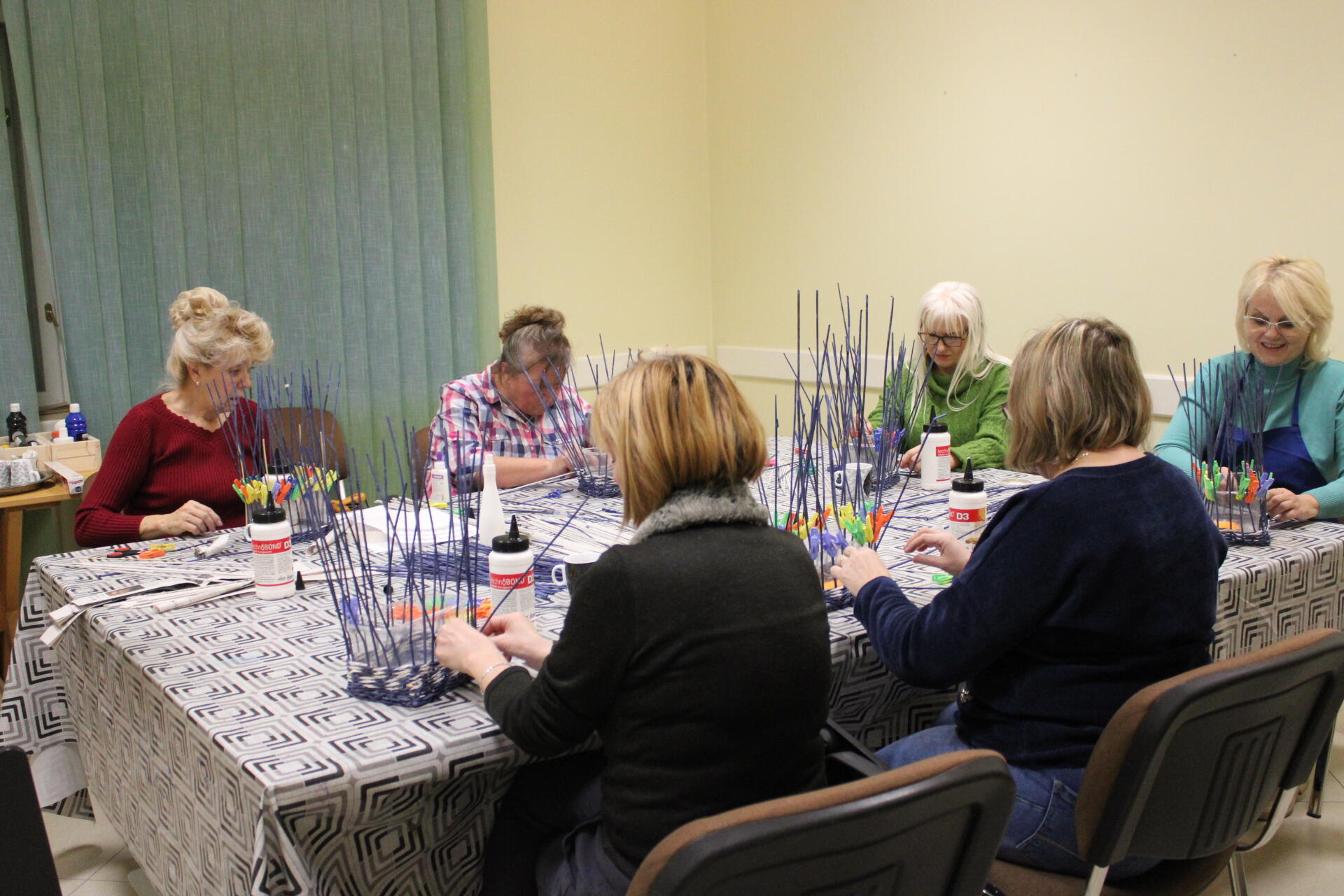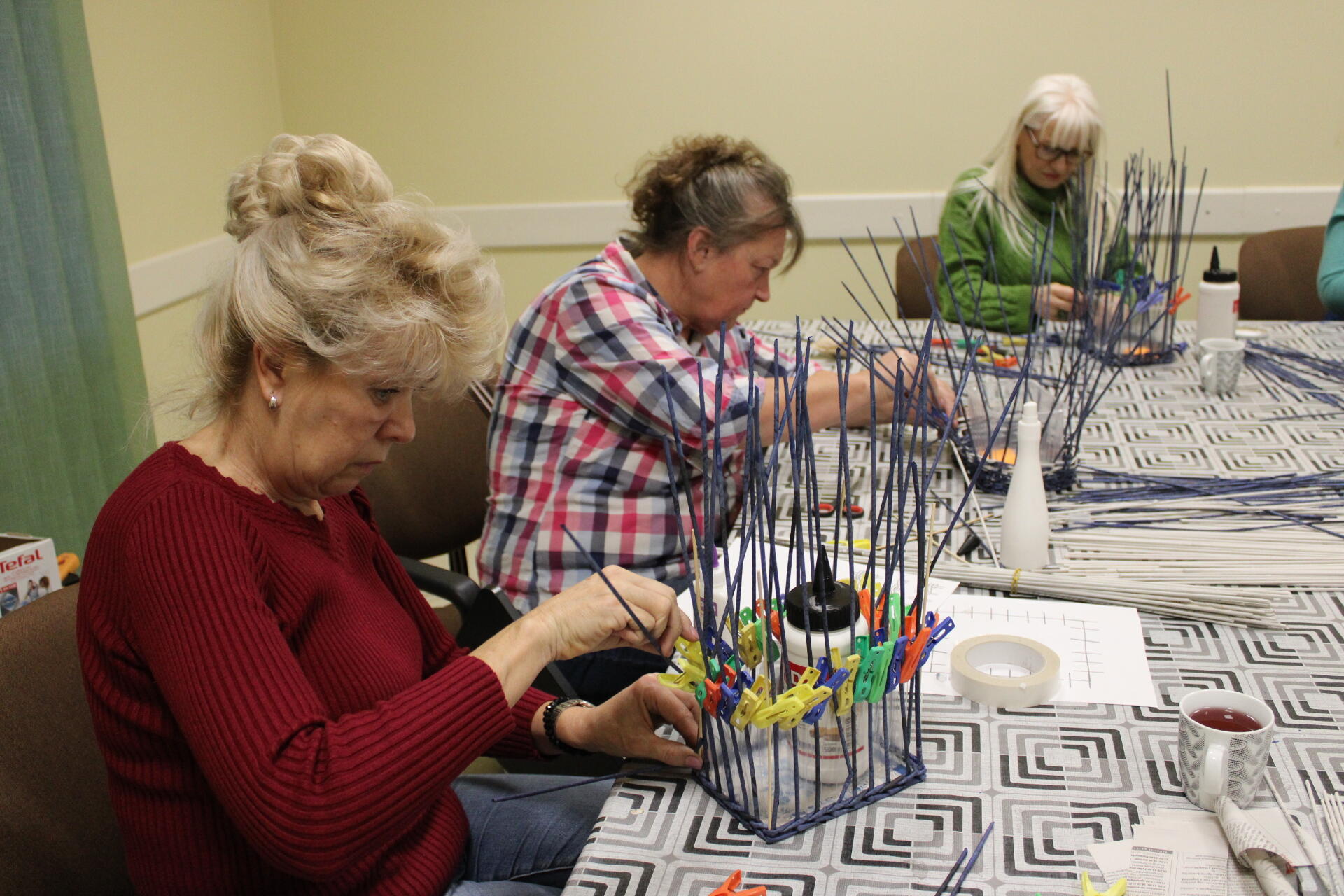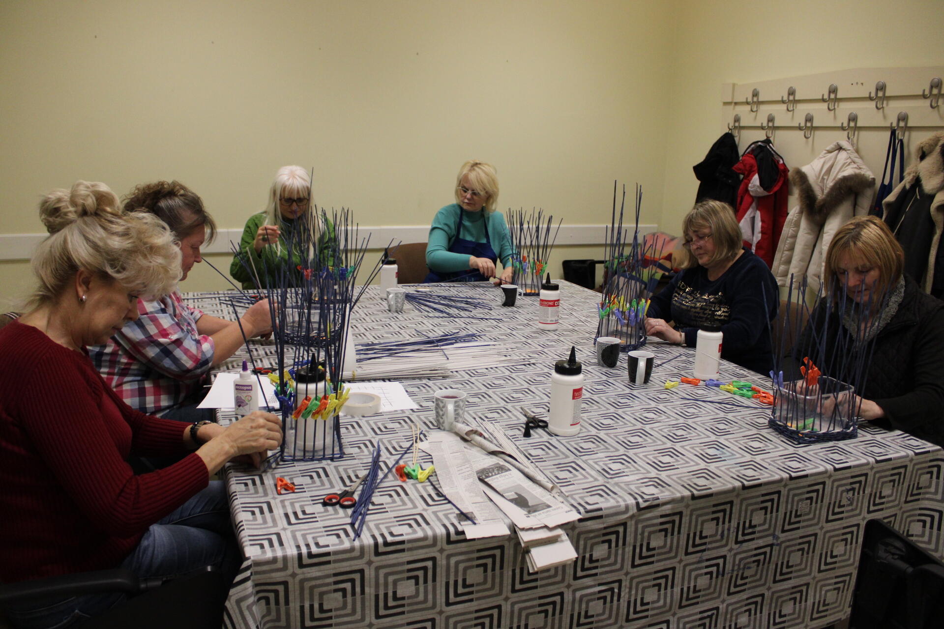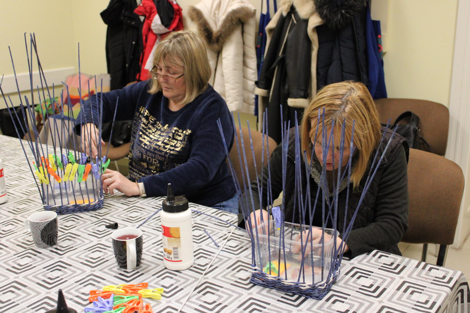 A papírfonó szakkör tagjai hétfőn folytatták a múlt alkalommal megkezdett kék négyszögletű kosár fonását. Ezúttal fehér pálcák felhasználásával minta is került a tároló falába, ezzel díszítve azt. Következő alkalommal a munkadarab befejezése után várja szakköröseinket az új feladat!
