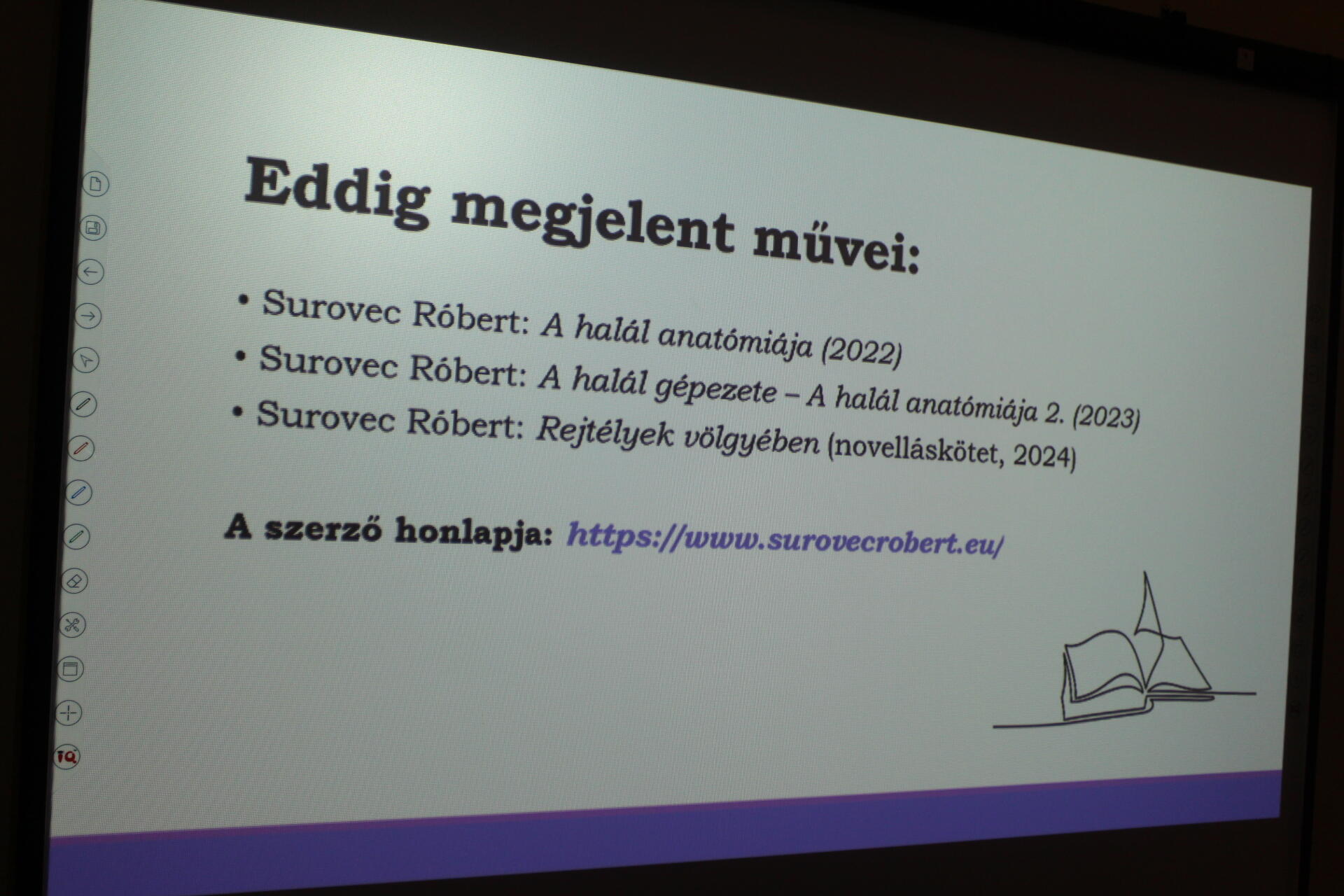 Surovec Róbert felvidéki származású magyar író debütáló regényéről beszélgettünk Krimi-klub foglalkozásunk december 2-ai eseményén. A halál anatómiája című, 2022-es krimi több szempontból is izgalmas olvasmánynak bizonyult: a csoporttagok lelkesen számoltak be a XIX. századbeli Kassán játszódó regény legemlékezetesebb mozzanatairól. Surovec Róbert trilógiájának első része kapcsán a könyv hangulatáról beszélgettünk, valamint kitértünk az amatőr nyomozópáros, Rhédey Anna és Grossz Kálmán baráti kapcsolatának jelentőségére is. A rendelkezésünkre álló 90 percben megosztottuk elméleteinket A Fakó Lovas kilétéről, illetve felolvastunk pár részletet a fordulatokkal teli krimiből. Foglalkozássorozatunk következő alkalmán kiderítjük, hogyan folytatódik a kassai nyomozópáros története. Sok szeretettek várjuk vissza résztvevőinket december 16-án!