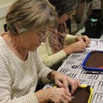 Kedden a gyöngykötők folytatták szakköri munkájukat a Szekeres László Alapítvány épületében. Az érmelegítő megkötése után a téli kiegészítőszett új darabját, a fülvédő pántot vették sorra, amelyhez elsőször a megfelelő számú gyöngyöt fűzték fel a szakkörösök, majd a minta szemügyre vétele után kezdődhetett is a beszélgetéssel, kötéssel egybekötött időtöltés. Következő alkalommal folytatjuk!