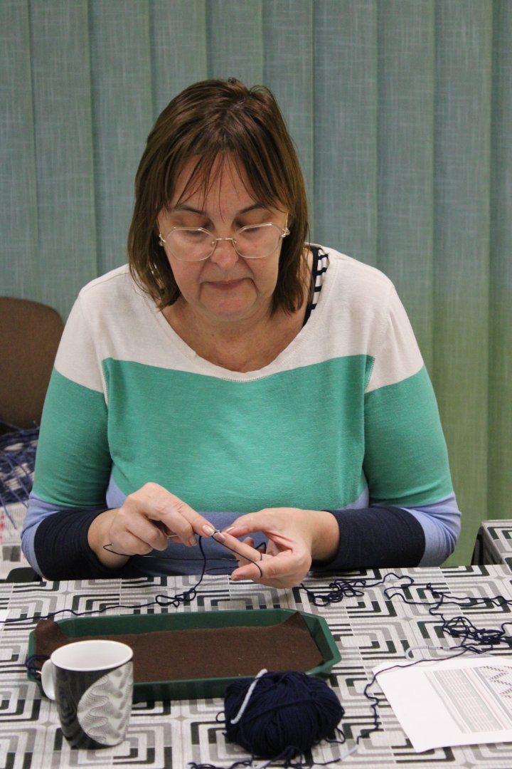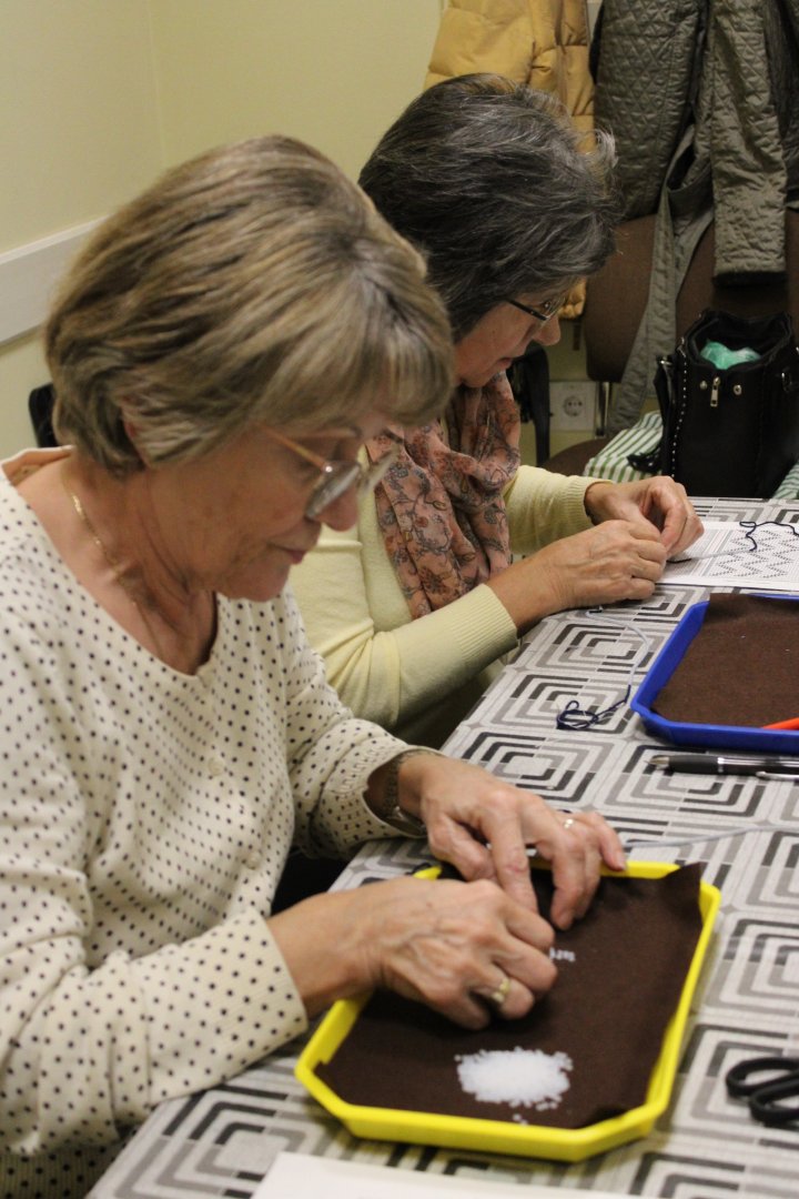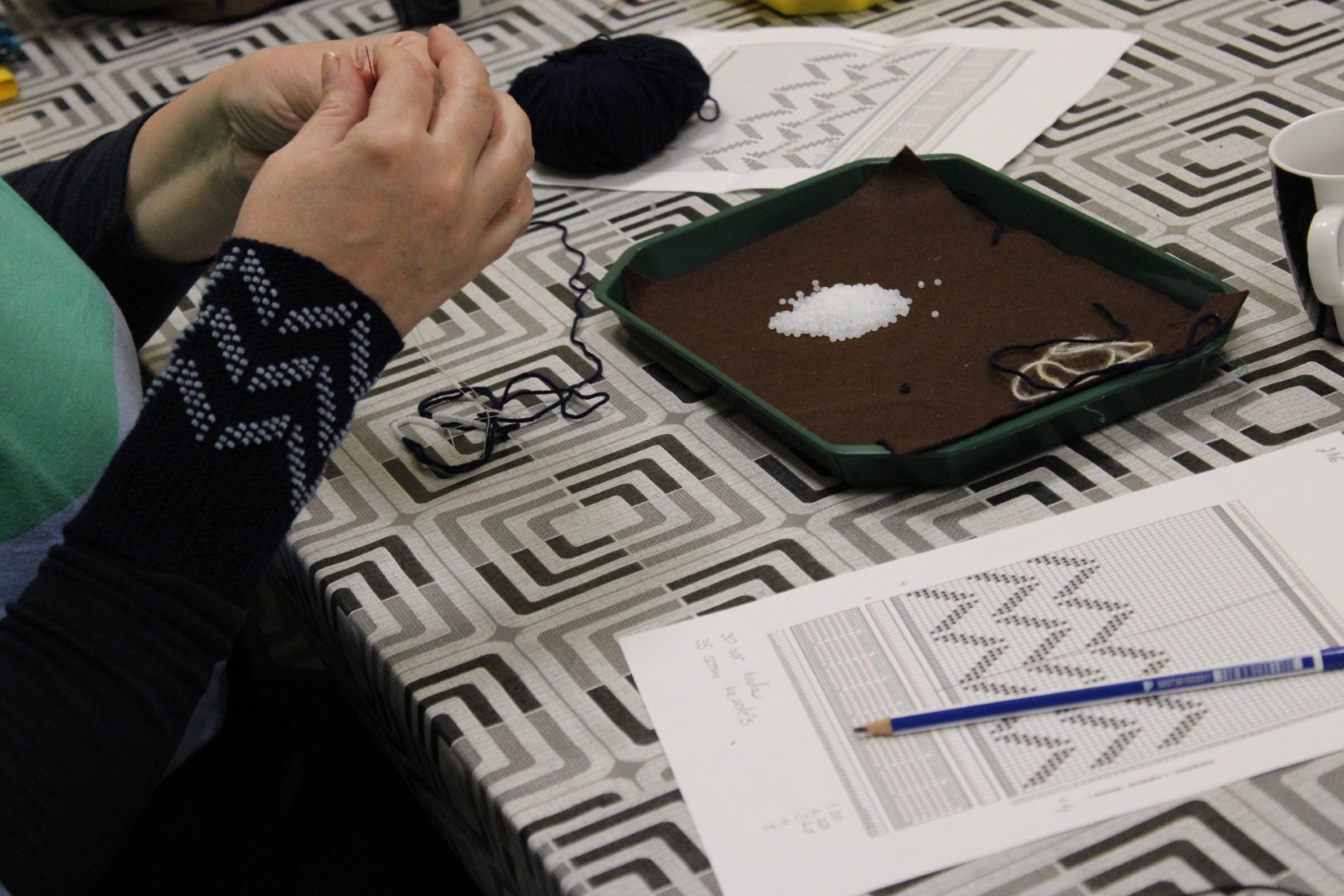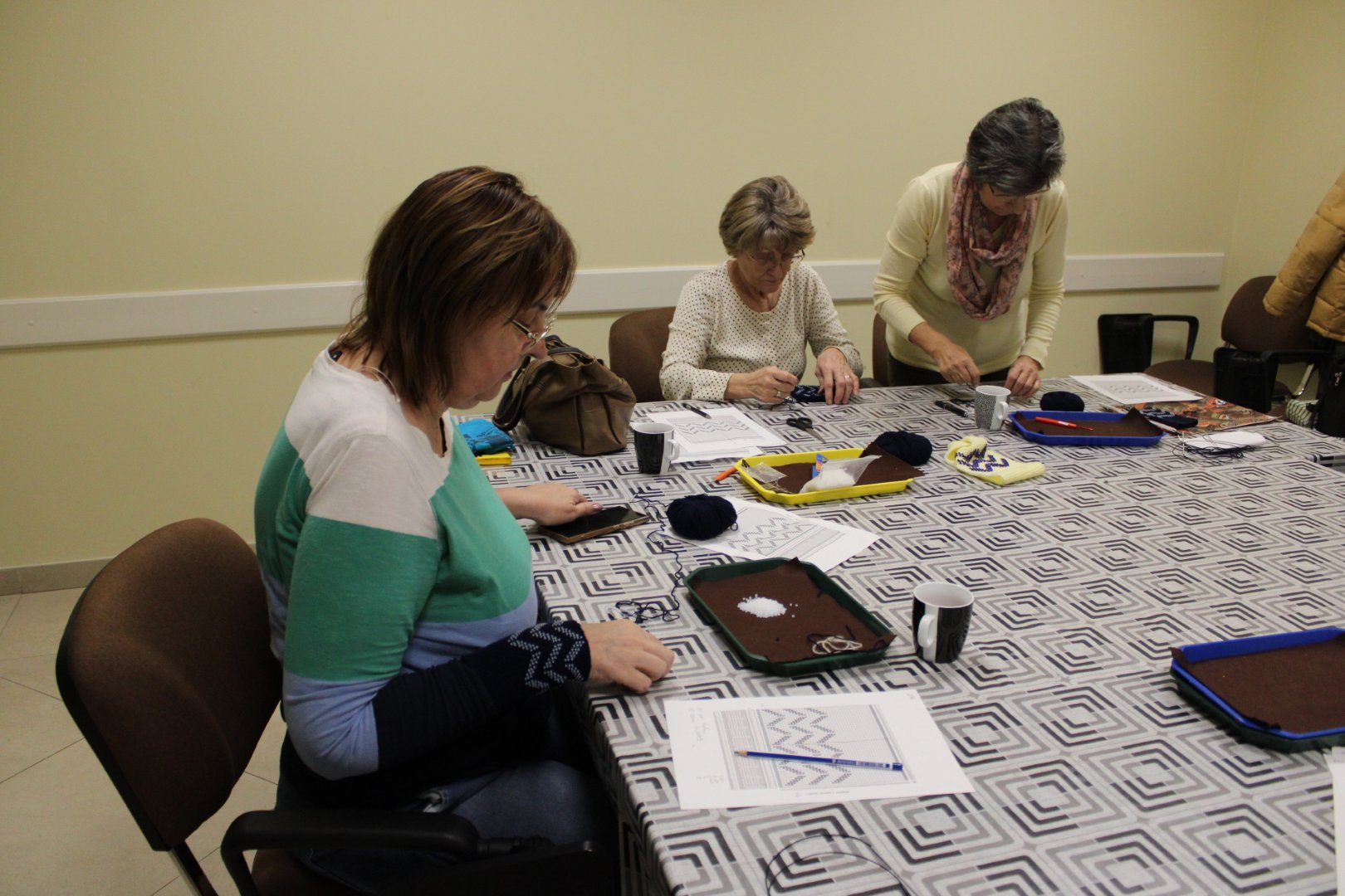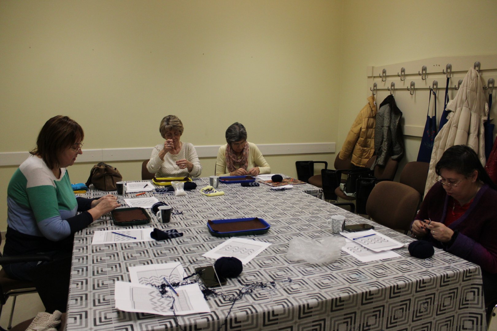 Kedden a gyöngykötők folytatták szakköri munkájukat a Szekeres László Alapítvány épületében. Az érmelegítő megkötése után a téli kiegészítőszett új darabját, a fülvédő pántot vették sorra, amelyhez elsőször a megfelelő számú gyöngyöt fűzték fel a szakkörösök, majd a minta szemügyre vétele után kezdődhetett is a beszélgetéssel, kötéssel egybekötött időtöltés. Következő alkalommal folytatjuk!