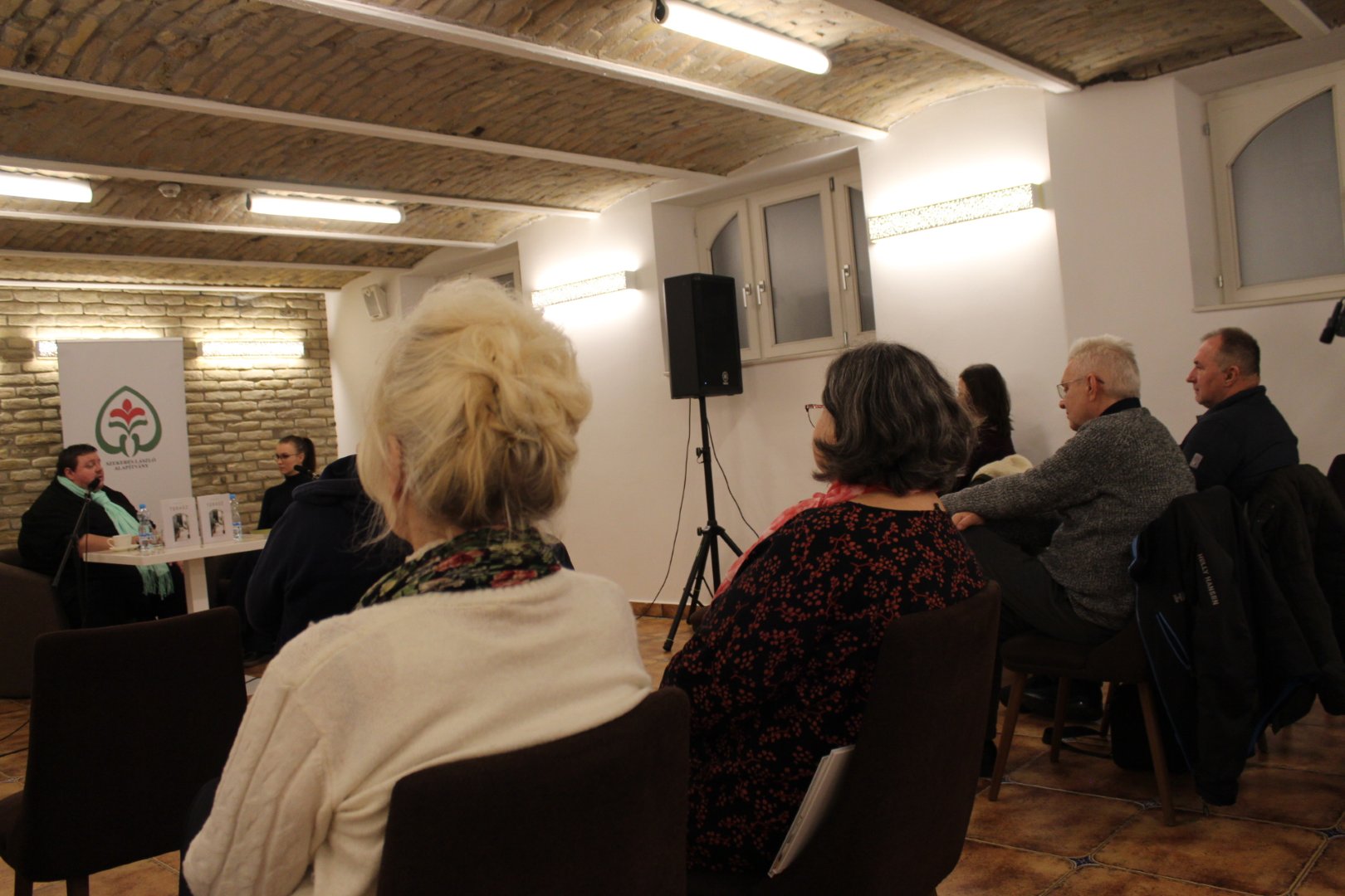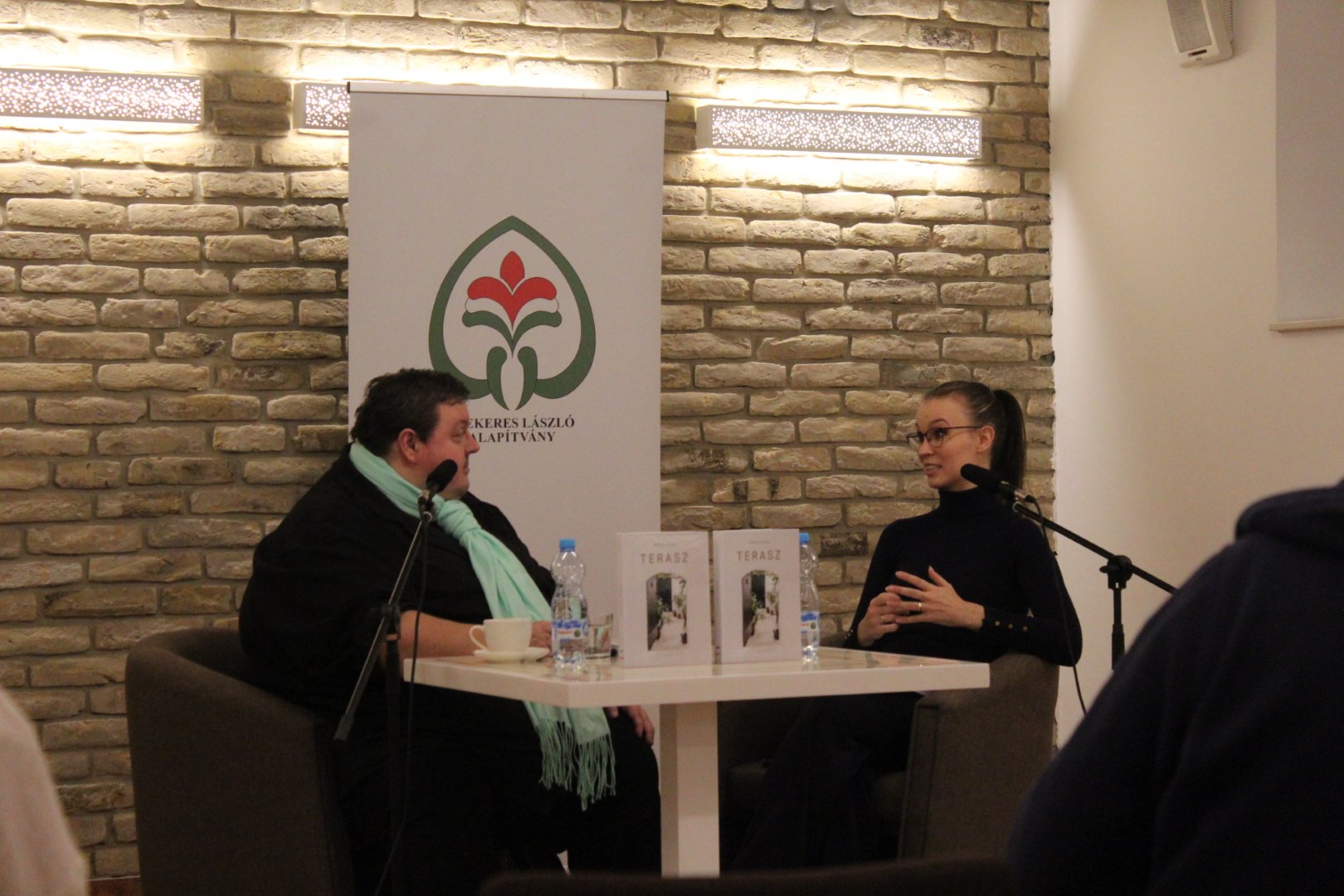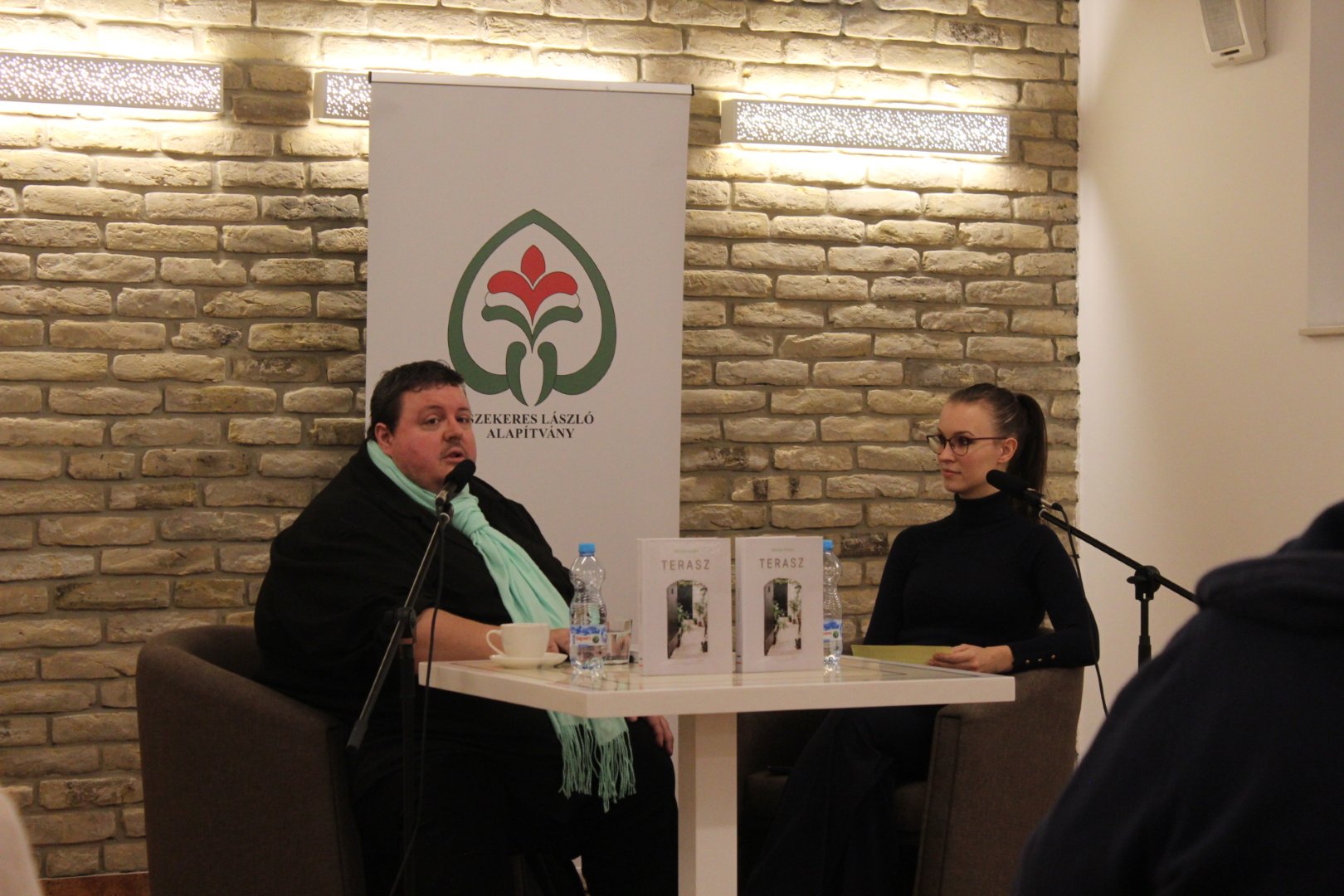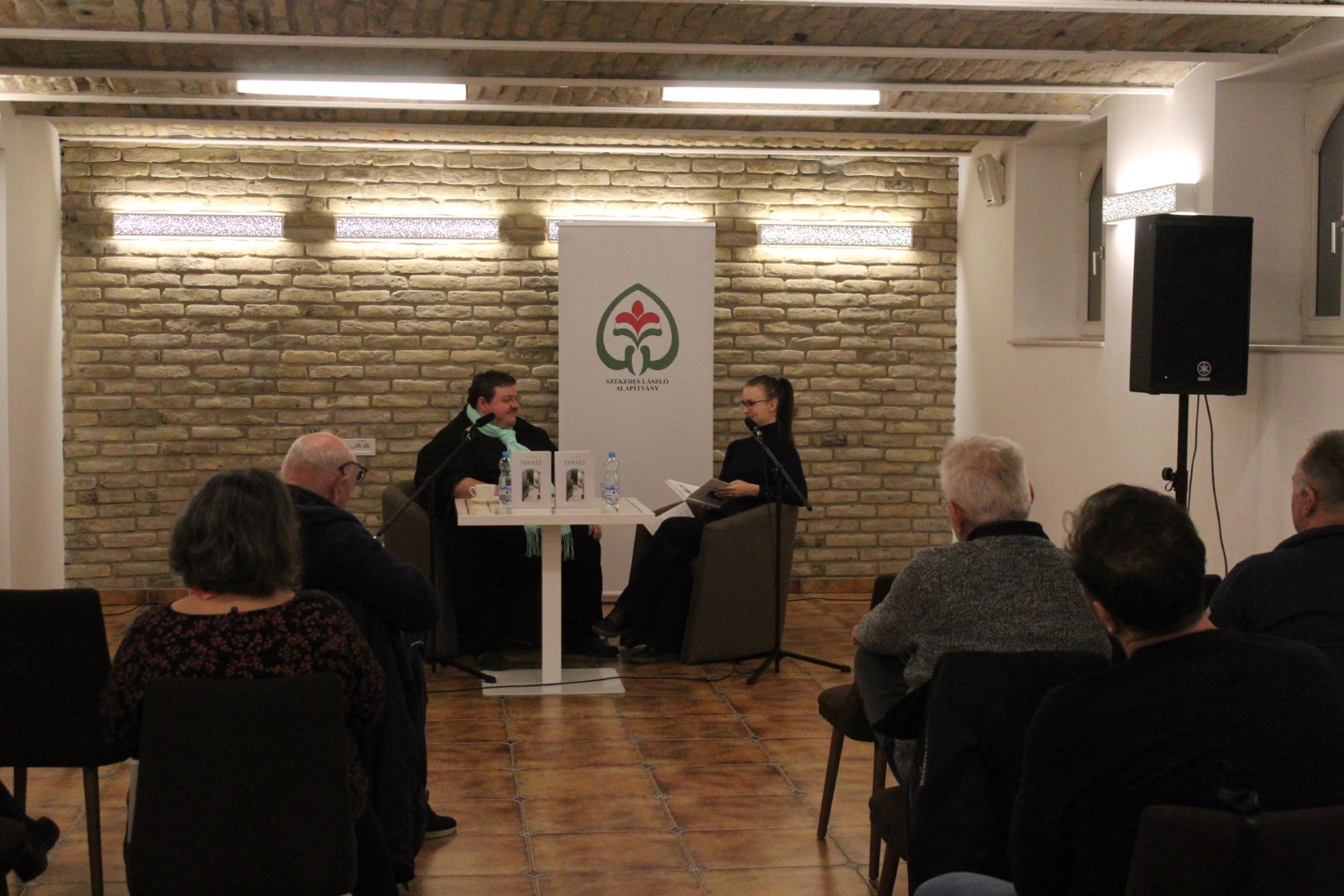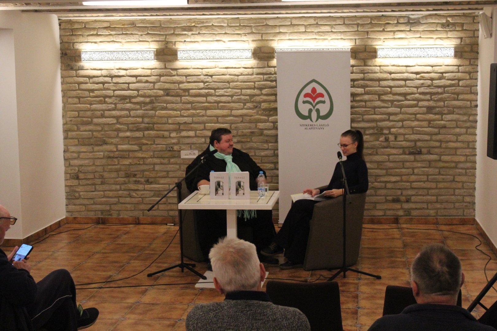 Remek hangulatú könyvbemutatón vehettek részt a Szekeres László Alapítványba látogatók kedden, december 9-én. SzekerEST elnevezésű rendezvénysorozatunk ezen alkalmán Máriás Endre, a Vajdasági Magyar Újságírók Egyesületének elnöke, a Magyar Szó főszerkesztő-helyettese mutatta be legújabb, Terasz című könyvét. A kiadvány, mely a Magyar Szó Lapkiadó Kft. és a Vajdasági Magyar Újságírók Egyesületének közös projektjeként jött létre nem csupán a szerző gondolataiba nyújt betekintést, de egyúttal rámutat a vajdasági magyar közösség éltető erejére is. Vendégünket Lackó Varjú Sára újságíró, a Magyar Szó napilap munkatársa kérdezte a kötet létrejöttéről és a szerző ihletének forrásáról. A családias légkörű beszélgetésen hallhattunk a kiadványban rejlő százötven tárca tematikájáról, valamint a szerző kedvenc motívumairól. Az est keretében személyes anekdoták is elhangzottak, Máriás Endre pedig felolvasta legkedvesebb, Tükörkép című tárcáját a közönség nagy örömére. Köszönjük, hogy velünk tartottak!