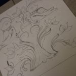 A bútorfestő szakkör tagjai szerdán virtuális kirándulást tettek az Ormánságba, pontosabban a kórósi református templom mennyezetkazettáit vették alaposabban szemügyre. Ezután készítették el a munkadarab vázlatát, majd a színkeverést követően felvitték az alapszínt. A legközelebbi szakköri alkalmon kezdődhet is majd az ormánsági motívumok megfestése!