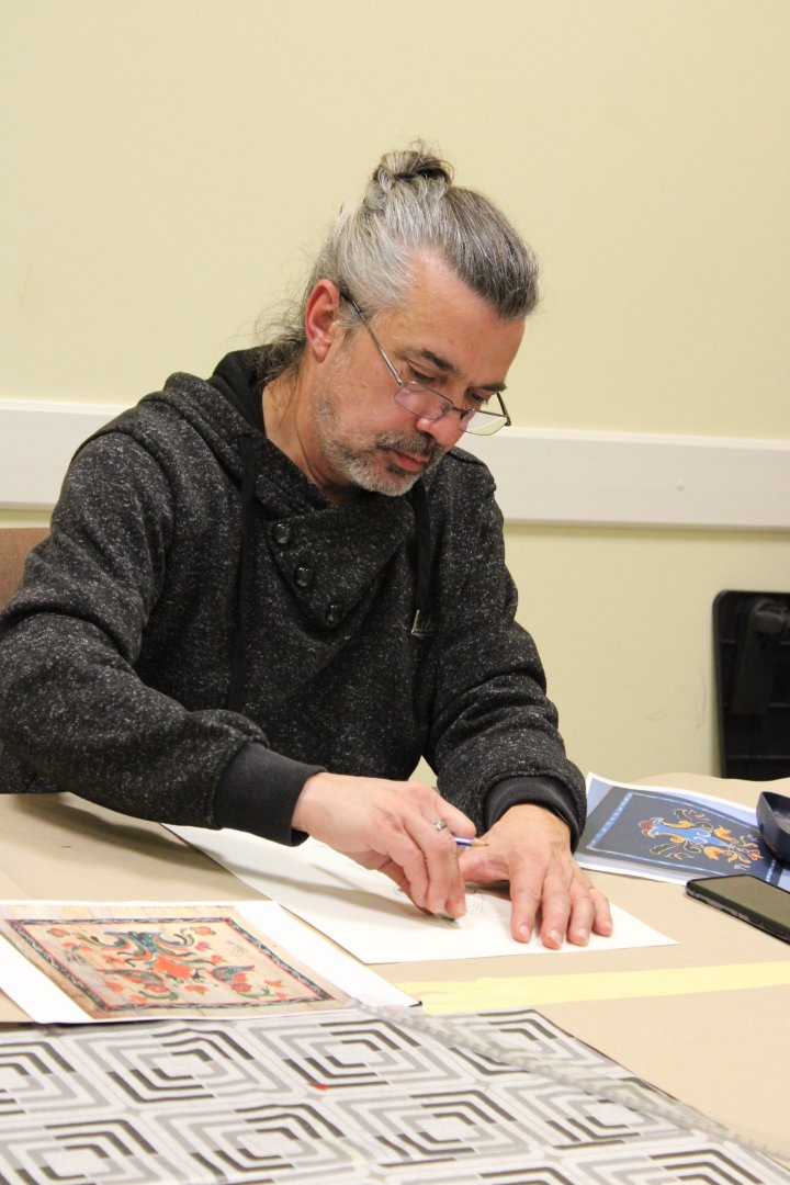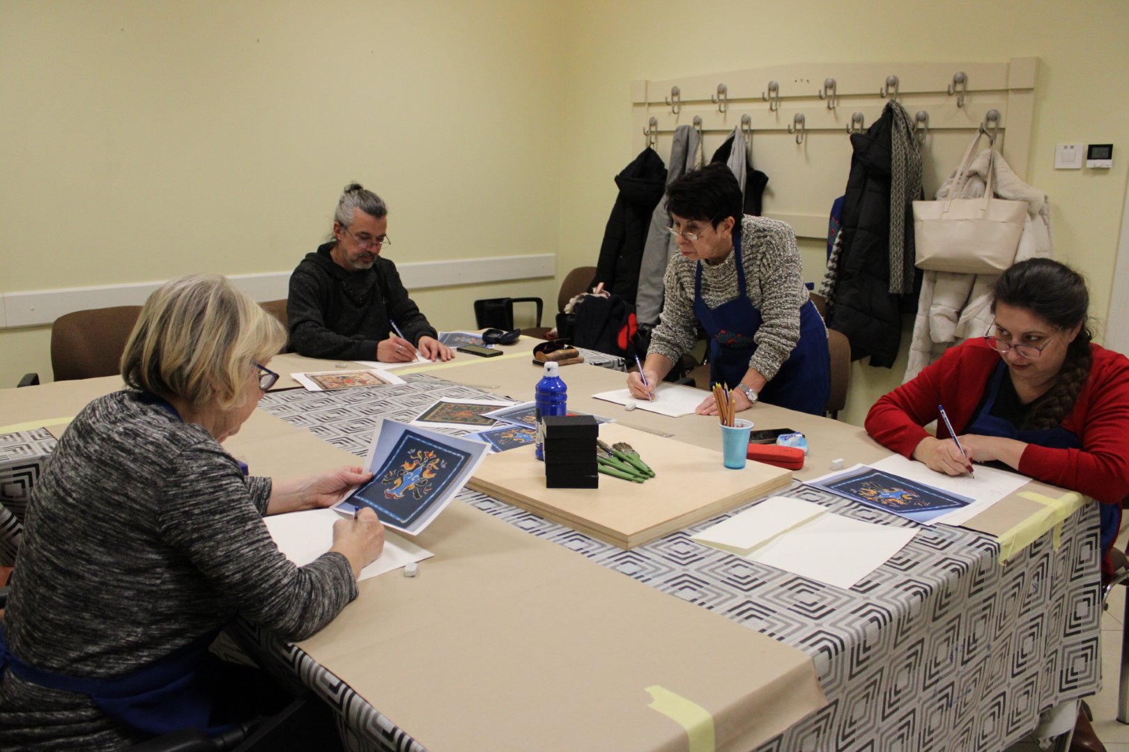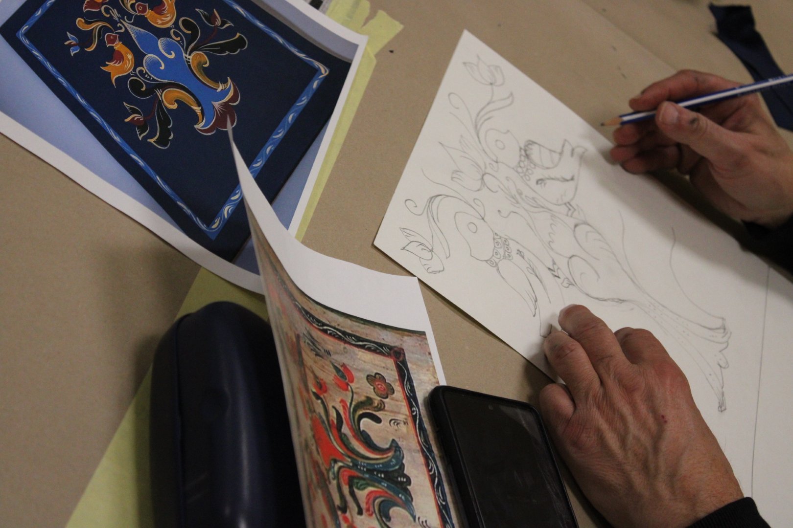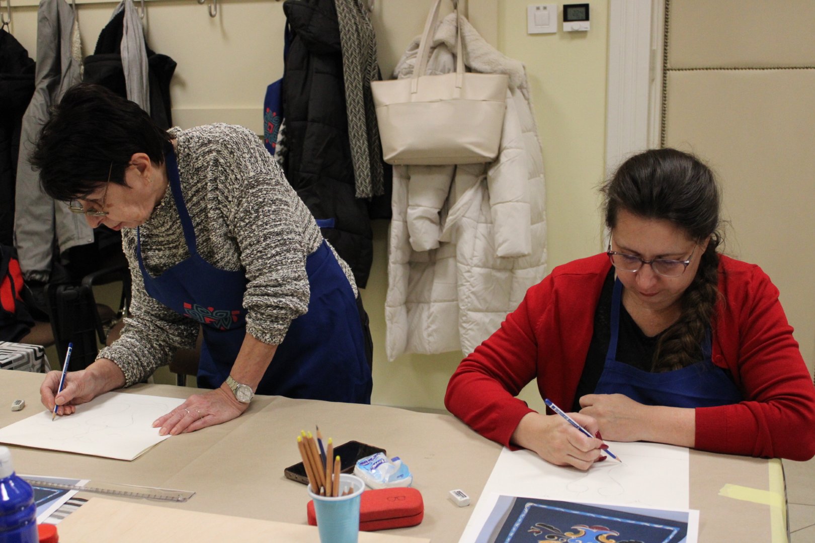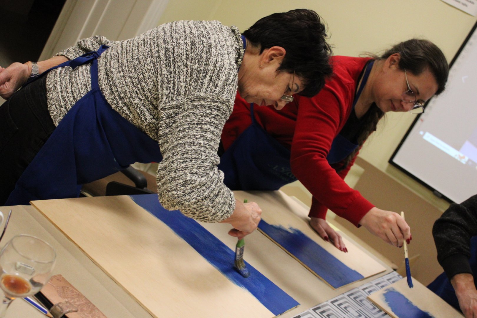 A bútorfestő szakkör tagjai szerdán virtuális kirándulást tettek az Ormánságba, pontosabban a kórósi református templom mennyezetkazettáit vették alaposabban szemügyre. Ezután készítették el a munkadarab vázlatát, majd a színkeverést követően felvitték az alapszínt. A legközelebbi szakköri alkalmon kezdődhet is majd az ormánsági motívumok megfestése!