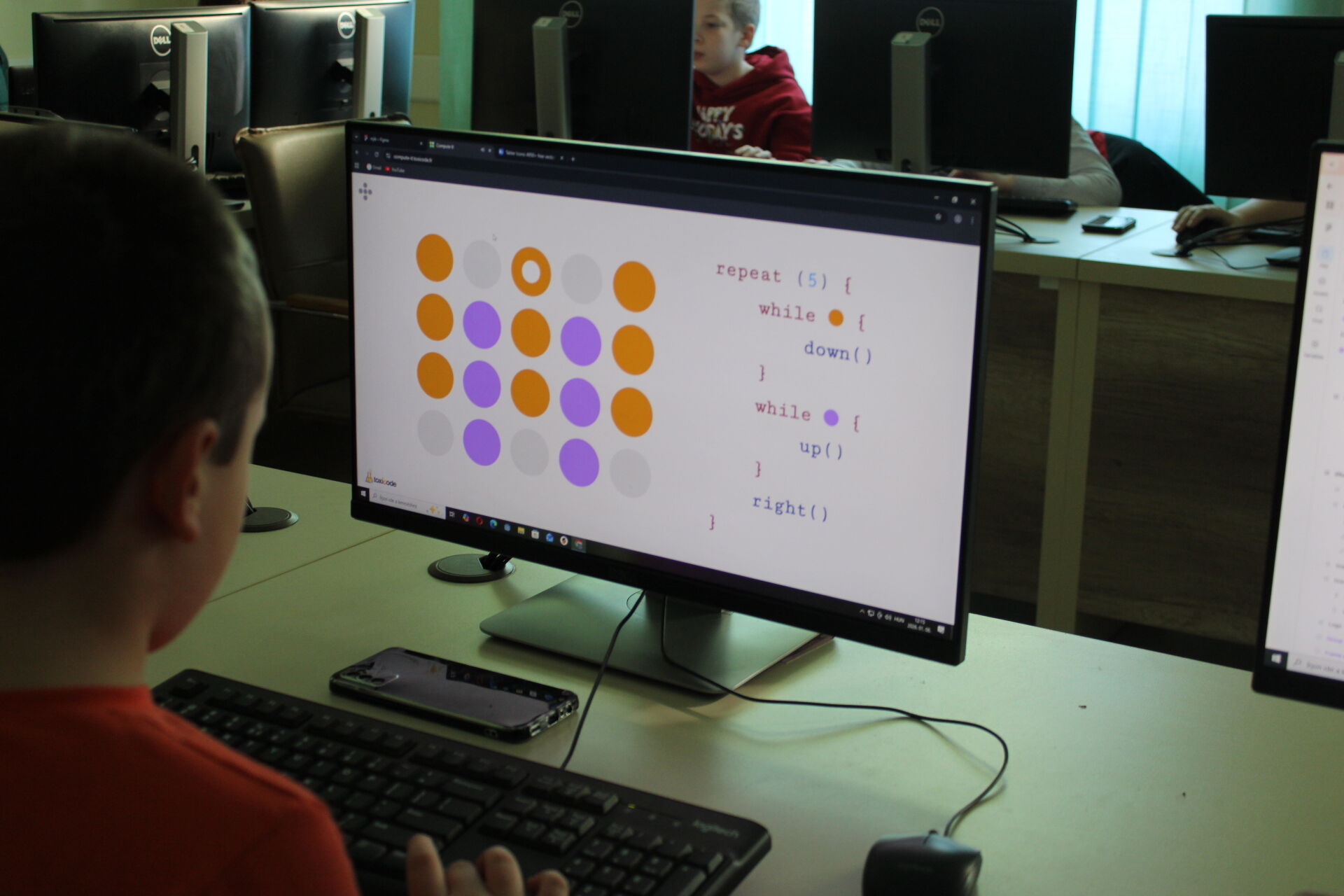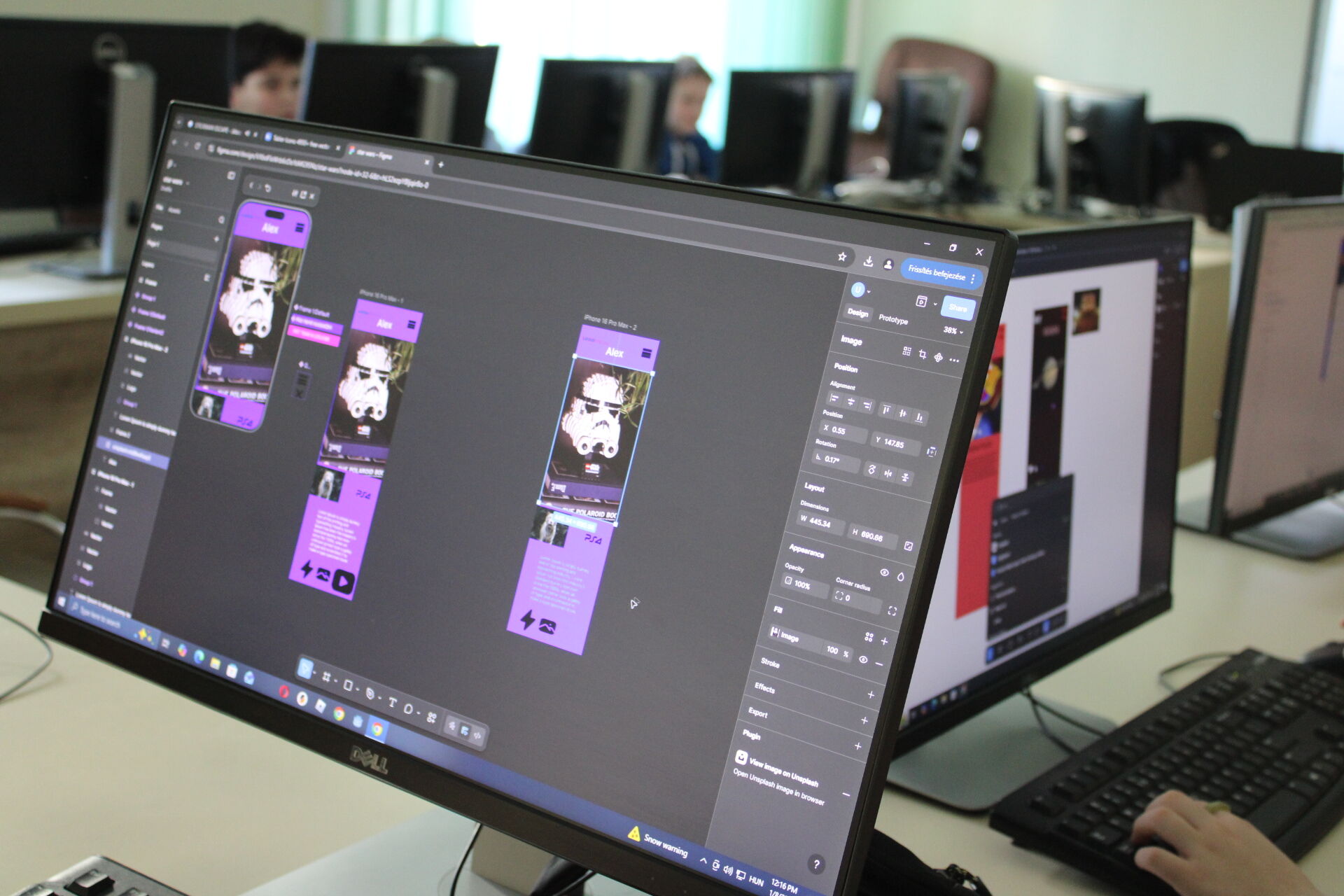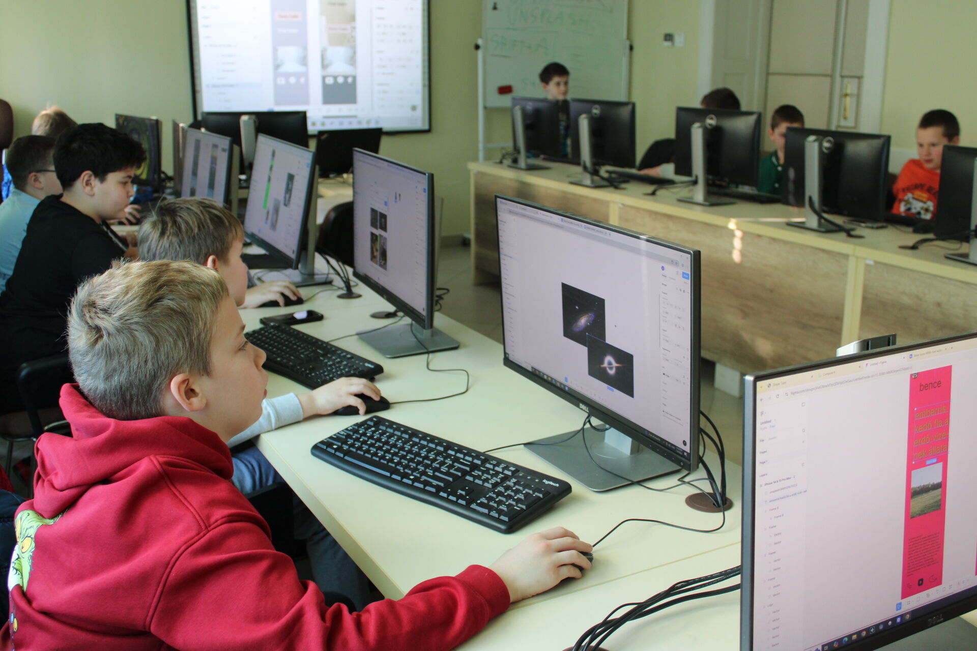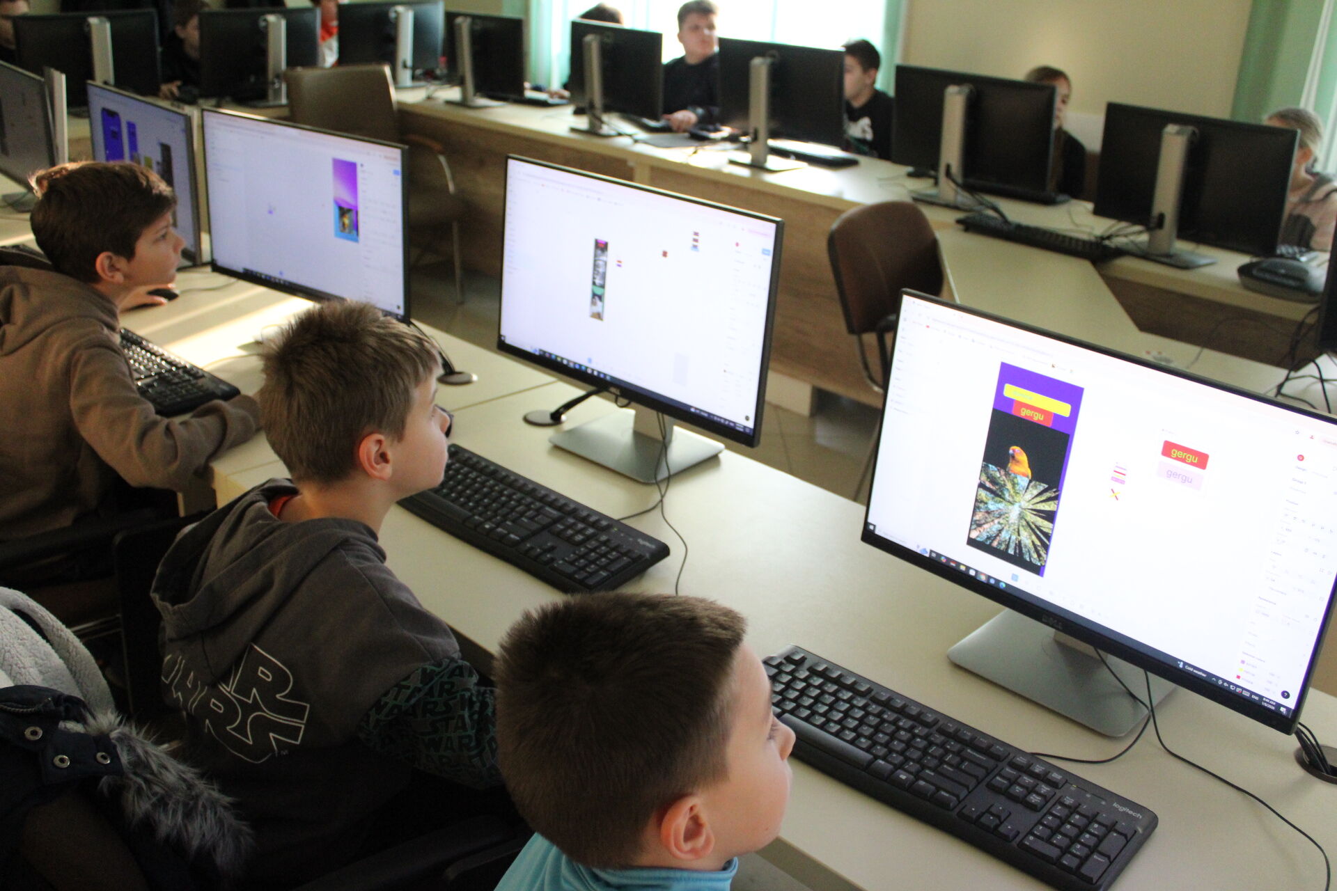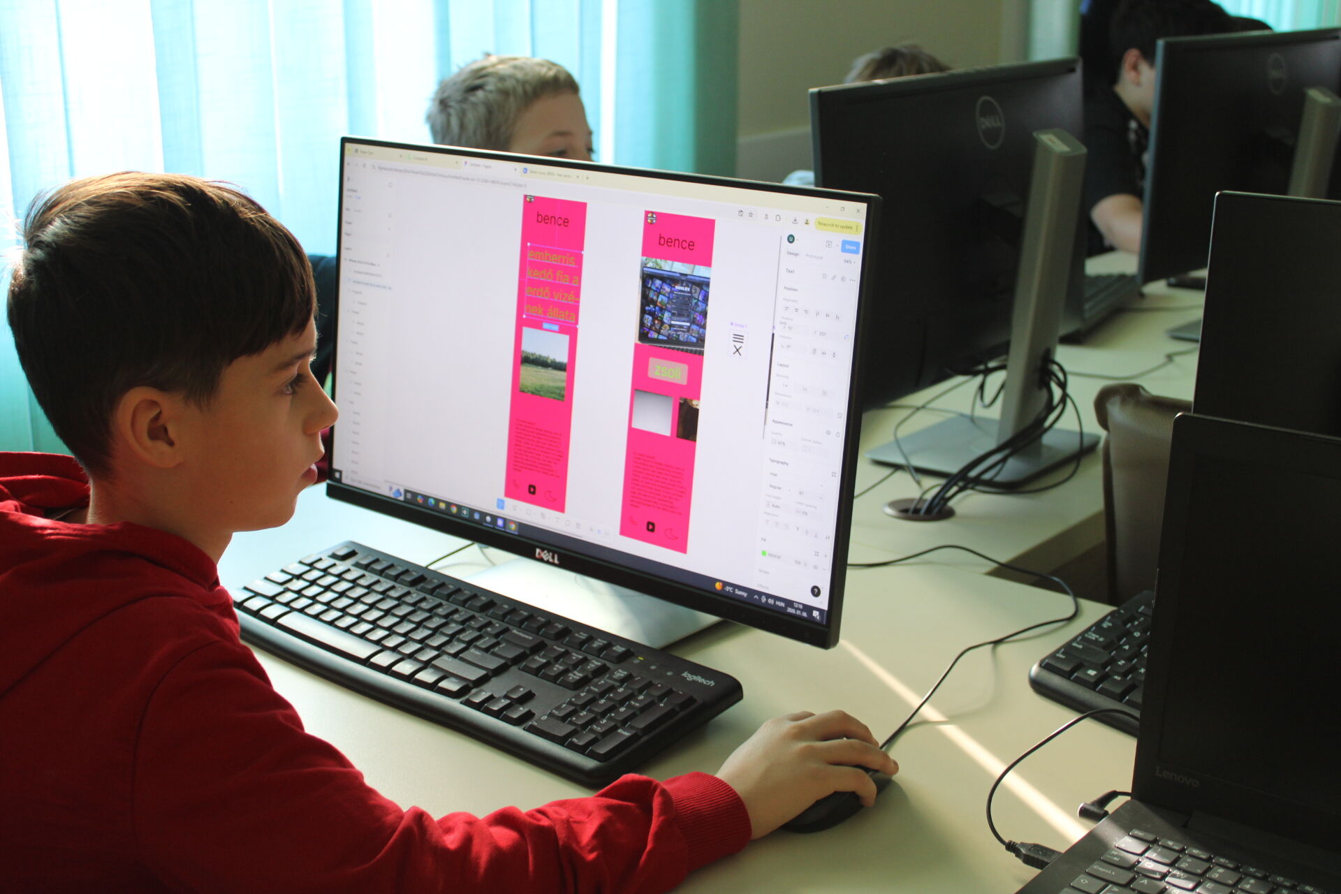 Téli informatikai táborunk negyedik napján már nehezebb feladatok vártak a résztvevőkre. Január 8-án többek között újabb kódolási feladatokra is sor került. A Figma fantasy tábor 8-11 éves csoportjának tagjai elkezdték véglegesíteni alkalmazásuk kinézetét, mindenki tetszőleges tematikát választva dolgozott a mobilapplikáció tervezetén. Az együtt töltött délelőtt végén a táborozók pár szóban elmondták egymásnak, milyen alkalmazásokat készítettek, és hogyan esett a választásuk az adott tematikára. Pénteken, táborunk utolsó napján is sok izgalom vár még résztvevőinkre, tartsatok velünk!