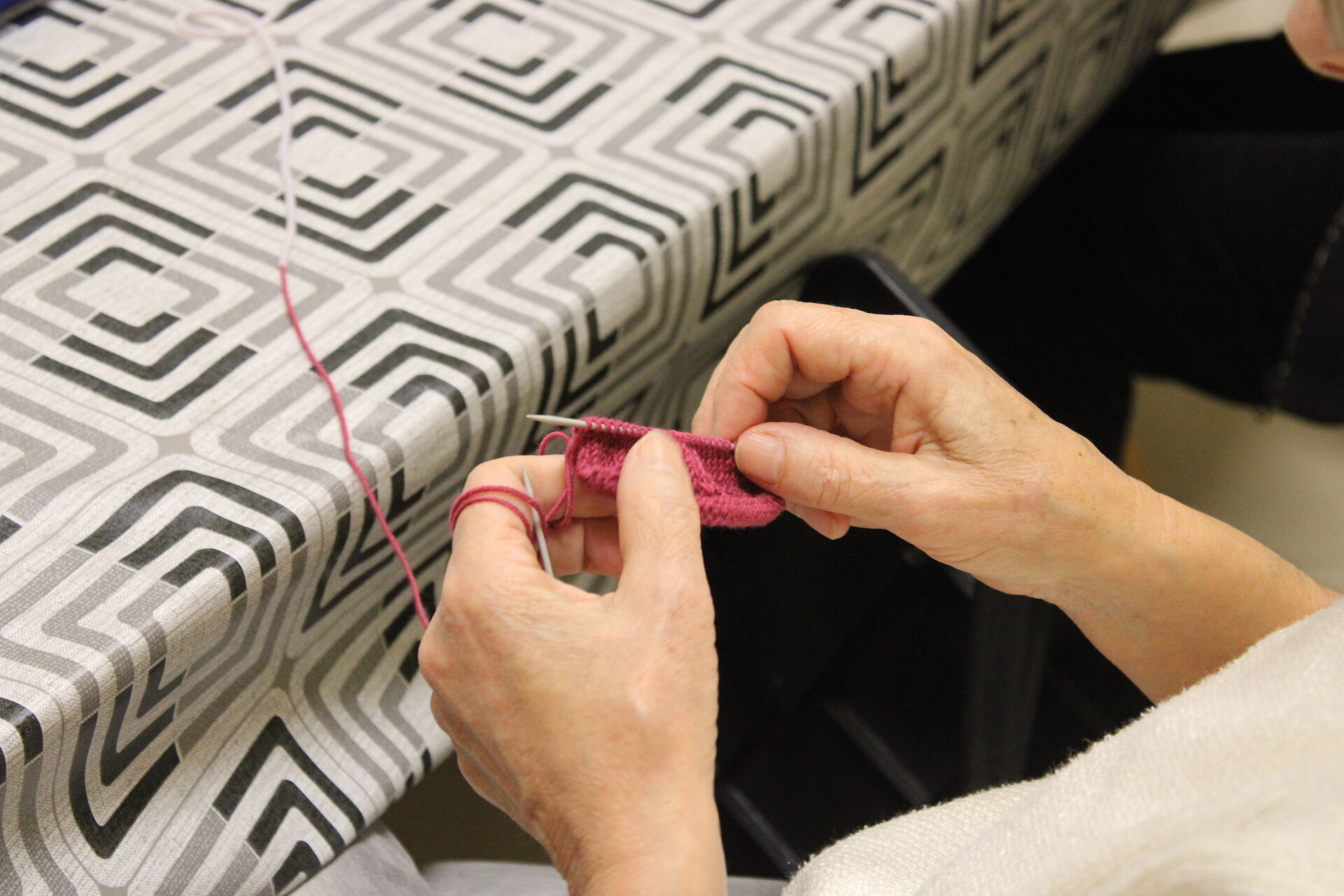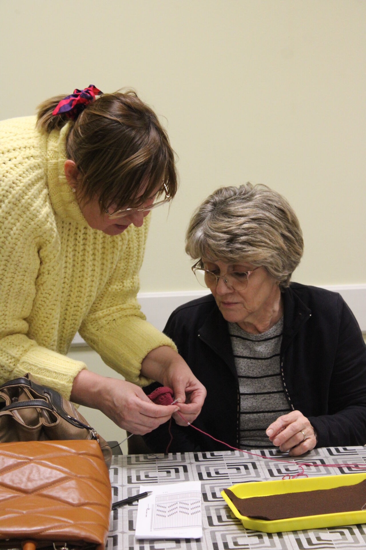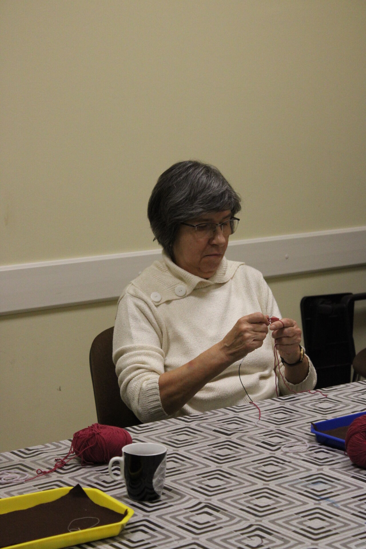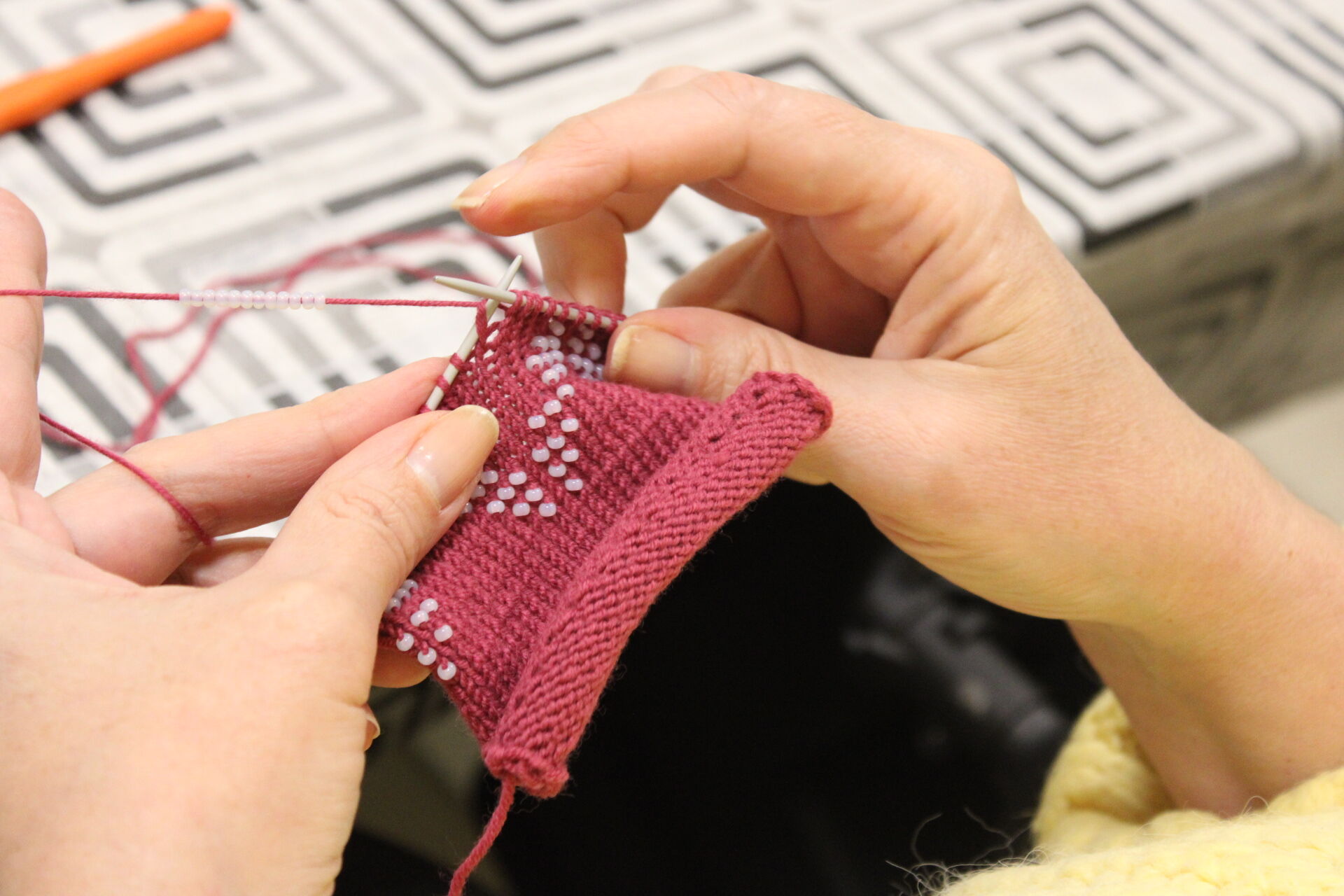 A téli szünet után gyöngykötőink is újra együtt dolgozhattak kedden a szakköri program keretében. A telefontok kötését folytatták a résztvevők: kialakultak a lyuksorok, majd el is kezdődhetett a vízfolyásos minta gyöngyökkel való kialakítása. Jövő héten is várja őket a szakkör, várjuk a csoporttagokat egy kellemes hangulatú délutánra!