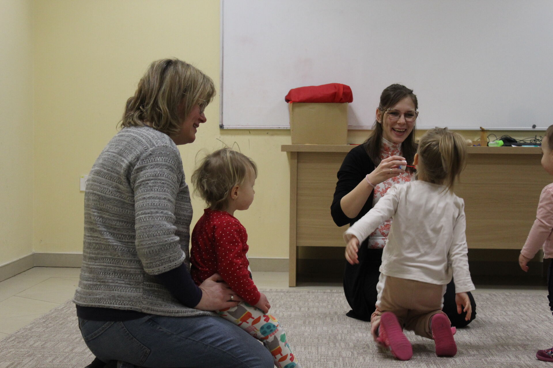 Vidám társaság gyűlt össze Kiugrott a gombóc elnevezésű baba-mama foglalkozásunk idei első alkalmán kedden, január 20-án. A hideg idő ellenére is ellátogattak hozzánk kis vendégeink, akik hatalmas örömmel fogadták a közkedvelt mondókákat és az ölbéli játékokat. A mókás délután során előkerültek a már jól ismert lovagoltatók, cirógatók és csiklandozók, de új dalocskákat is tanultunk közösen. Sok szeretettel várunk vissza Benneteket jövő kedden!
