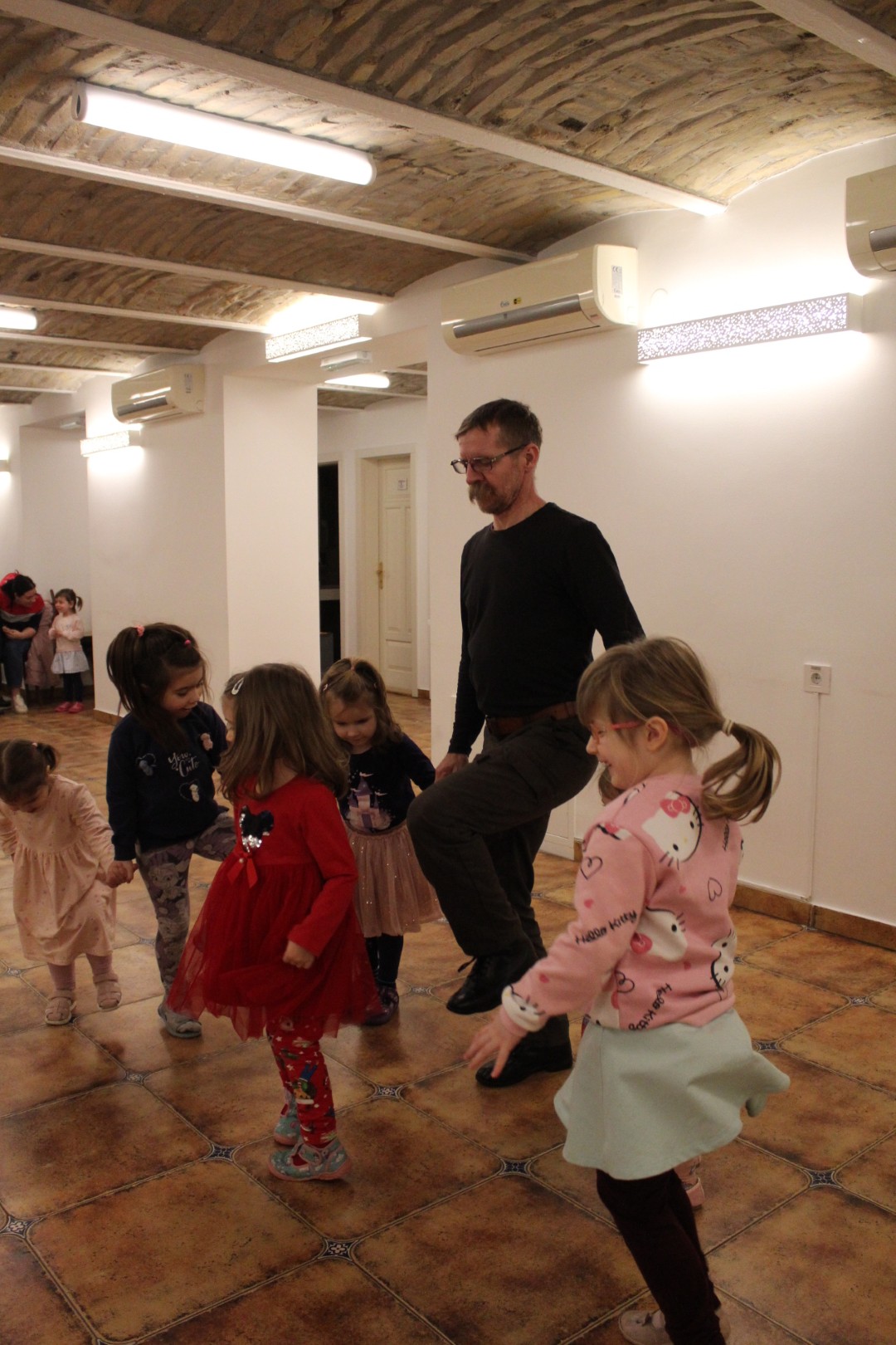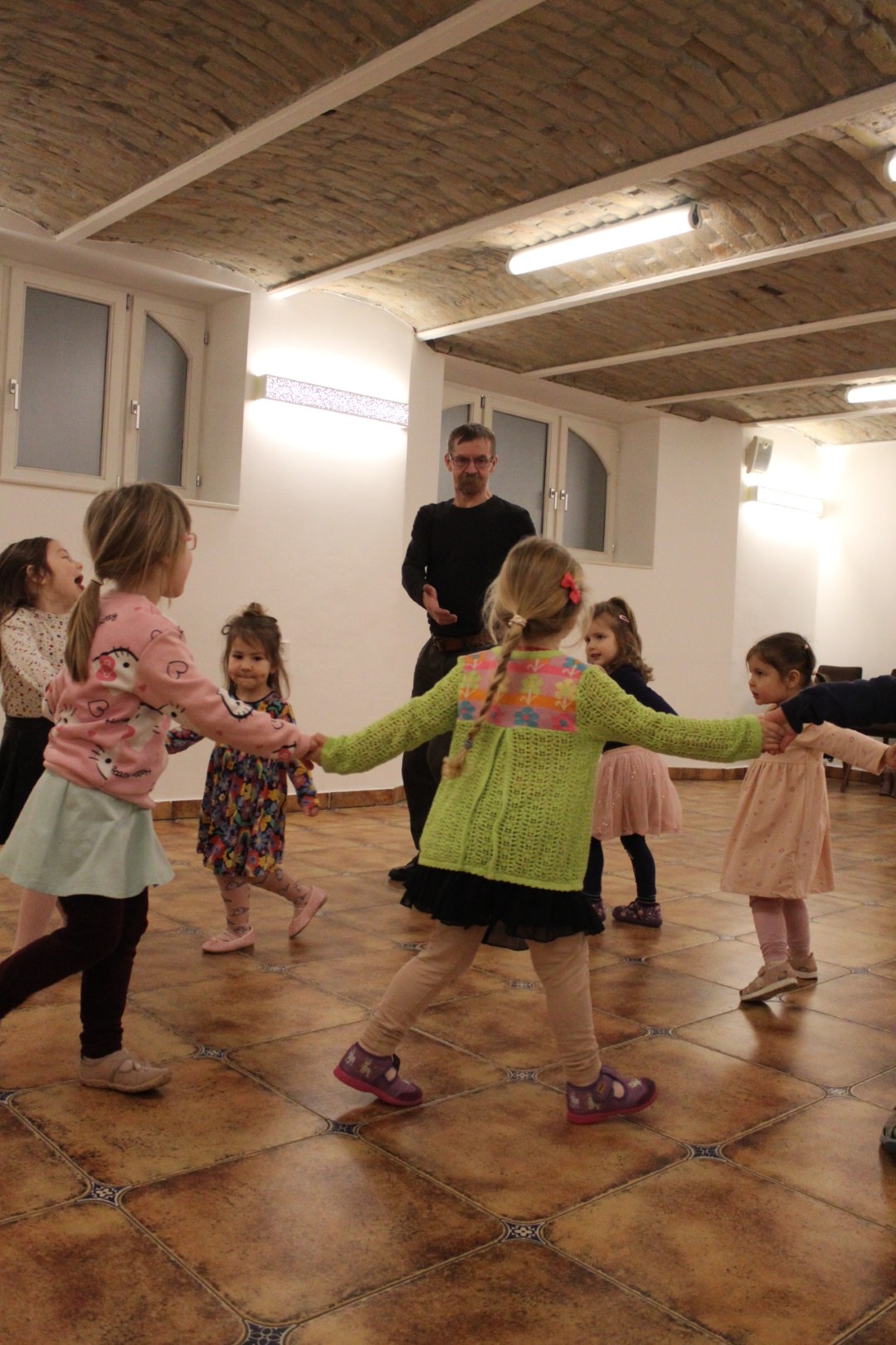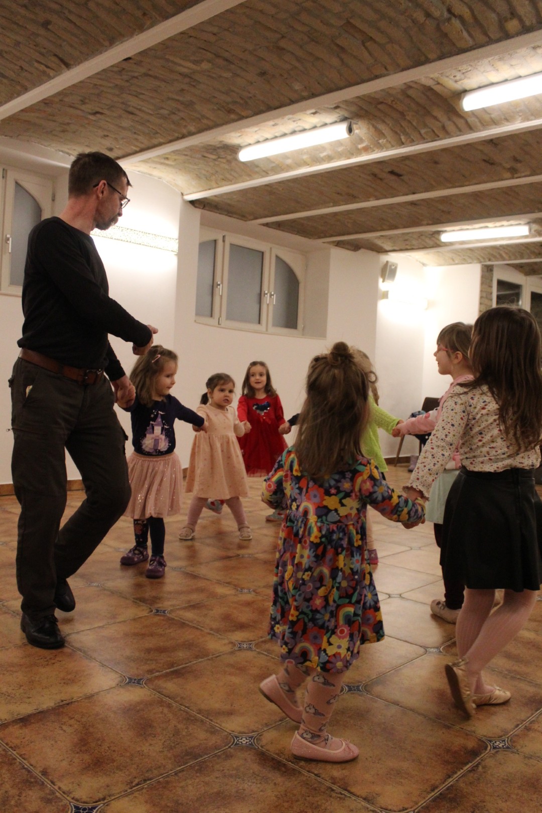 Farsangi hangulatban telt el az idei év második néptáncos foglalkozása is. Természetesen most is sokat játszottunk, táncoltunk. Somi bácsi a próbára magával hozta a gyerekek körében igencsak kedvelt citeráját is. Így hangszerkíséret mellett az éneklés is sokkal élvezetesebb. Ez alkalommal is a zene, a tánc, a játék és a hagyományőrzés egyetlen vidám, közösségi élménnyé olvadt össze.