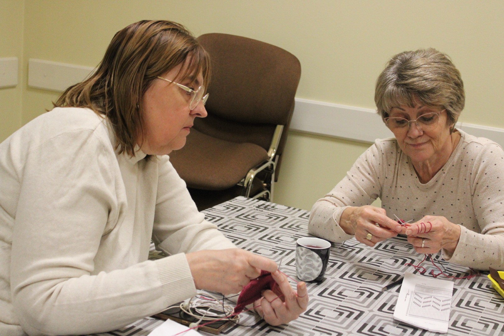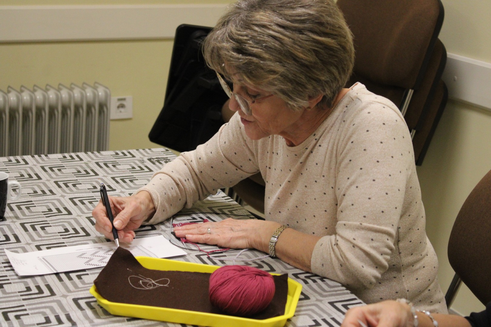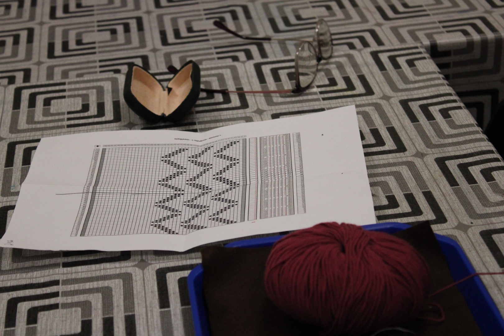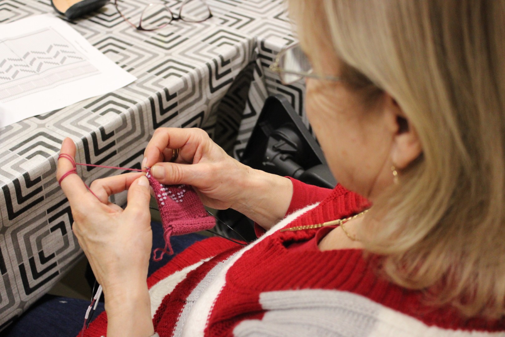 A gyöngykötő szakkör tagjai ismét együtt tölthették a kedd délutánt székházunkban. Miután előző alkalommal felfűzték a vízfolyásos mintához elegendő mennyiségű gyöngyszemet és megkezdték a munkát, ezúttal tovább kötötték a telefontokot. A lyuksorok elkészítése után a gyöngyminta kialakításával foglalkoztak nagy igyekezettel, hogy minél előbb elkészüljön a munkadarab.