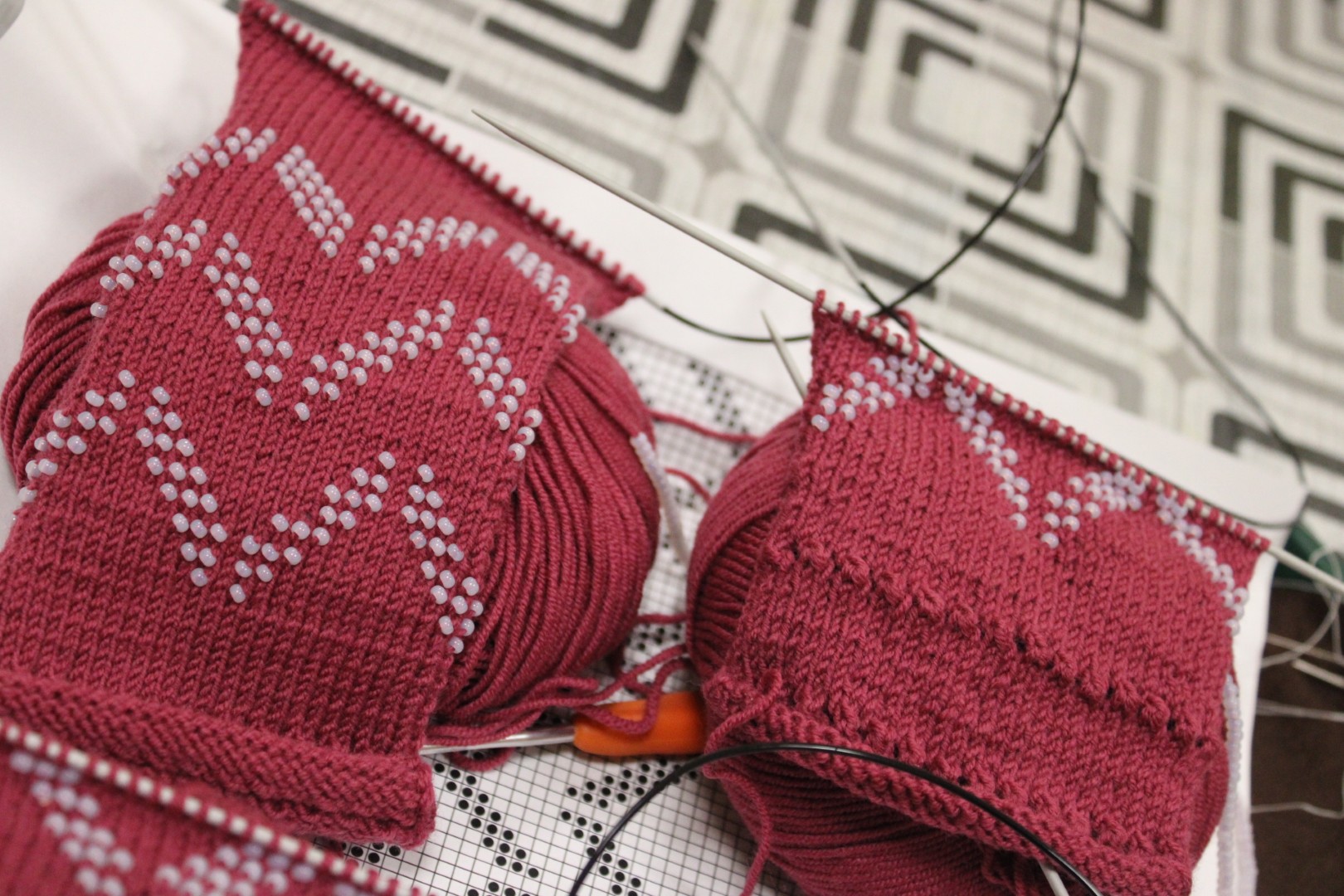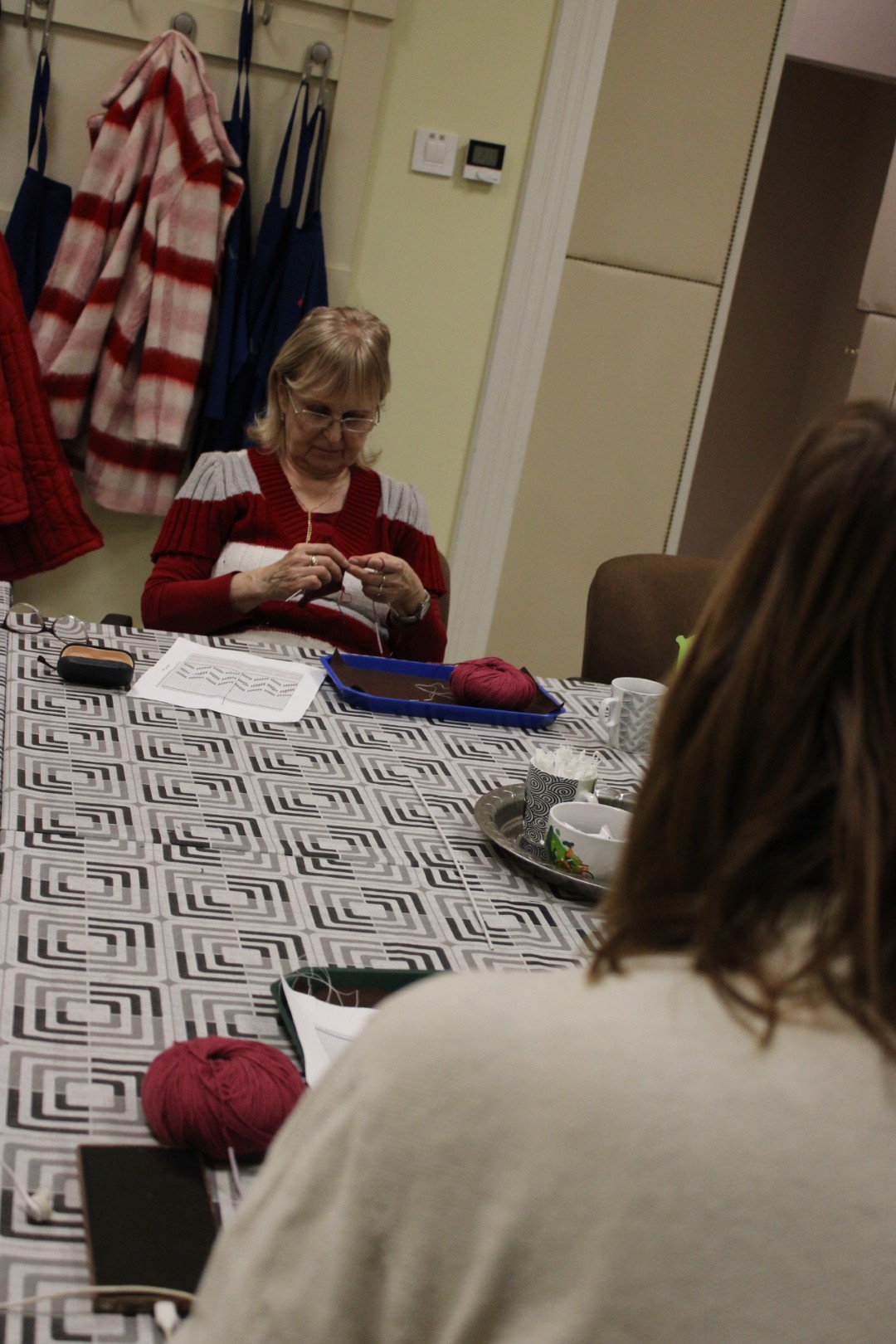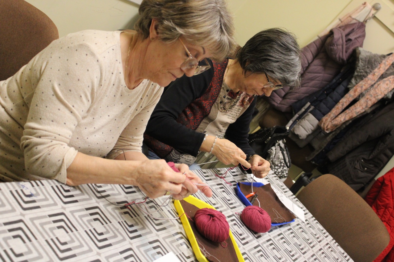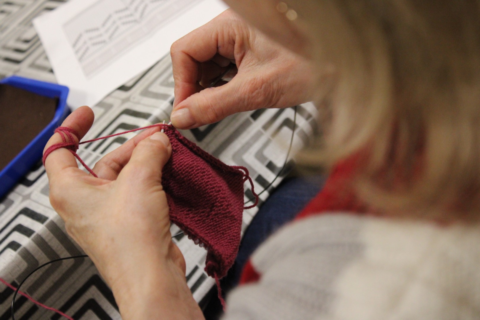 A gyöngykötő szakkör tagjai ismét együtt tölthették a kedd délutánt székházunkban. Miután előző alkalommal felfűzték a vízfolyásos mintához elegendő mennyiségű gyöngyszemet és megkezdték a munkát, ezúttal tovább kötötték a telefontokot. A lyuksorok elkészítése után a gyöngyminta kialakításával foglalkoztak nagy igyekezettel, hogy minél előbb elkészüljön a munkadarab.