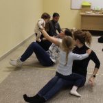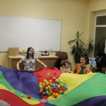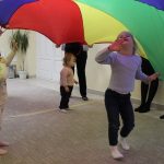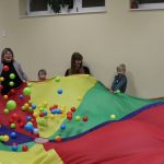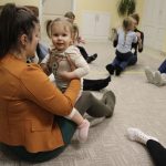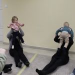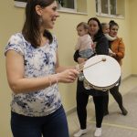 Vígan telt a kedd délután a Kiugrott a gombóc foglalkozáson gyerekek és szülők számára egyaránt. Ének- és muzsikaszóval, nevetéssel telt meg a terem, majd előkerültek a kedvenc lovagoltatók, tenyeresdik, döcögtetők és lógáztatók. Dobszó kíséretében táncra is perdülhettek babák és kísérőik, utána pedig hintáztató mondókával folytatták a mókát. Várunk vissza mindenkit jövő kedden!