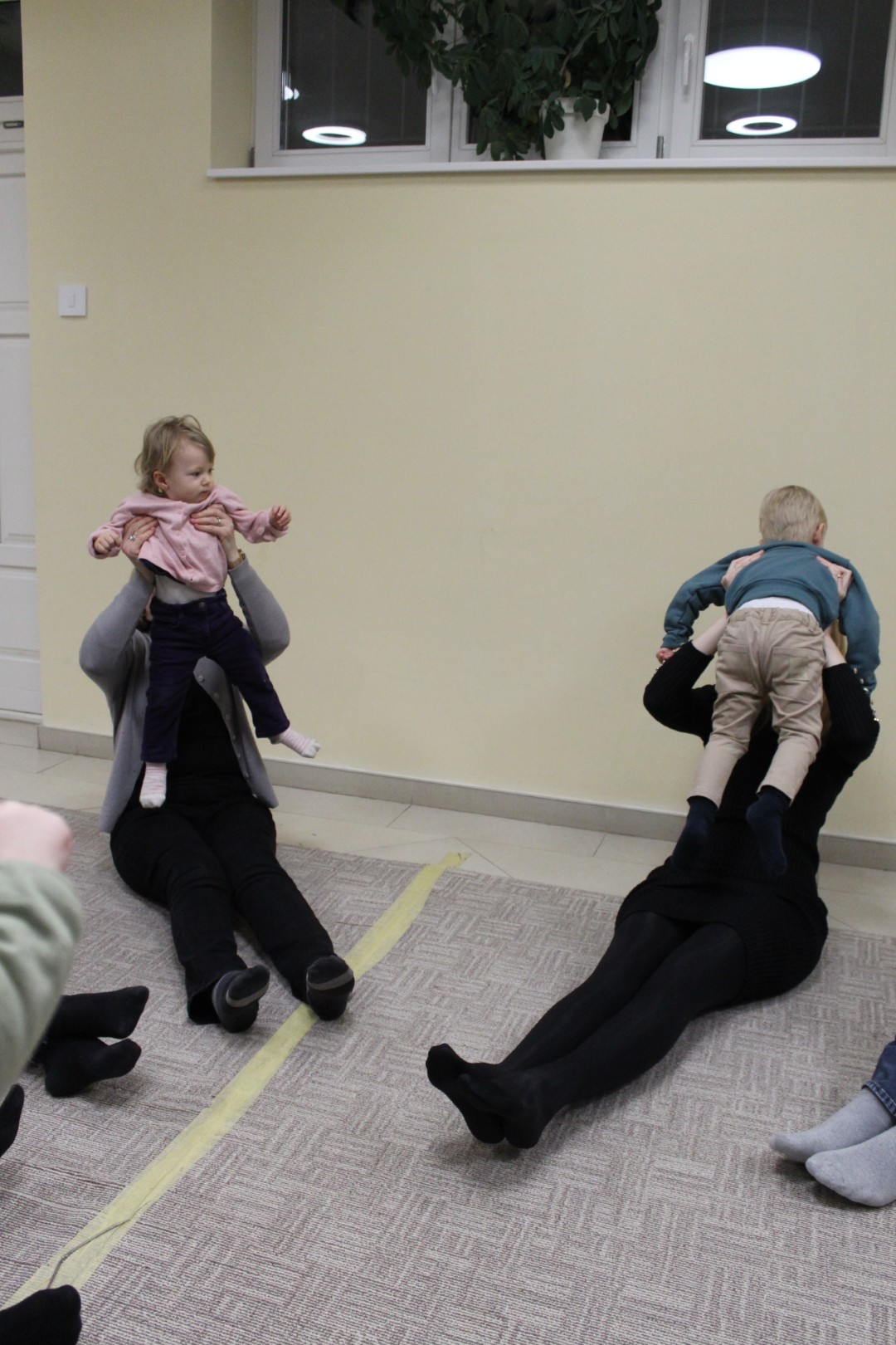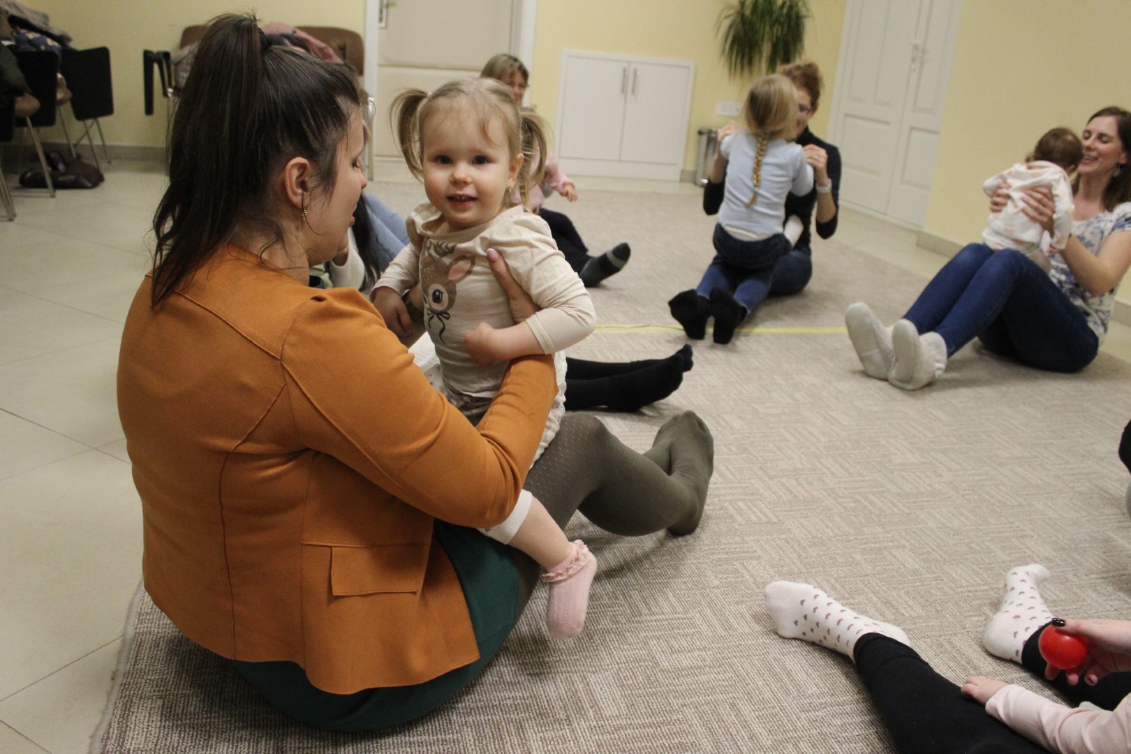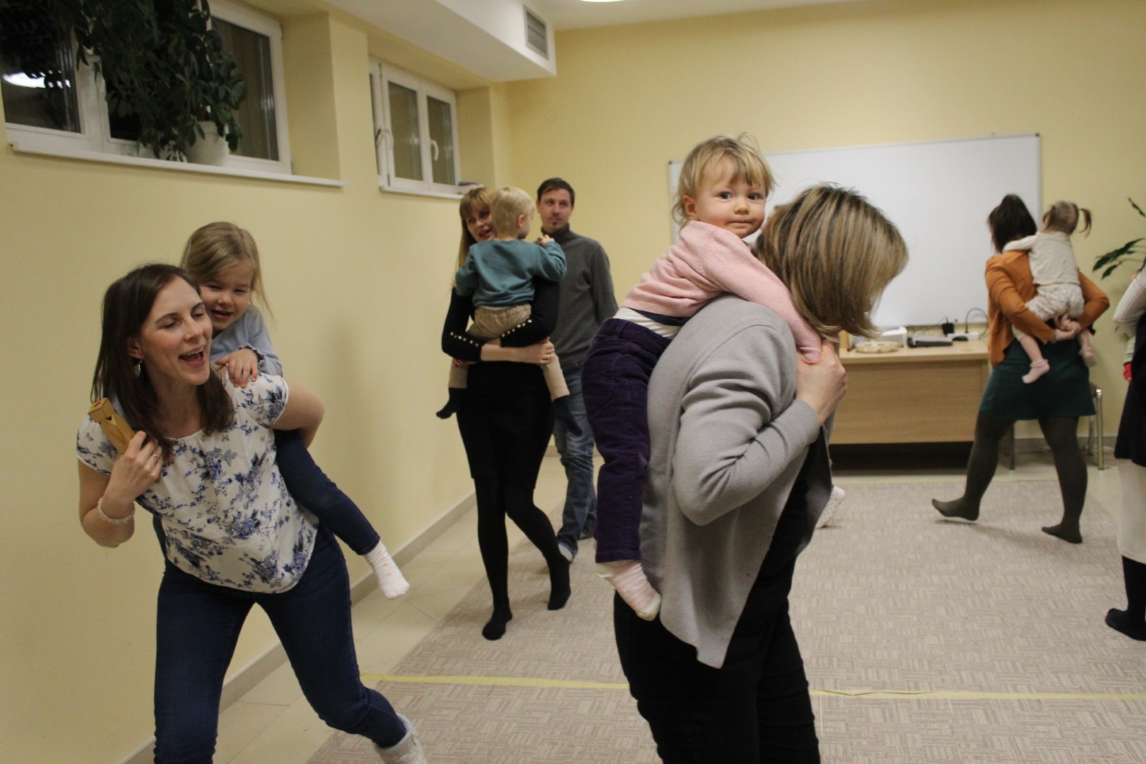 Vígan telt a kedd délután a Kiugrott a gombóc foglalkozáson gyerekek és szülők számára egyaránt. Ének- és muzsikaszóval, nevetéssel telt meg a terem, majd előkerültek a kedvenc lovagoltatók, tenyeresdik, döcögtetők és lógáztatók. Dobszó kíséretében táncra is perdülhettek babák és kísérőik, utána pedig hintáztató mondókával folytatták a mókát. Várunk vissza mindenkit jövő kedden!