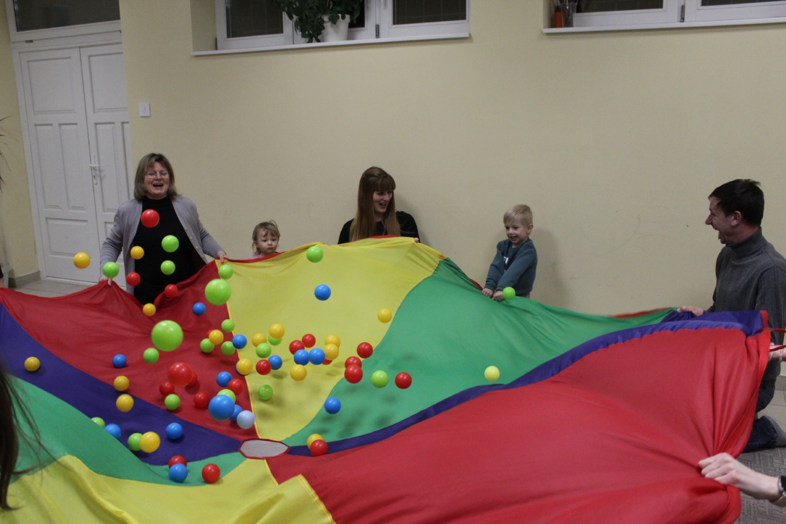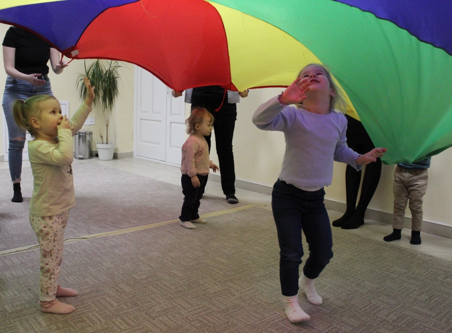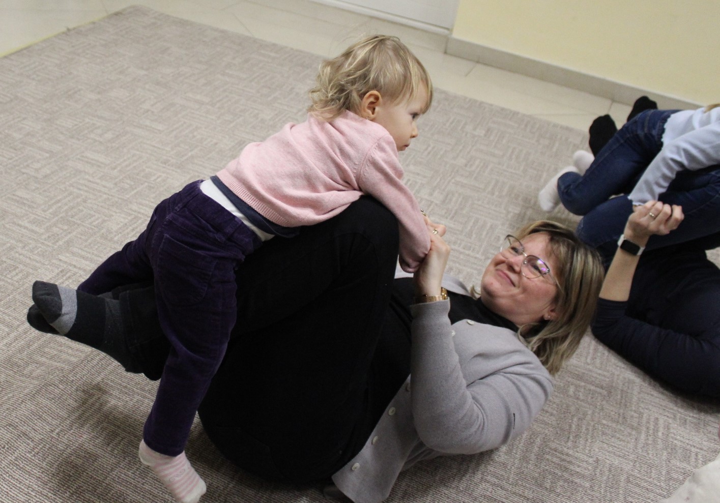 Vígan telt a kedd délután a Kiugrott a gombóc foglalkozáson gyerekek és szülők számára egyaránt. Ének- és muzsikaszóval, nevetéssel telt meg a terem, majd előkerültek a kedvenc lovagoltatók, tenyeresdik, döcögtetők és lógáztatók. Dobszó kíséretében táncra is perdülhettek babák és kísérőik, utána pedig hintáztató mondókával folytatták a mókát. Várunk vissza mindenkit jövő kedden!
