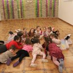 Gyertyaszentelő Boldogasszony napja február 2., ami egybeesett a mi táncpróbánkkal, ezért illő volt néhány szóban említést tennünk erről az emléknapról. A katolikus falvakban e napon szoktak gyertyát szentelni, emellett közismert időjárásjósló nap is, ugyanis úgy tartották, ha ezen a napon kisüt a nap, és a medve meglátja az árnyékát, visszabújik, és még negyven napig tart a hideg, ha viszont csípős hideget talál, akkor a tél hamar véget ér. A rövid néprajzórát gyertyás ének és mackós játékok követték, majd Somi bácsi irányításával megtanulhattuk, milyen a medvetánc, miként mozognak zenére ezek a nagytesű állatok. A műhelymunkát születésnapok megünneplésével zártuk.