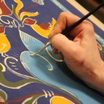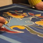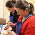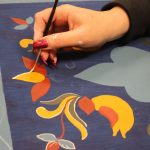 A bútorfestő szakkör szorgos csapata ismét elmélyült munkával töltötte a szerda délutánt. Elérkeztek a kórósi templomkazetta kidolgozásának végéhez. A megfelelő szín kikeverése után sor került a fények és a szegélydísz felfestésére is, ami megadta a motívumok végső formáját, dinamikáját. A feladat sikeres teljesítése után új tájegység mintáit ismerhetik meg a szakkörösök, természetesen egy újabb munkadarab kidogozása által.