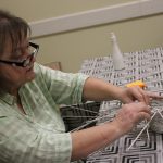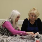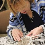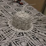 A papírfonó szakkör összejövetelének hétfői alkalmán a csoporttagok folytatták a fehér kalap fonását. A kétszálas gyűrűfonás technikáját használva elkészültek a karimák is, így a fonószálak eldolgozásával be is fejeződött ez a feladat. Következő alkalommal új munkadarab és új technikák elsajátítása vár a szakkörösökre.