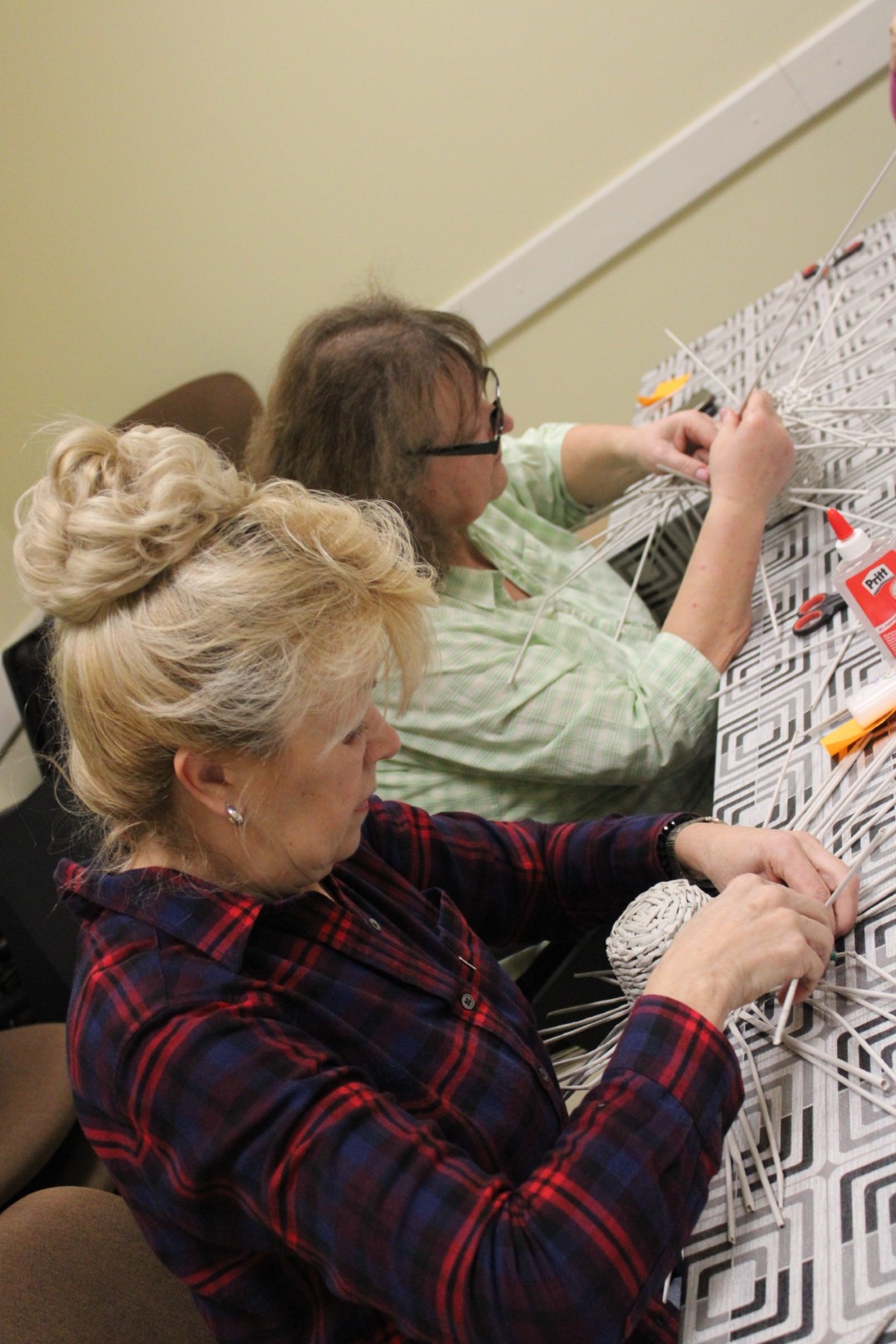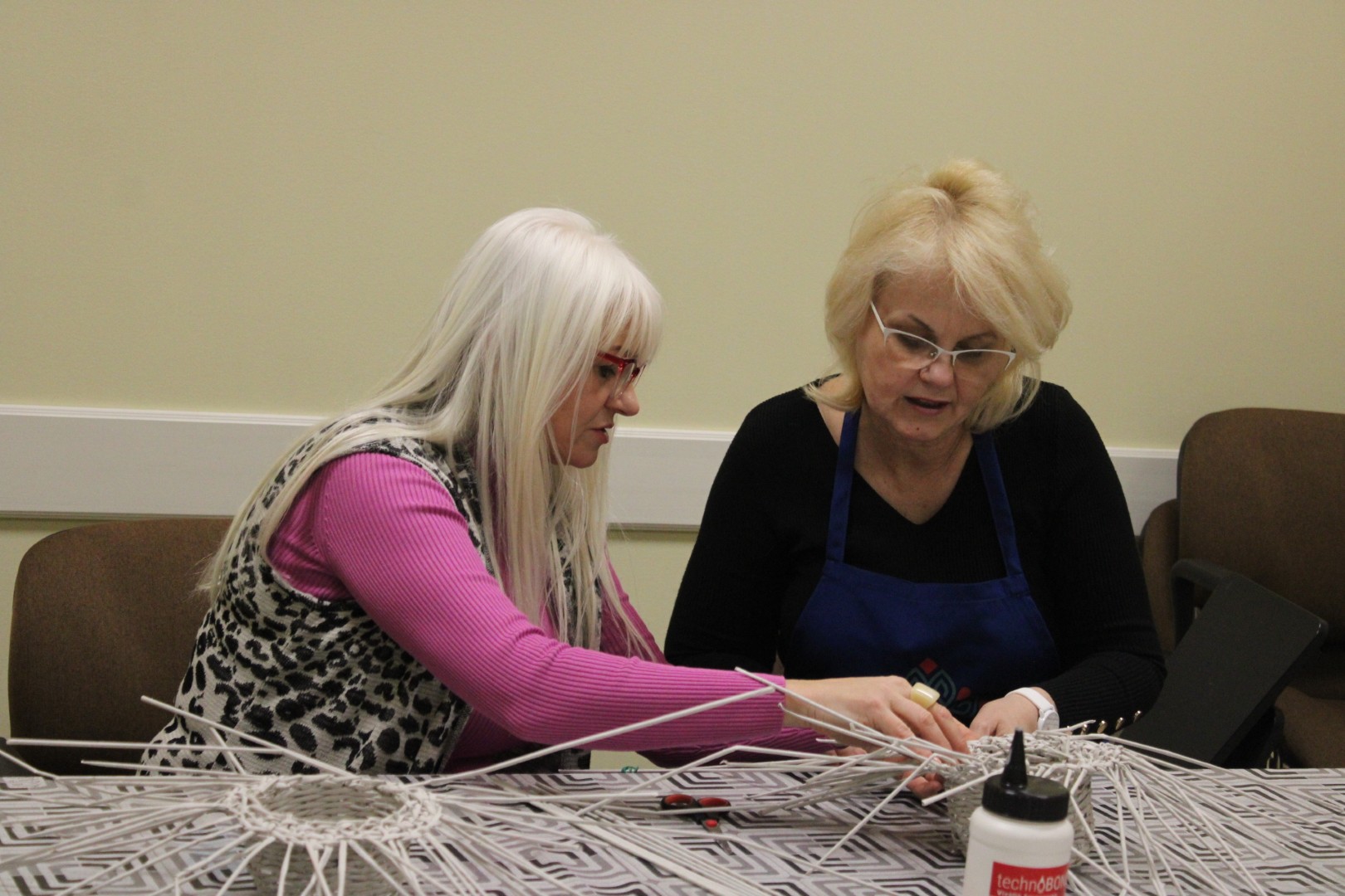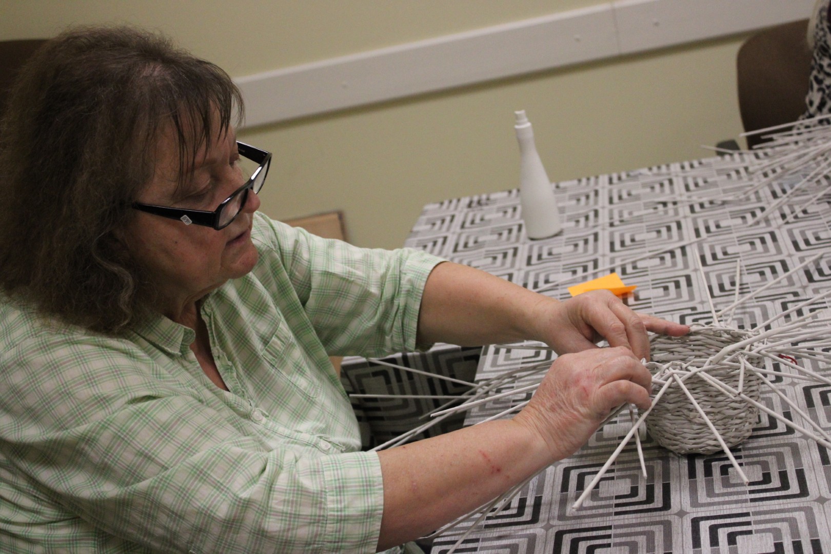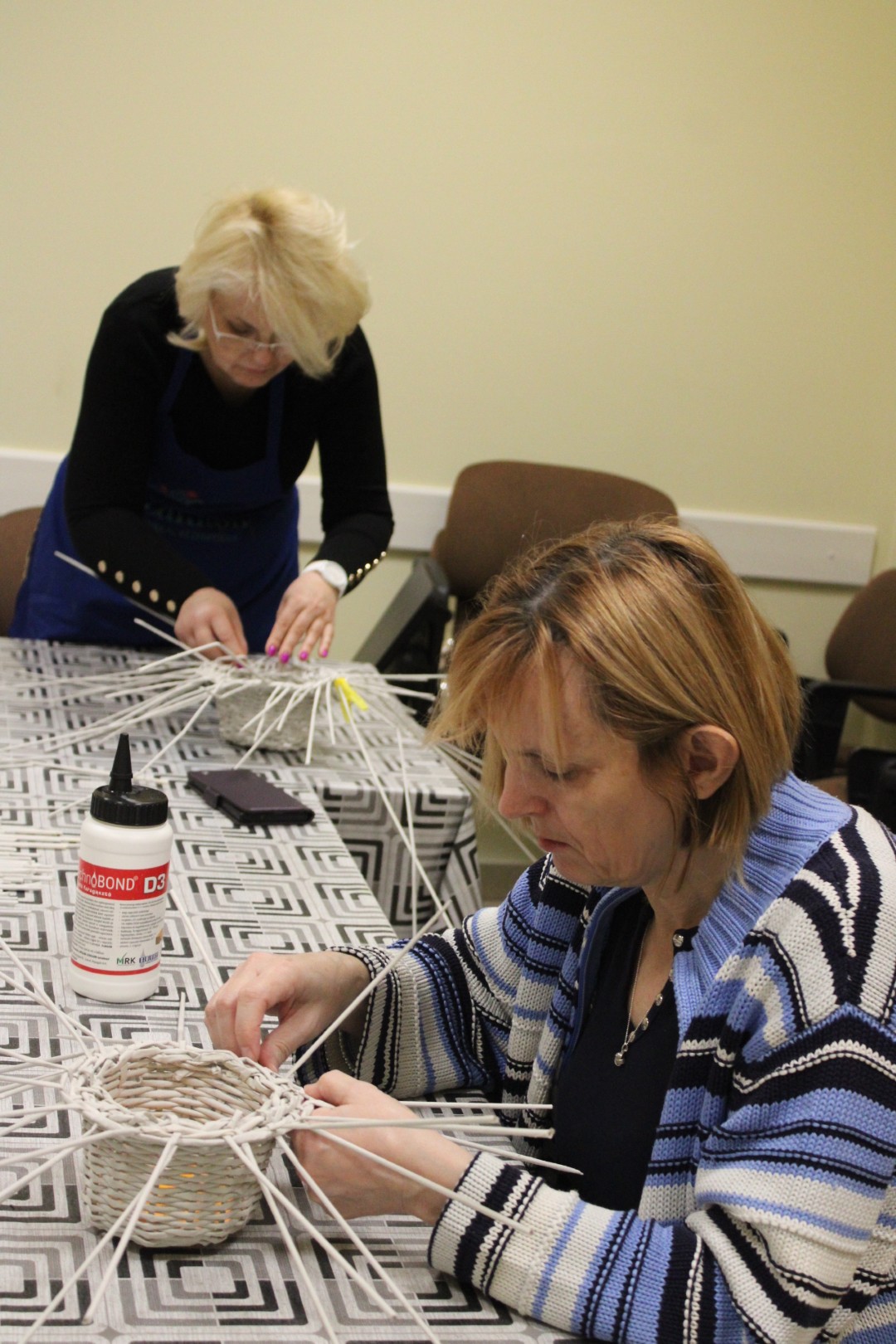 A papírfonó szakkör összejövetelének hétfői alkalmán a csoporttagok folytatták a fehér kalap fonását. A kétszálas gyűrűfonás technikáját használva elkészültek a karimák is, így a fonószálak eldolgozásával be is fejeződött ez a feladat. Következő alkalommal új munkadarab és új technikák elsajátítása vár a szakkörösökre.