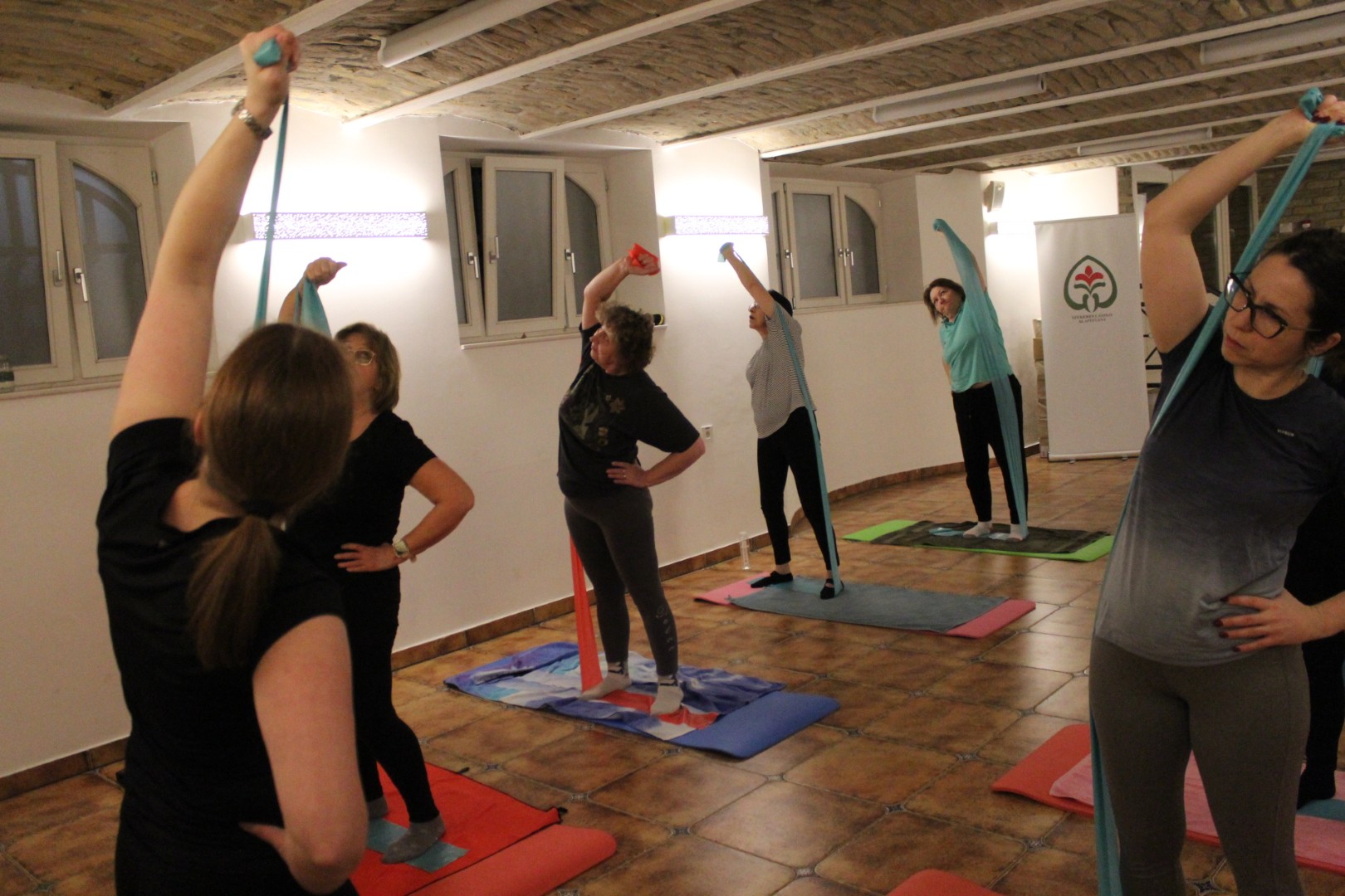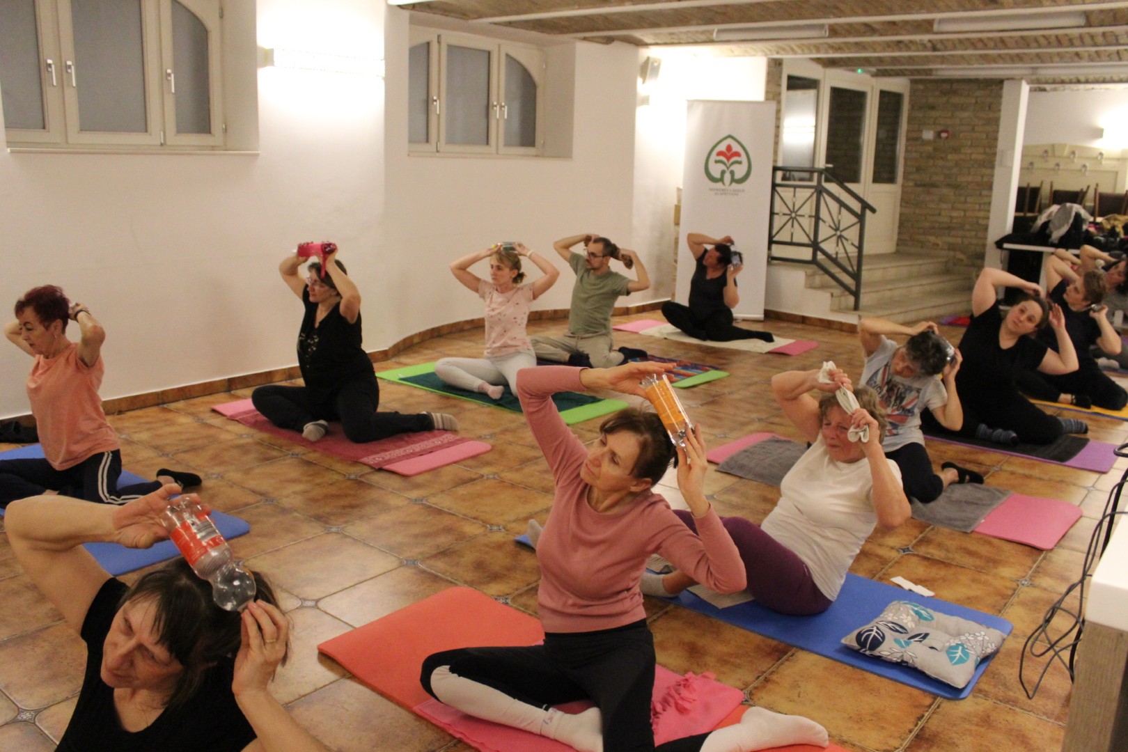Egészséges gerinctréning elnevezésű foglalkozásunk résztvevői ezen a szerdán is összegyűltek, hogy egy órán át együtt tegyenek fizikai állapotuk fenntartásáért, javításáért. A jóga és pilates mozgássorain alapuló gyakorlatok bemelegítéssel kezdődtek, majd áttértek minden izomcsoport, de főleg a gerinctartó mélyizmok edzésére. A torna ezúttal is megtette hatását. Várunk minden résztvevőt jövő héten is!