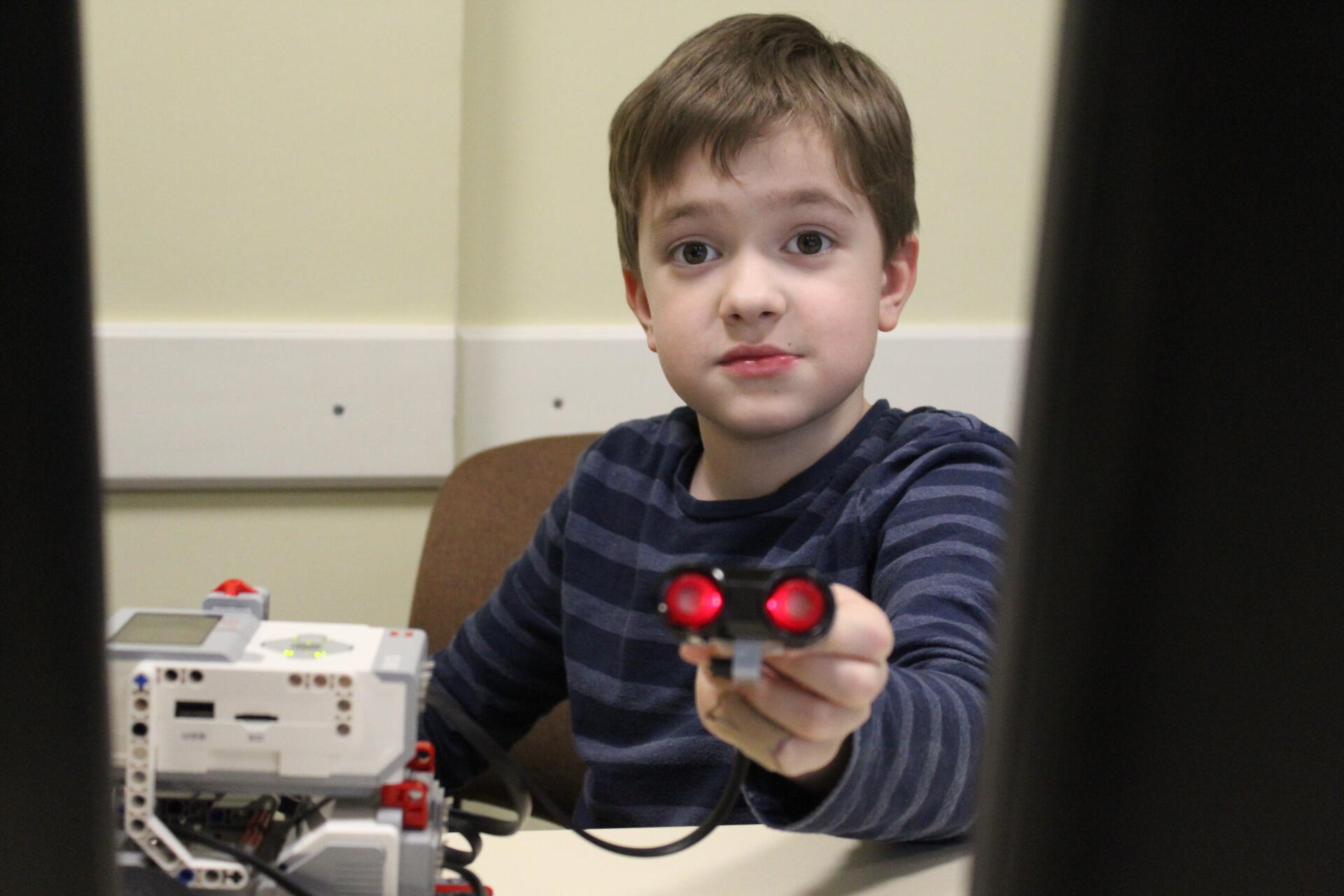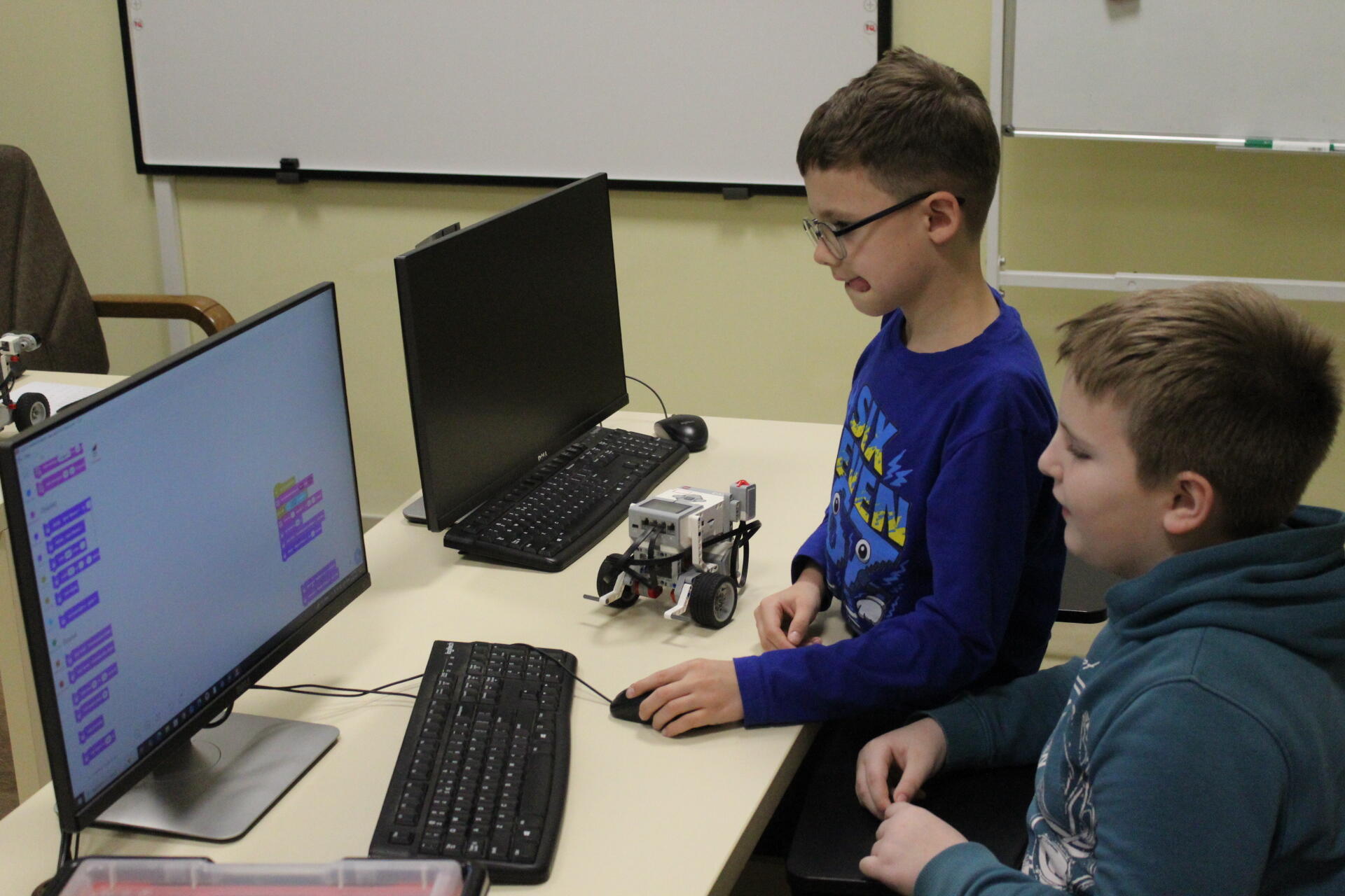 Izgalmas feladatokkal folytatódott LEGO robotika gyermekfoglalkozásunk csütörtökön, február 26-án. Ez alkalommal is újabb ismeretekkel gazdagodhattak a lelkes résztvevők: a robotokra távolságérzékelőt szereltünk, majd megtanultuk, hogyan kell beprogramozni a robotot, hogy az a fal előtt egy adott távolságban megálljon. A következő lépésként két érzékelőt kombináltunk; nyomógombbal megindítottuk a robotot, és „betanítottuk” arra, hogy elkerülje az előtte álló akadályt. Sok szeretettel várunk vissza Benneteket jövő héten is!