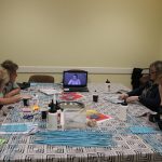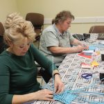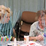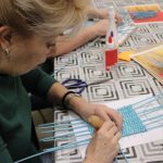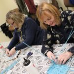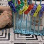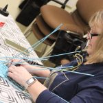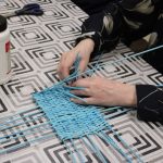 A papírfonó szakkör szorgos tagjai ezen a hétfőn folytatta a múlt héten megkezdett türkizkék fonott négyszögletű kosár készítését. Miután behelyezték az oldalsó tartópálcákat, kezdődhetett is a tároló oldalának fonása. A felállítósor elkészülte után kétsoros alapfonással dolgoztak a csoporttagok, jövő héten pedig tovább folytatják a kosárkát.