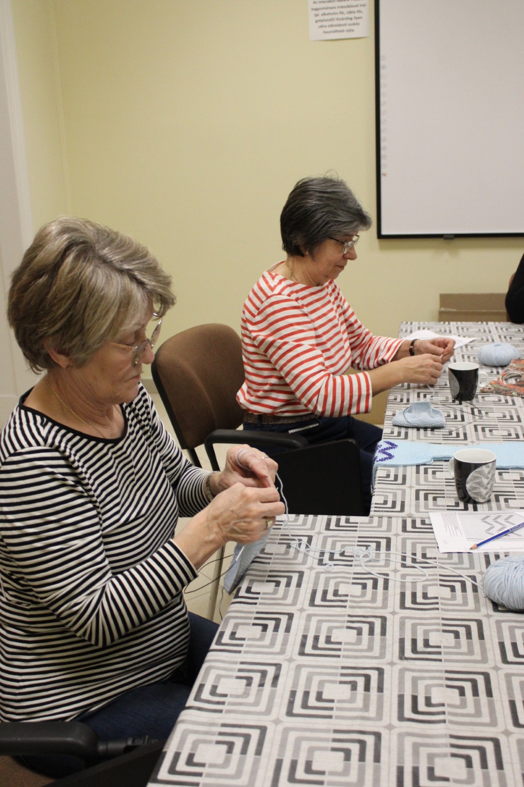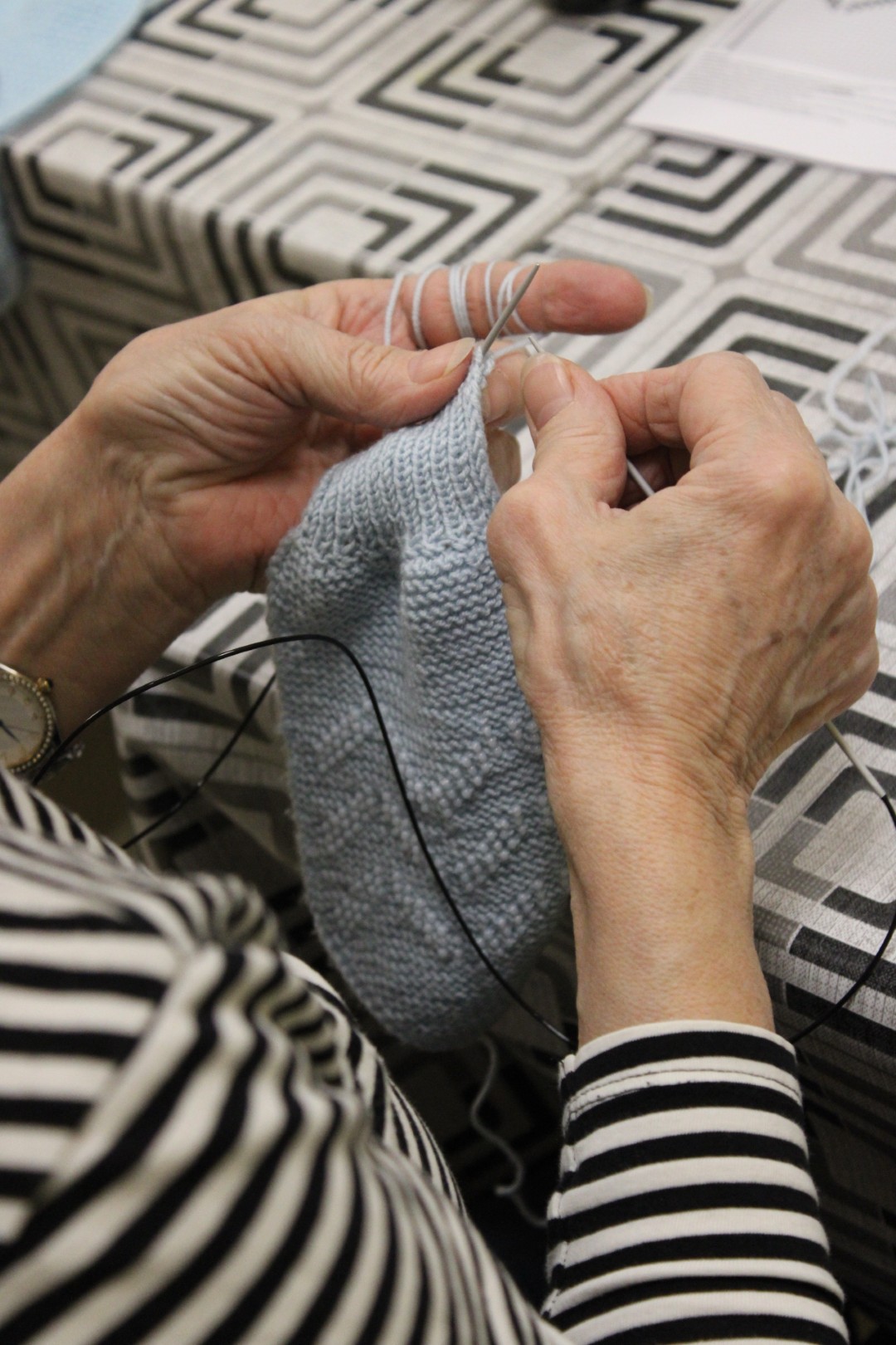 A gyöngykötő szakkör tagjai kedden folytatták a nyakmelegítő készítését. A gyöngyminta első részének megkötése után a bújtató rész jött sorra, amelyhez a bordás kötés technikáját alkalmazták a csoporttagok, hogy a továbbiakban lusta kötéssel haladjanak, így alakítva ki a sál középső részét. Jövő héten befejezéséhez fog közeledni ez a feladat is!