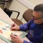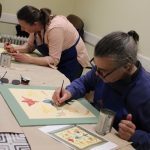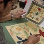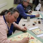A bútorfestő szakkör tagjai ezen a szerdán is kitettek magukért. Szorgos munkájuk során tovább gazdagodott a vizesréti templomkazetta motívumrendszere. Ezen az alkalmon a megfelelő szín kikeverése után felkerültek a levelek és indák, majd kezdődhetett az árnyékok festése, amely különleges hatást ad majd a kész munkadarabnak.