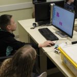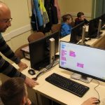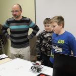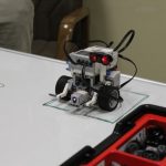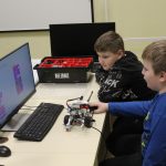 LEGO robotika foglalkozásunk csütörtöki alkalmán egy új érzékelővel ismerkedtünk meg, a színszenzorral. Ennek segítségével a kis tanulók el tudták érni, hogy a robot a falhoz érve megállapítsa annak színét, és ennek megfelelően cselekedjen. Az új eszköz segítségével a robot tulajdonképpen „ki tudott nézni az ablakon”: ha sötétet érzékelt, bement a házba, ha pedig világosat érzékelt, a vízcsap irányába mozdult. A következő órán ezt a műveletsort tökéletesítjük, majd tovább fejlesztjük a robot ügyességét: robotkart építünk rá, így már tárgyak mozgatását is képesek leszünk robotizálni.