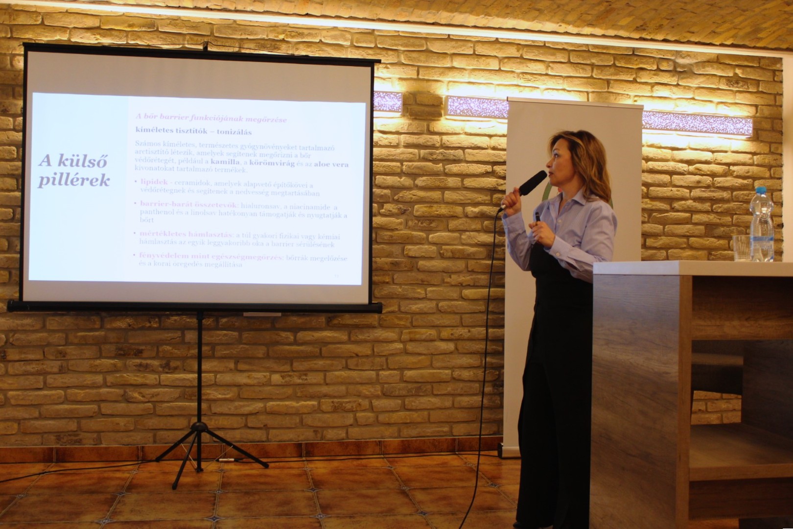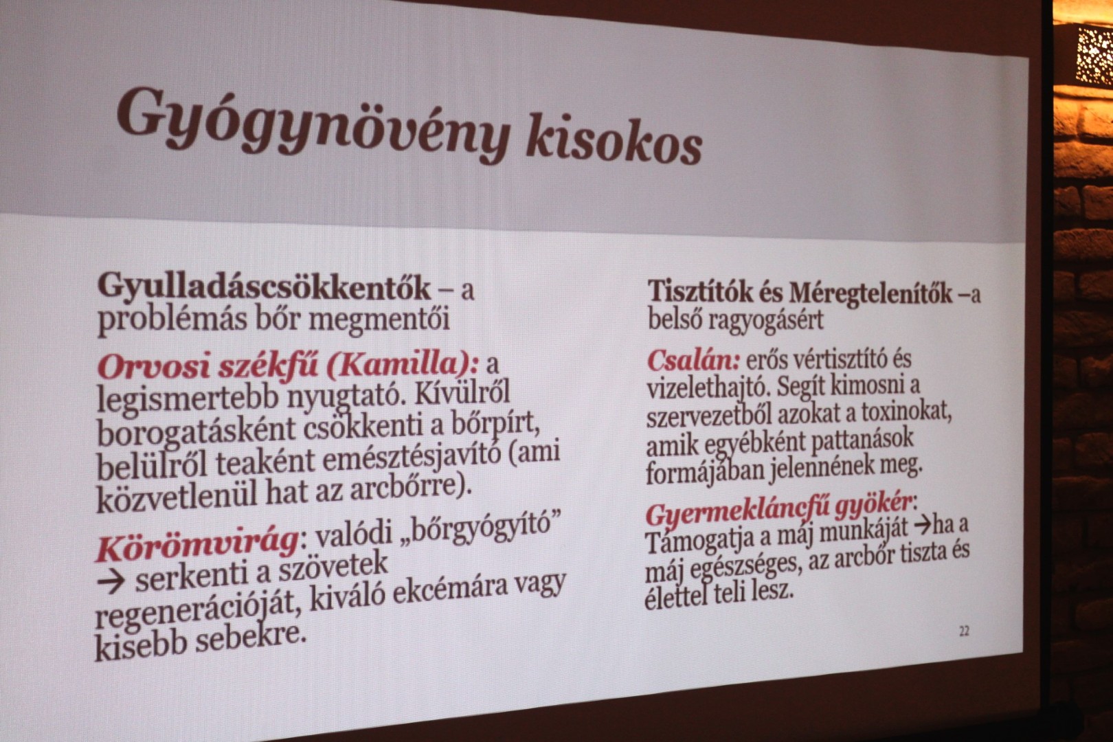 Lendületes ismeretterjesztő előadással folytatódott SzekerEST rendezvénysorozatunk csütörtökön, március 12-én. A Ragyogás belülről: Ahol az egészség és a szépség találkozik című esemény vendége Baranyi Eleonóra természetgyógyász, fitoterapeuta, kozmetikus-esztétikus, hivatalos felnőttképző oktató, a szabadkai Azzuro Group igazgatója volt, aki a holisztikus bőrápolás rejtelmeibe nyújtott betekintést. A kellemes hangulatú esten az egészség és a szépség láthatatlan, mégis szoros összefüggéséről, valamint a leggyakoribb bőrápolási tévhitekről is hallhatott közönségünk. Baranyi Eleonóra a bőrápolás külső és belső pilléreire, vagyis a kiegyensúlyozott táplálkozásra, a jó alvásminőségre, a mentális egészség megőrzésére és a természetes hatóanyagok használatára helyezte a hangsúlyt előadásában. Vendégünk saját tapasztalataiból merítve, szaktudására alapozva nyújtott tanácsokat a különböző bőrtípusoknak megfelelő, természetes bőrápoláshoz. Az est végén előadónk egy kis meglepetéssel köszönte meg a résztvevők jelenlétét. Köszönjük, hogy velünk töltötték a csütörtök estéjüket!
