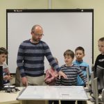 LEGO robotika foglalkozásunk március 19-ei alkalmán új képességgel bővítettük robotunkat. Az ügyes csoporttagokkal kart építettünk a robotokra, hogy annak segítségével fel tudjanak emelni dolgokat. A kart olyanra alakítottuk ki, hogy a már megszokott pályán elhelyezett „csontokat” könnyedén felemelje, és elszállítsa egyik pontból a másikba. Foglalkozássorozatunk hetedik alkalmán már egy összetett feladategyüttessel birkóztak meg a csapatok, mert amellett, hogy pontosan kellett megközelíteni a pályán a „csontokat”, a megszerzett zsákmánnyal rendkívül óvatosan kellett mozognia a robotoknak, nehogy elejtsék azt. Köszönjük, hogy velünk tartottatok! Legközelebb április 16-án várunk vissza Benneteket egy újabb izgalmas délutánra.