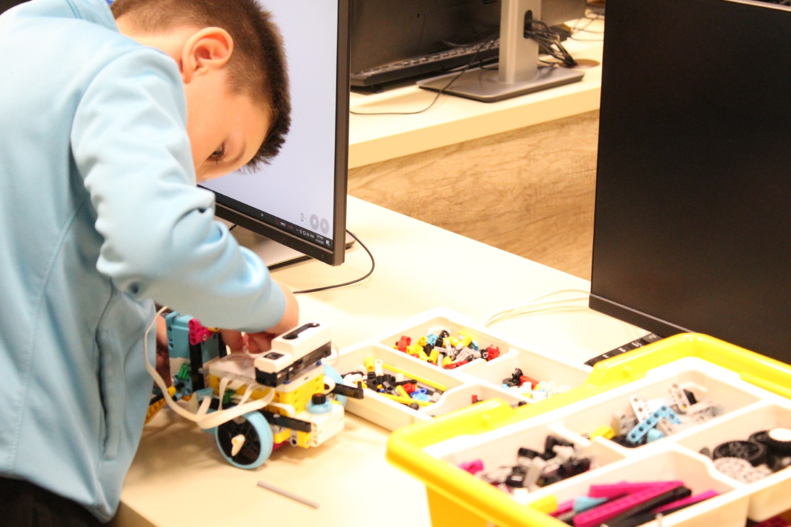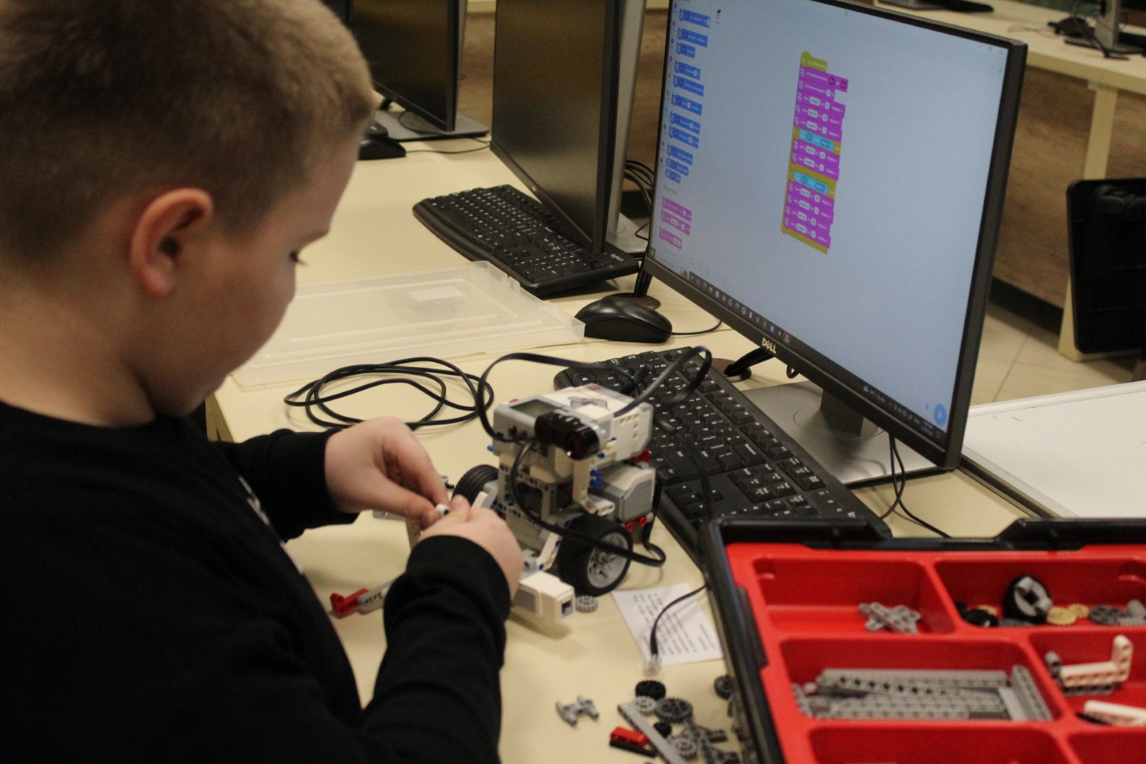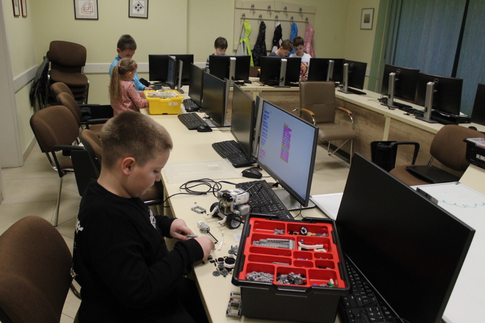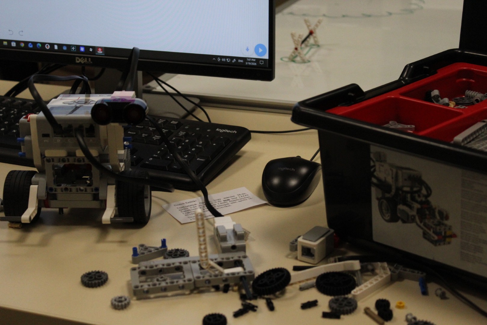 LEGO robotika foglalkozásunk március 19-ei alkalmán új képességgel bővítettük robotunkat. Az ügyes csoporttagokkal kart építettünk a robotokra, hogy annak segítségével fel tudjanak emelni dolgokat. A kart olyanra alakítottuk ki, hogy a már megszokott pályán elhelyezett „csontokat” könnyedén felemelje, és elszállítsa egyik pontból a másikba. Foglalkozássorozatunk hetedik alkalmán már egy összetett feladategyüttessel birkóztak meg a csapatok, mert amellett, hogy pontosan kellett megközelíteni a pályán a „csontokat”, a megszerzett zsákmánnyal rendkívül óvatosan kellett mozognia a robotoknak, nehogy elejtsék azt. Köszönjük, hogy velünk tartottatok! Legközelebb április 16-án várunk vissza Benneteket egy újabb izgalmas délutánra.