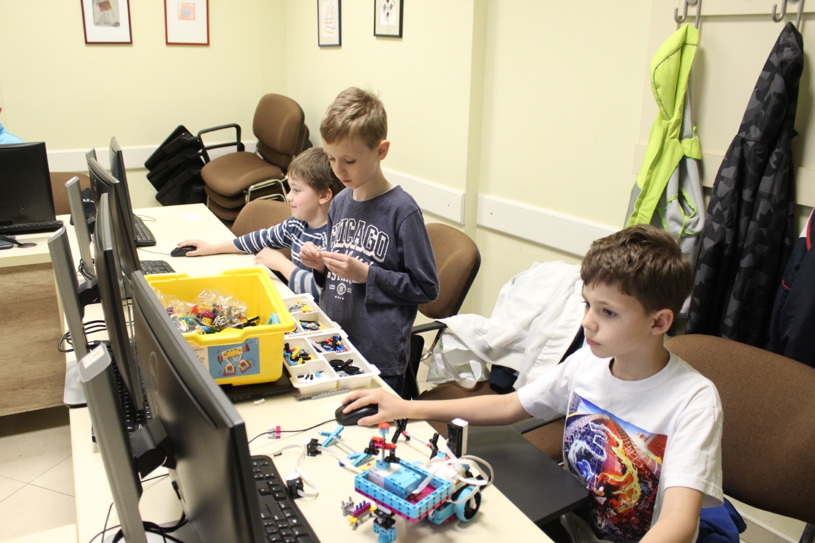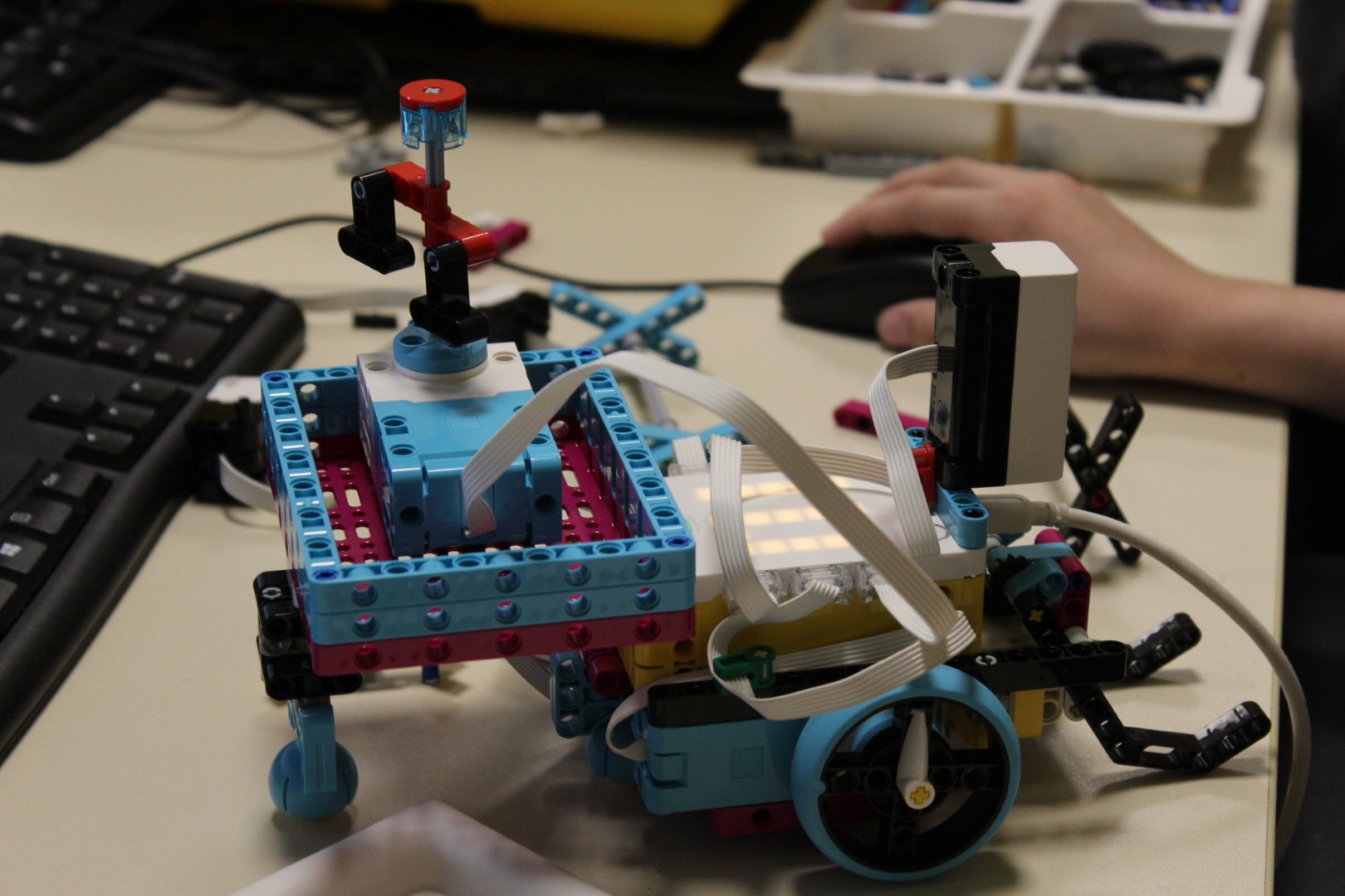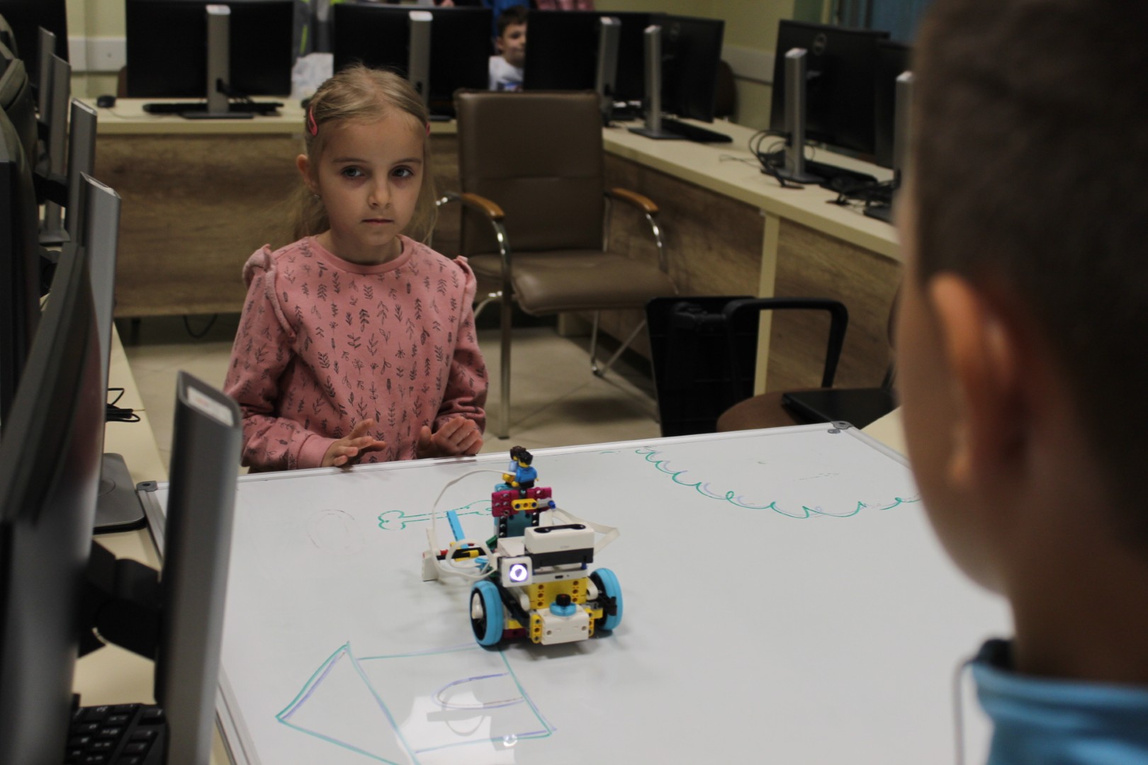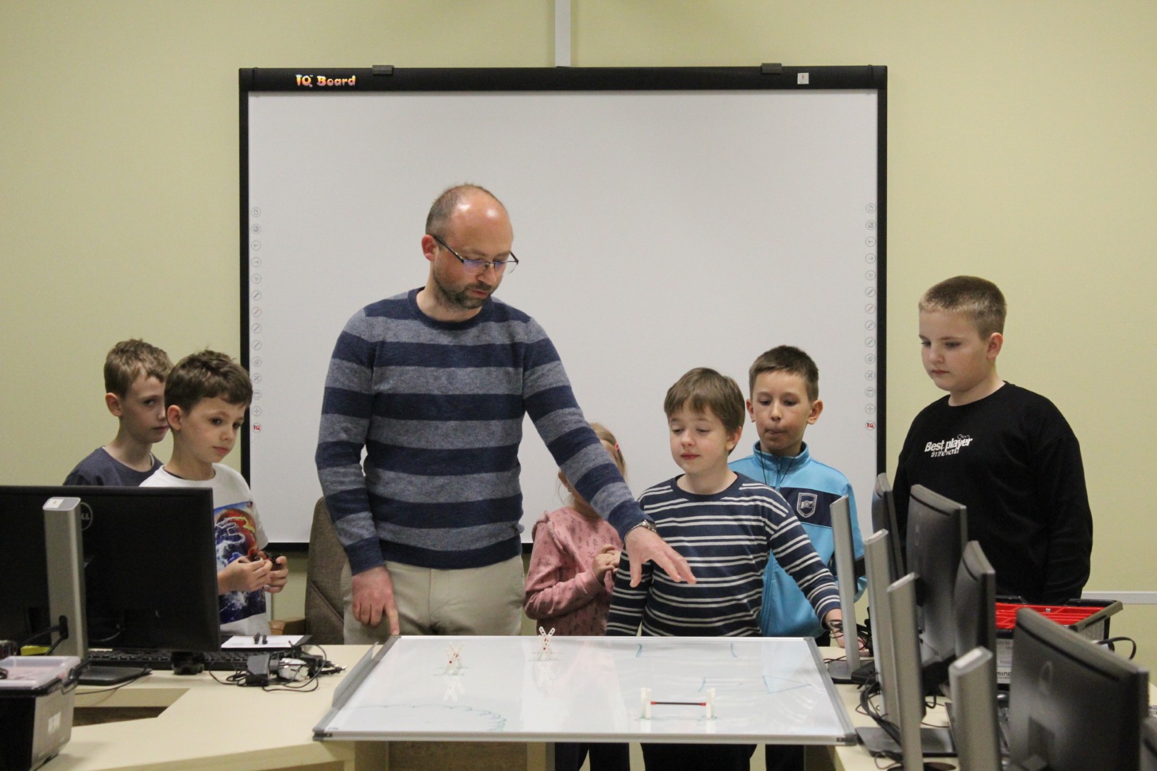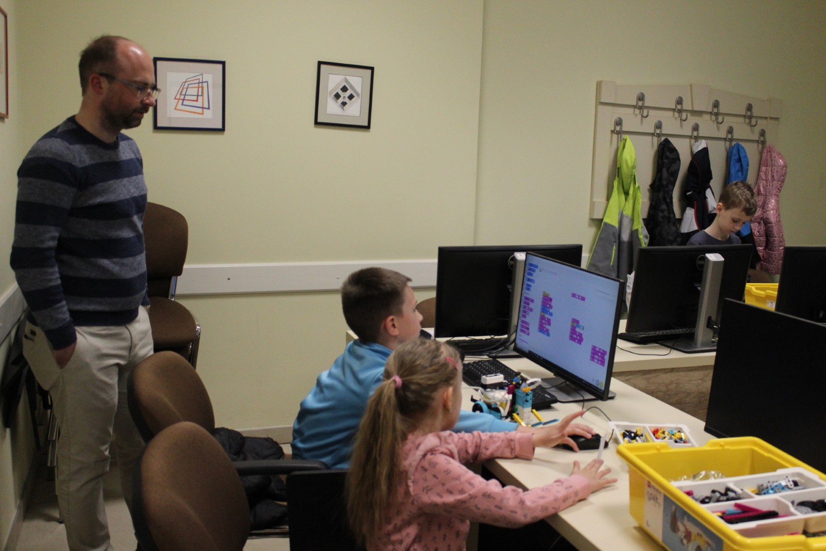 LEGO robotika foglalkozásunk március 19-ei alkalmán új képességgel bővítettük robotunkat. Az ügyes csoporttagokkal kart építettünk a robotokra, hogy annak segítségével fel tudjanak emelni dolgokat. A kart olyanra alakítottuk ki, hogy a már megszokott pályán elhelyezett „csontokat” könnyedén felemelje, és elszállítsa egyik pontból a másikba. Foglalkozássorozatunk hetedik alkalmán már egy összetett feladategyüttessel birkóztak meg a csapatok, mert amellett, hogy pontosan kellett megközelíteni a pályán a „csontokat”, a megszerzett zsákmánnyal rendkívül óvatosan kellett mozognia a robotoknak, nehogy elejtsék azt. Köszönjük, hogy velünk tartottatok! Legközelebb április 16-án várunk vissza Benneteket egy újabb izgalmas délutánra.