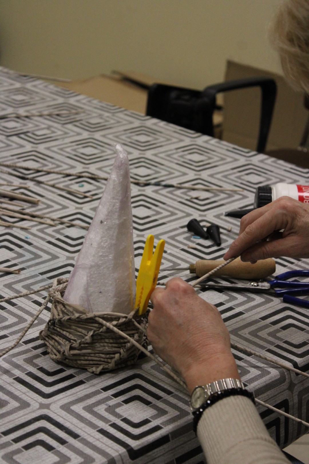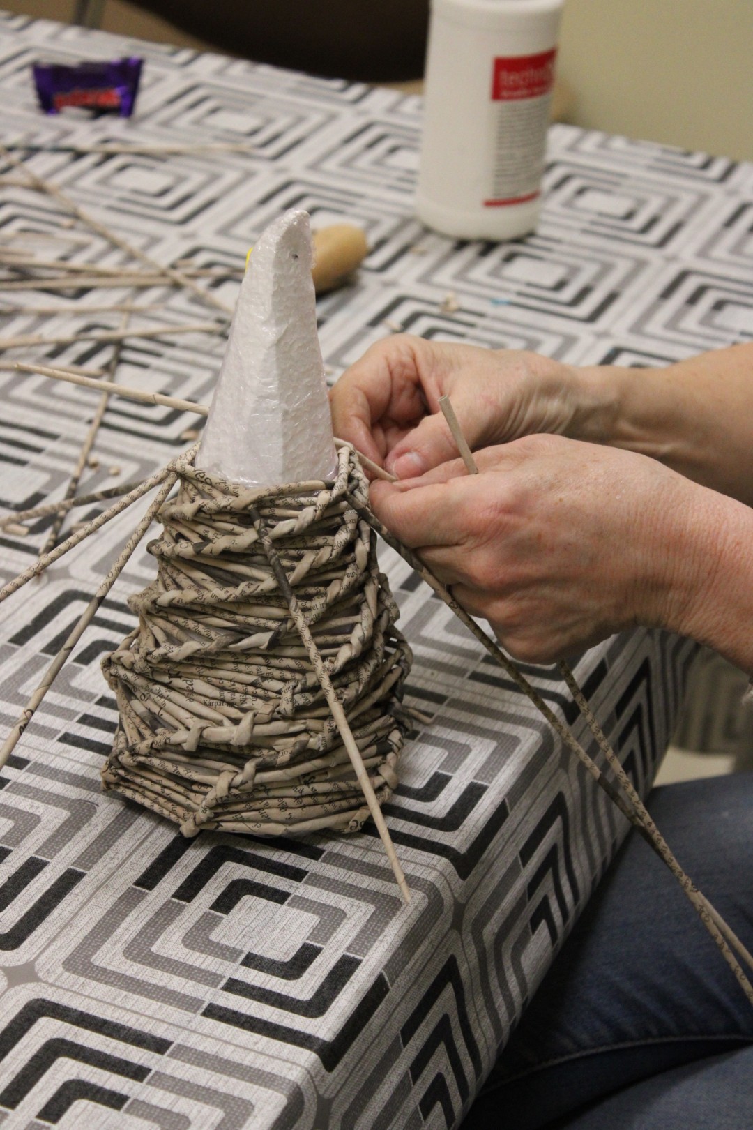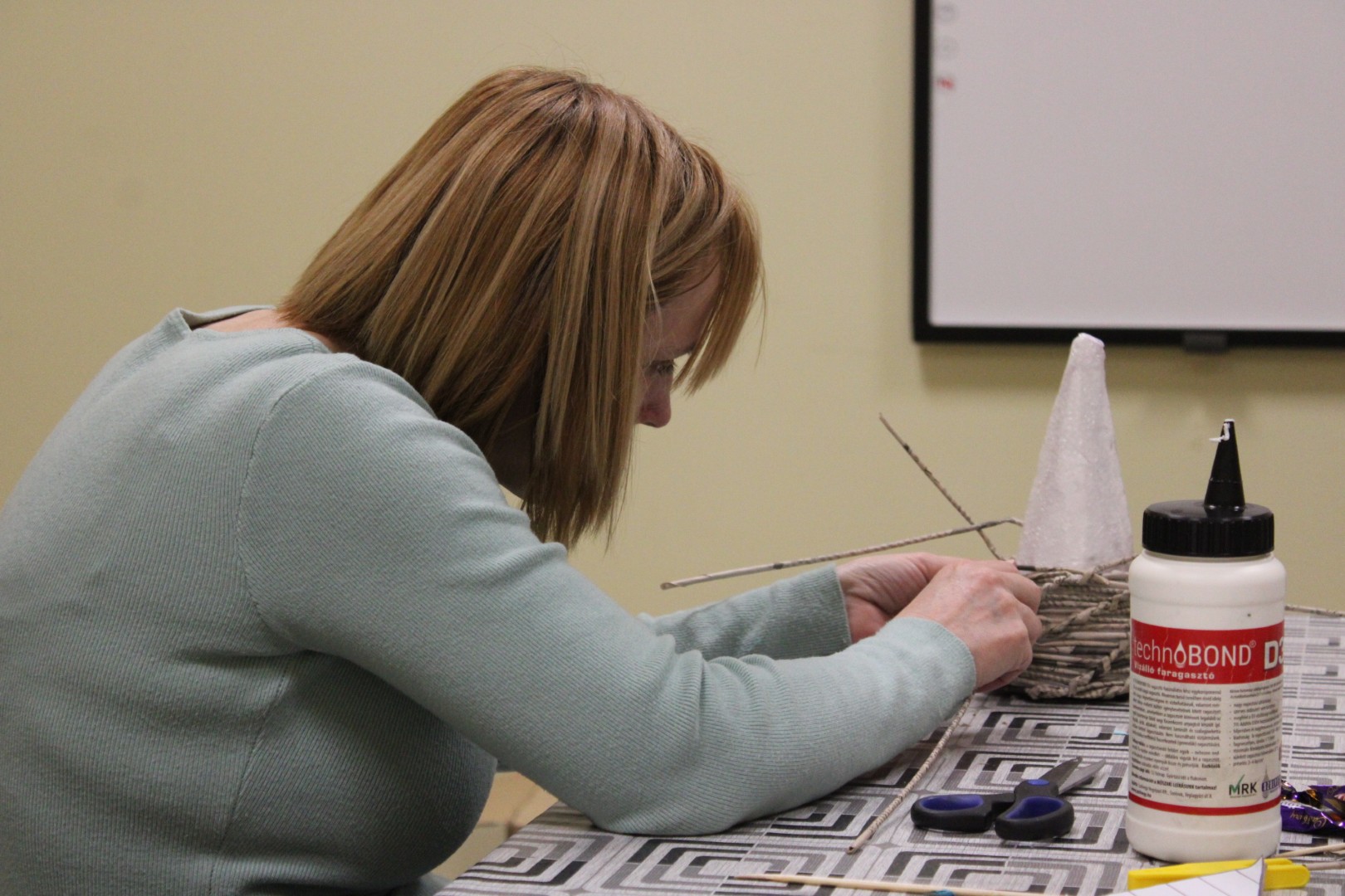 A hétfő délután ismét a papírfonó szakkör tagjaié volt alapítványunk épületében. Új technika elsajátítása volt soron ezúttal, méghozzá a spirálfonással ismerkedtek meg a csoporttagok. Ez a fonási mód többféle tárgy elkészítésére alkalmas. Ezen a napon karácsonyfa készítésébe fogtak a résztvevők, amit majd más, ezzel a technikával alkotott darab is követ majd.