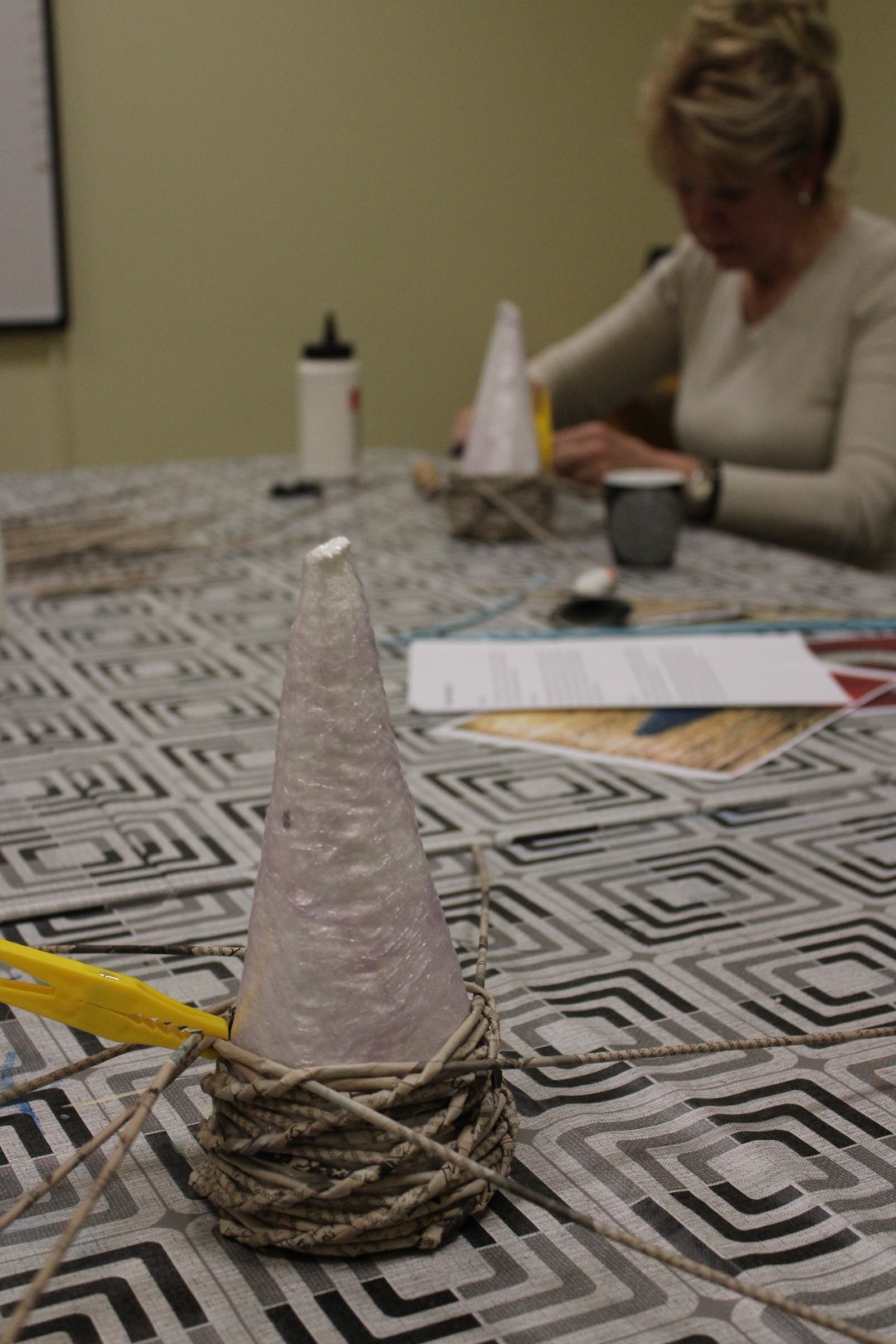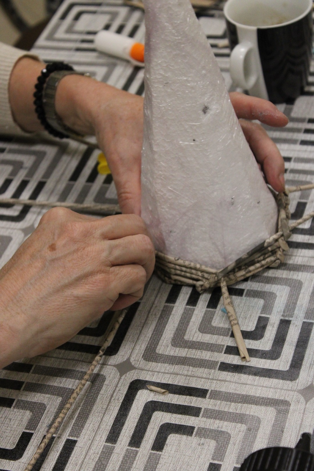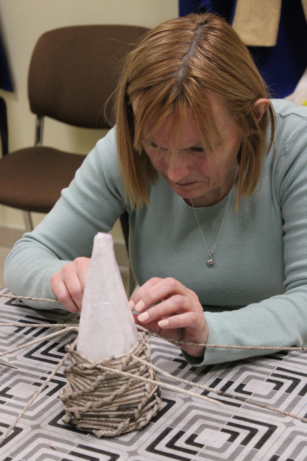 A hétfő délután ismét a papírfonó szakkör tagjaié volt alapítványunk épületében. Új technika elsajátítása volt soron ezúttal, méghozzá a spirálfonással ismerkedtek meg a csoporttagok. Ez a fonási mód többféle tárgy elkészítésére alkalmas. Ezen a napon karácsonyfa készítésébe fogtak a résztvevők, amit majd más, ezzel a technikával alkotott darab is követ majd.