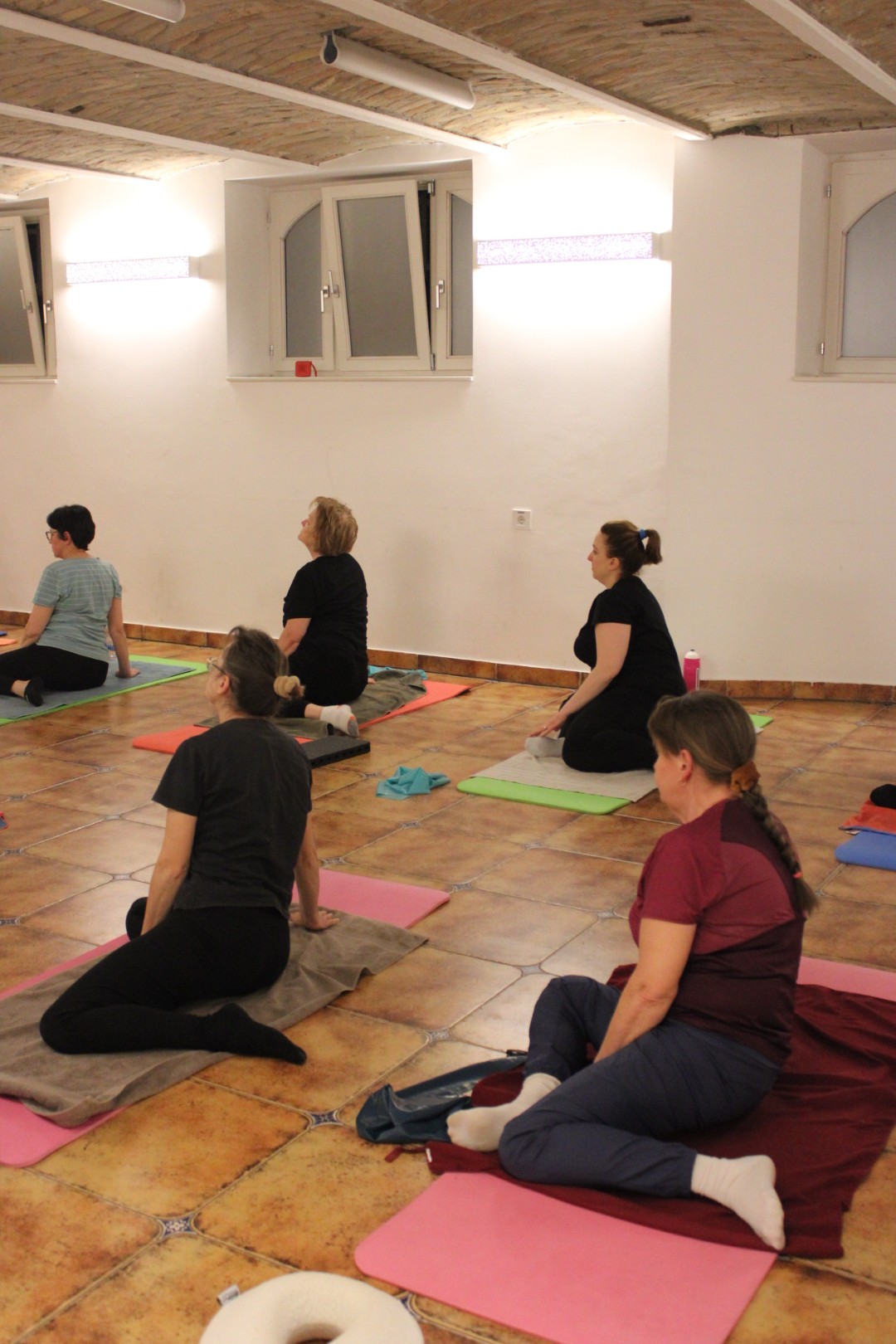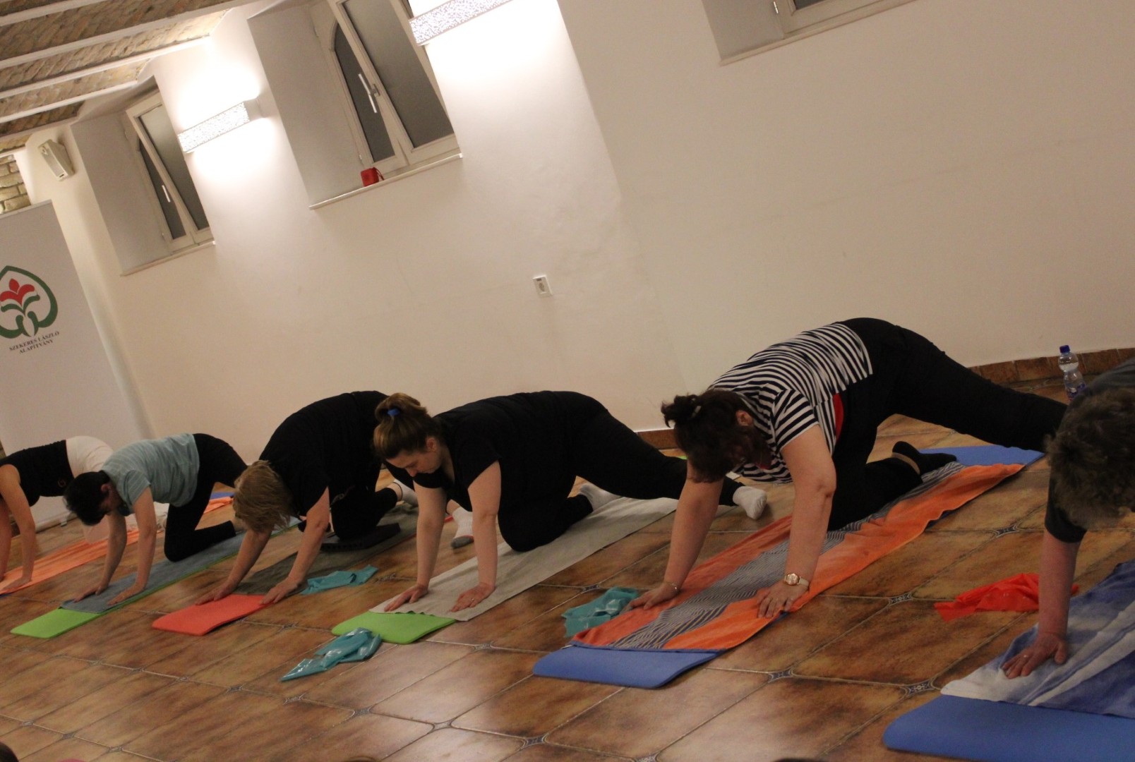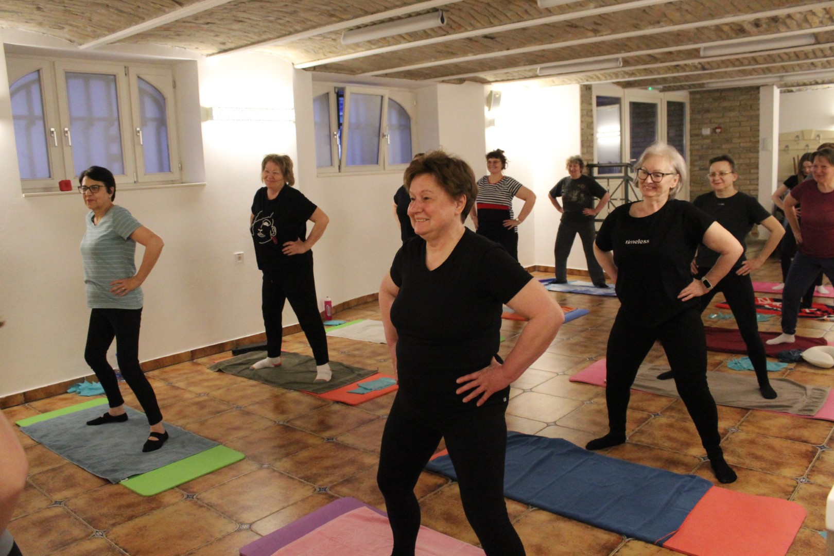Szerdán az alapítvány pincehelyisége újra megtelt az Egészséges gerinctréning foglalkozás résztvevőivel, hogy egy órán át együtt mozoghassanak, ezáltal védve gerincük egészségét. A szokásos bemelegítő és nyújtógyakorlatok után következtek a különféle izomcsoportokat és ízületeket edzésben tartó, jóga és pilates alapú mozgásformák, különös tekintettel a gerincoszlopot tartó izmokra. A csoporttagok ezúttal is jó hangulatban váltak el egymástól a következő találkozásig.