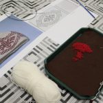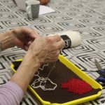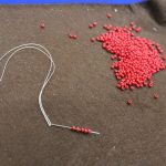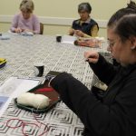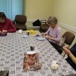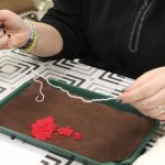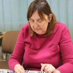 A gyöngykötő szakkör tagjai kedd délután a soron következő munkadarab előkészítésével és megkezdésével voltak elfoglalva. Az új feladat a tótkomlósi takácsmintával díszített csizmagallér kidolgozása, ehhez kellett első lépésben a nem csekély számú gyöngyöt felfűzni. A mintalap alapos tanulmányozása után kezdődhetett is ennek a nagyon látványos kiegészítőnek megkötése, amely nemcsak szép, de praktikus része lehet ruhatáruknak.