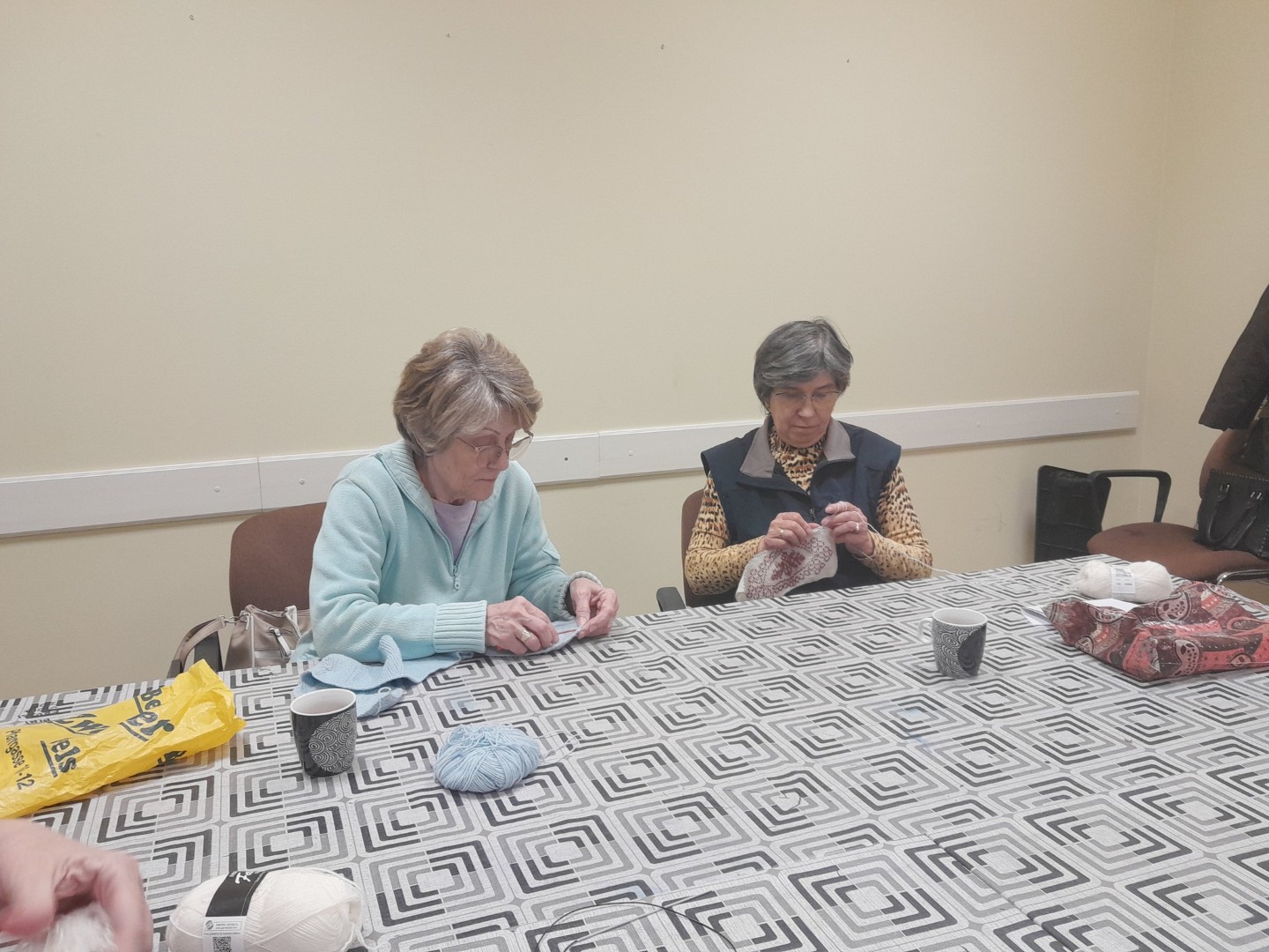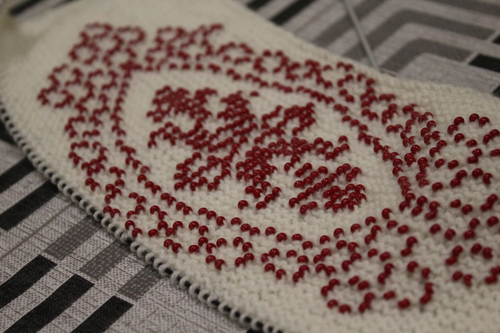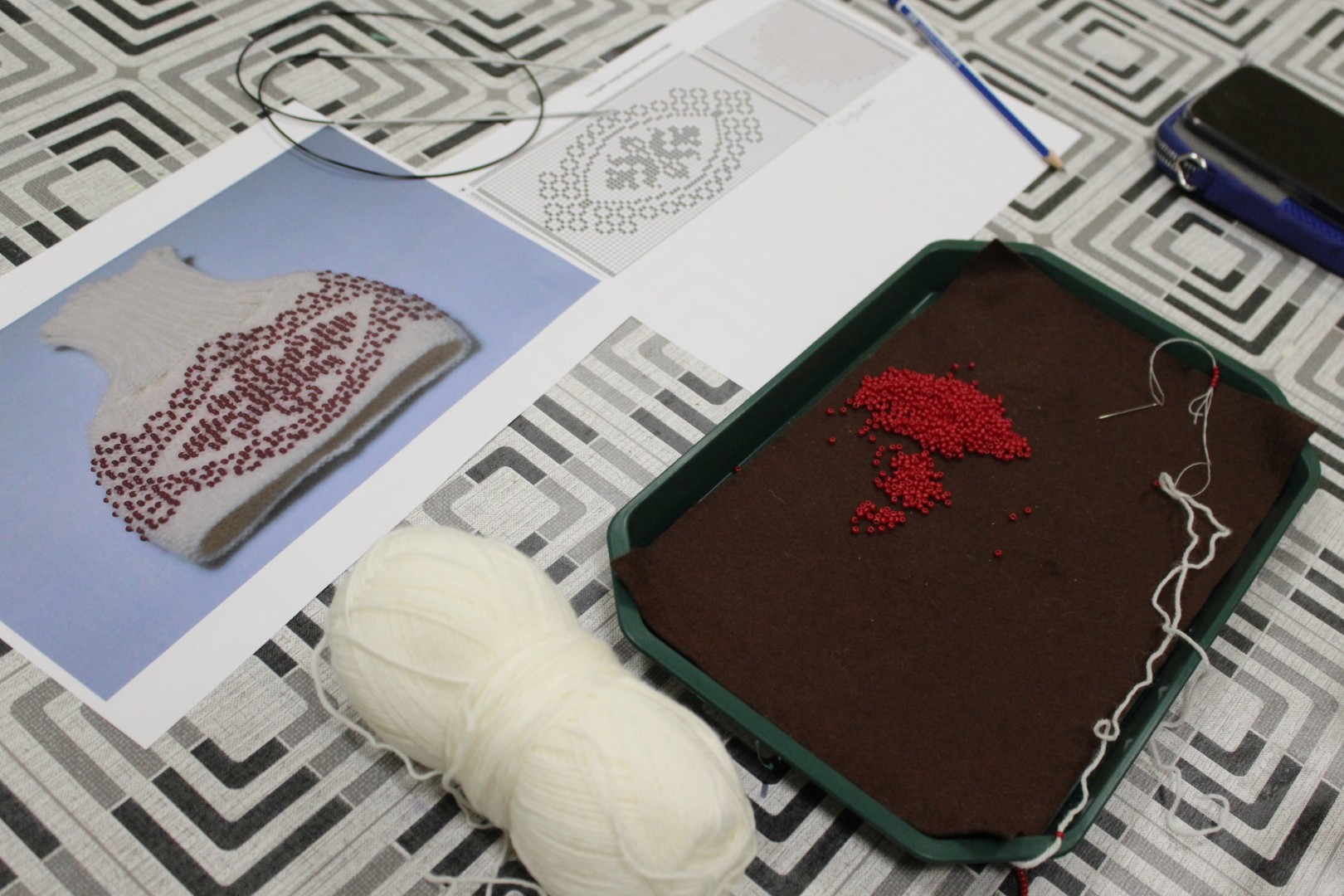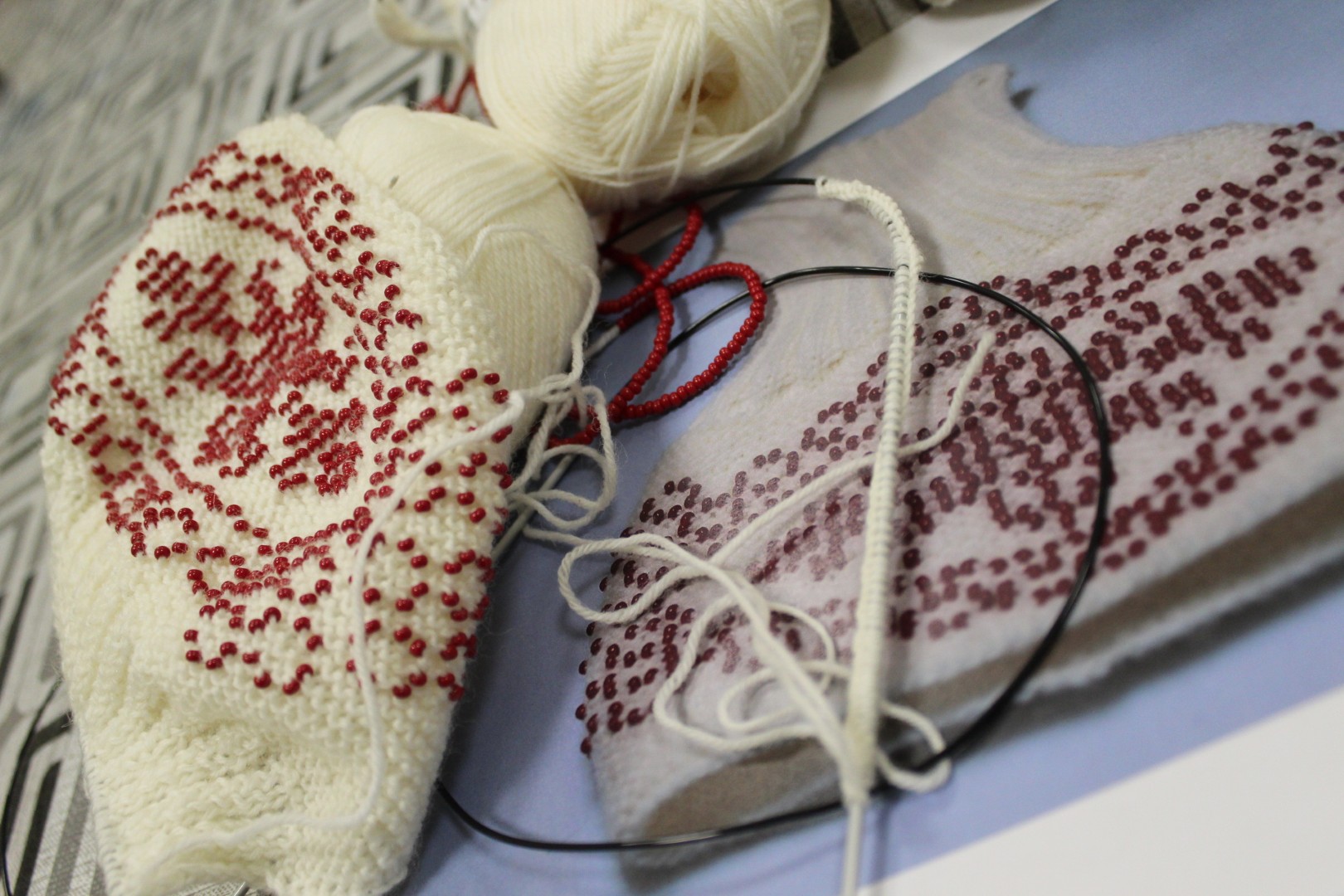 A gyöngykötő szakkör tagjai kedd délután a soron következő munkadarab előkészítésével és megkezdésével voltak elfoglalva. Az új feladat a tótkomlósi takácsmintával díszített csizmagallér kidolgozása, ehhez kellett első lépésben a nem csekély számú gyöngyöt felfűzni. A mintalap alapos tanulmányozása után kezdődhetett is ennek a nagyon látványos kiegészítőnek megkötése, amely nemcsak szép, de praktikus része lehet ruhatáruknak.