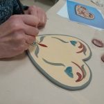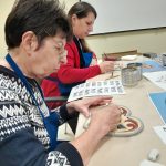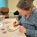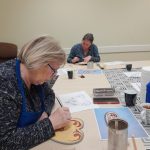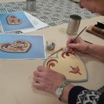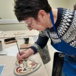 Bútorfestő szakkörünk huszadik alkalmához érkeztünk szerdán, amikor a csoporttagok a múlt héten megkezdett munkájukon dolgoztak tovább. A színkeverés után vizesréti motívumok jelentek meg az ajtónévtáblákon, a befejező fázisban pedig a feketével megfestett árnyékok és indák adták meg a munkadarab végső formáját. Ezen a délutánon is nagyon szép alkotások születtek, bizonyítva a szakkörösök rátermettségét.