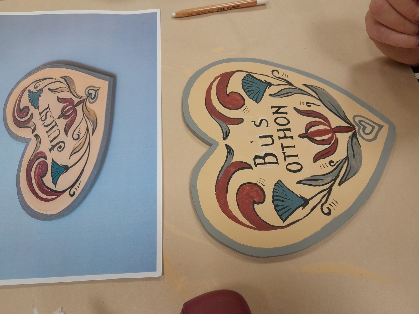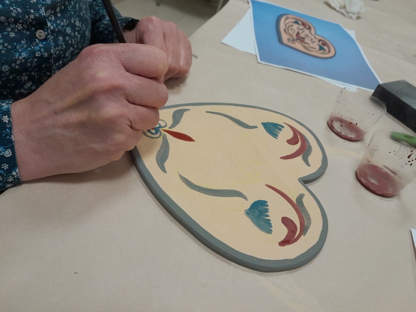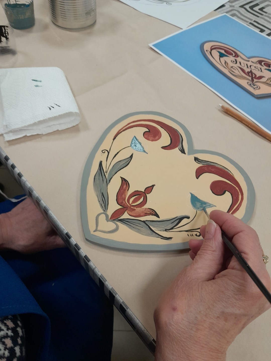 Bútorfestő szakkörünk huszadik alkalmához érkeztünk szerdán, amikor a csoporttagok a múlt héten megkezdett munkájukon dolgoztak tovább. A színkeverés után vizesréti motívumok jelentek meg az ajtónévtáblákon, a befejező fázisban pedig a feketével megfestett árnyékok és indák adták meg a munkadarab végső formáját. Ezen a délutánon is nagyon szép alkotások születtek, bizonyítva a szakkörösök rátermettségét.