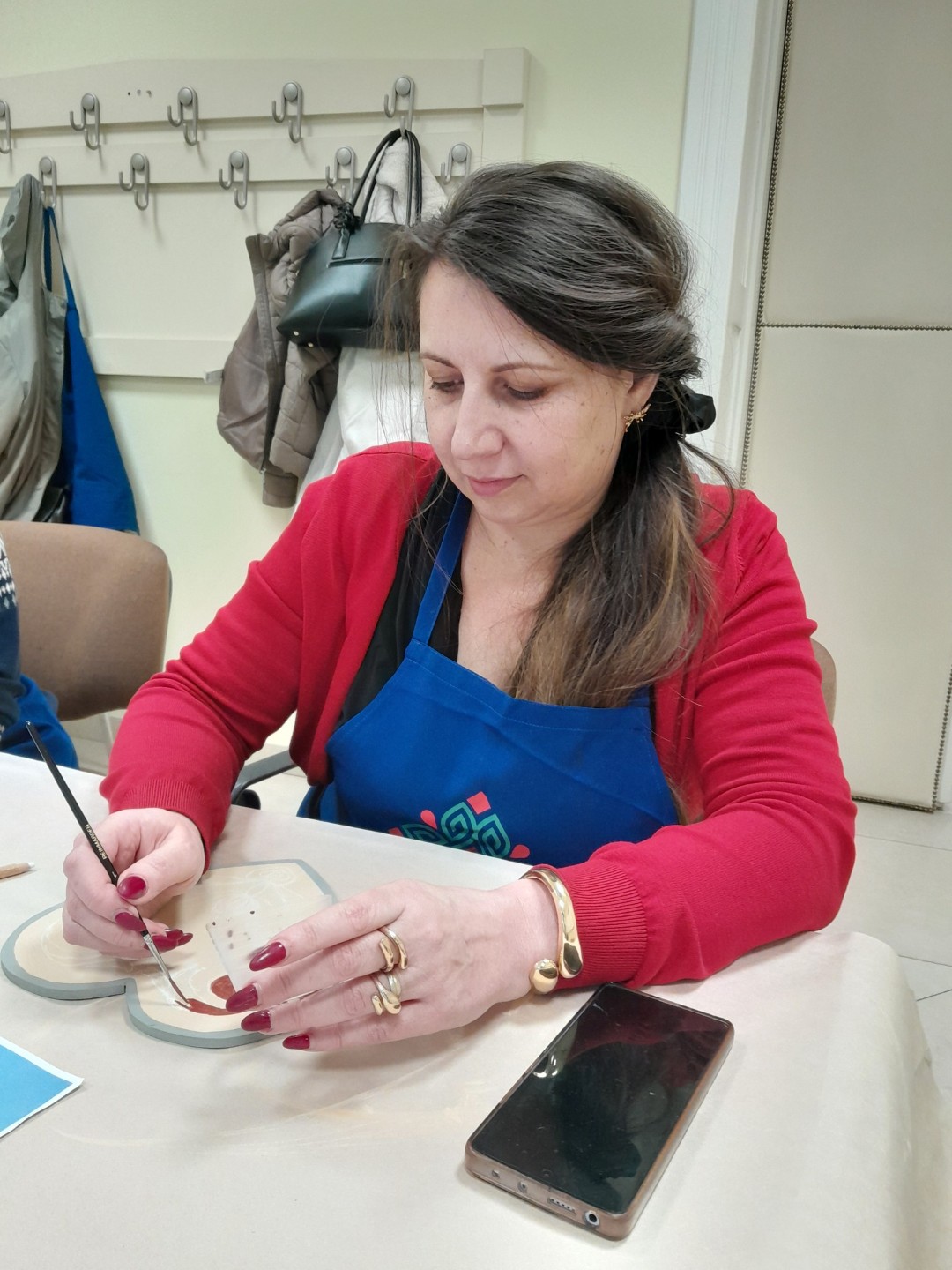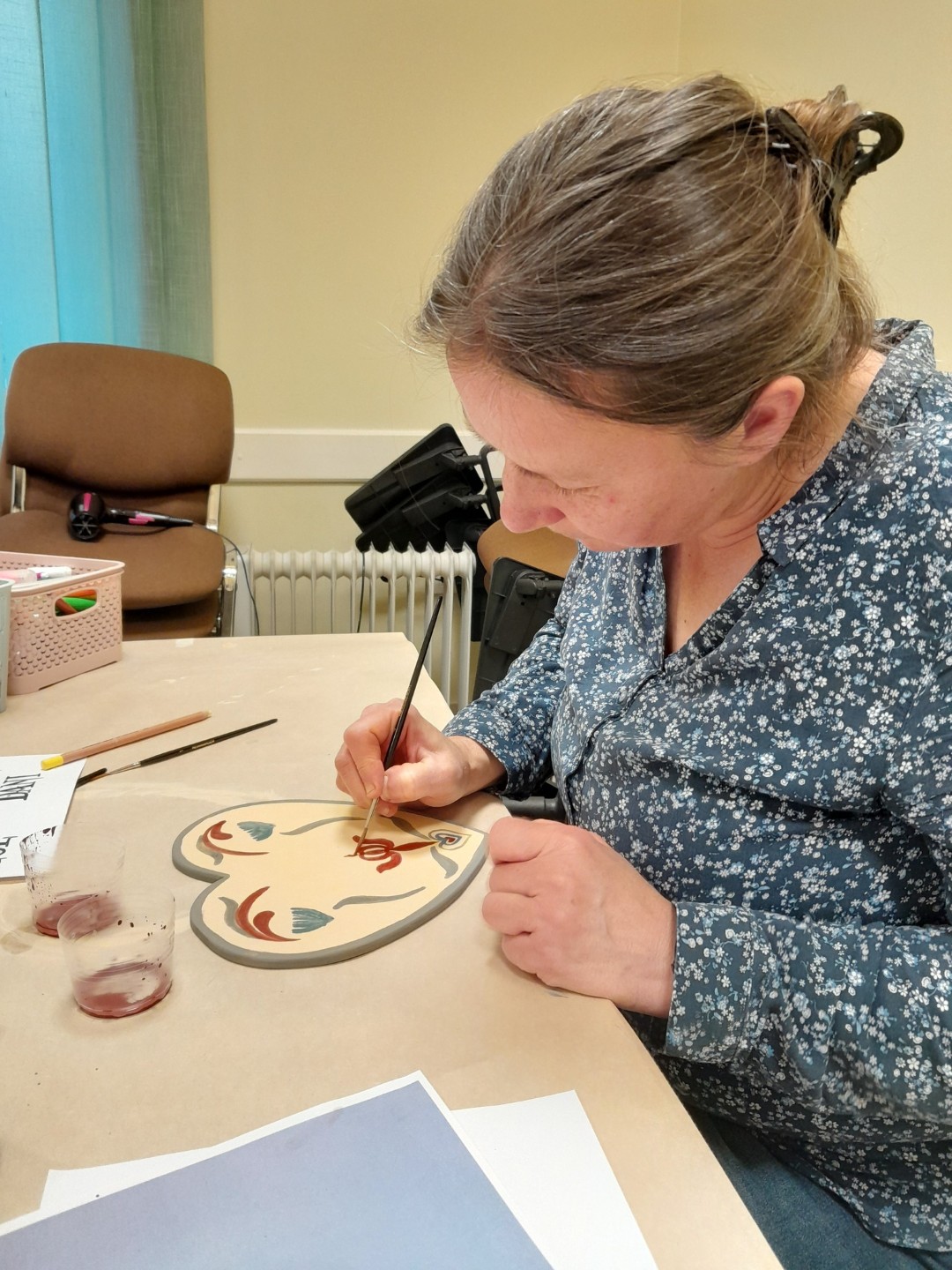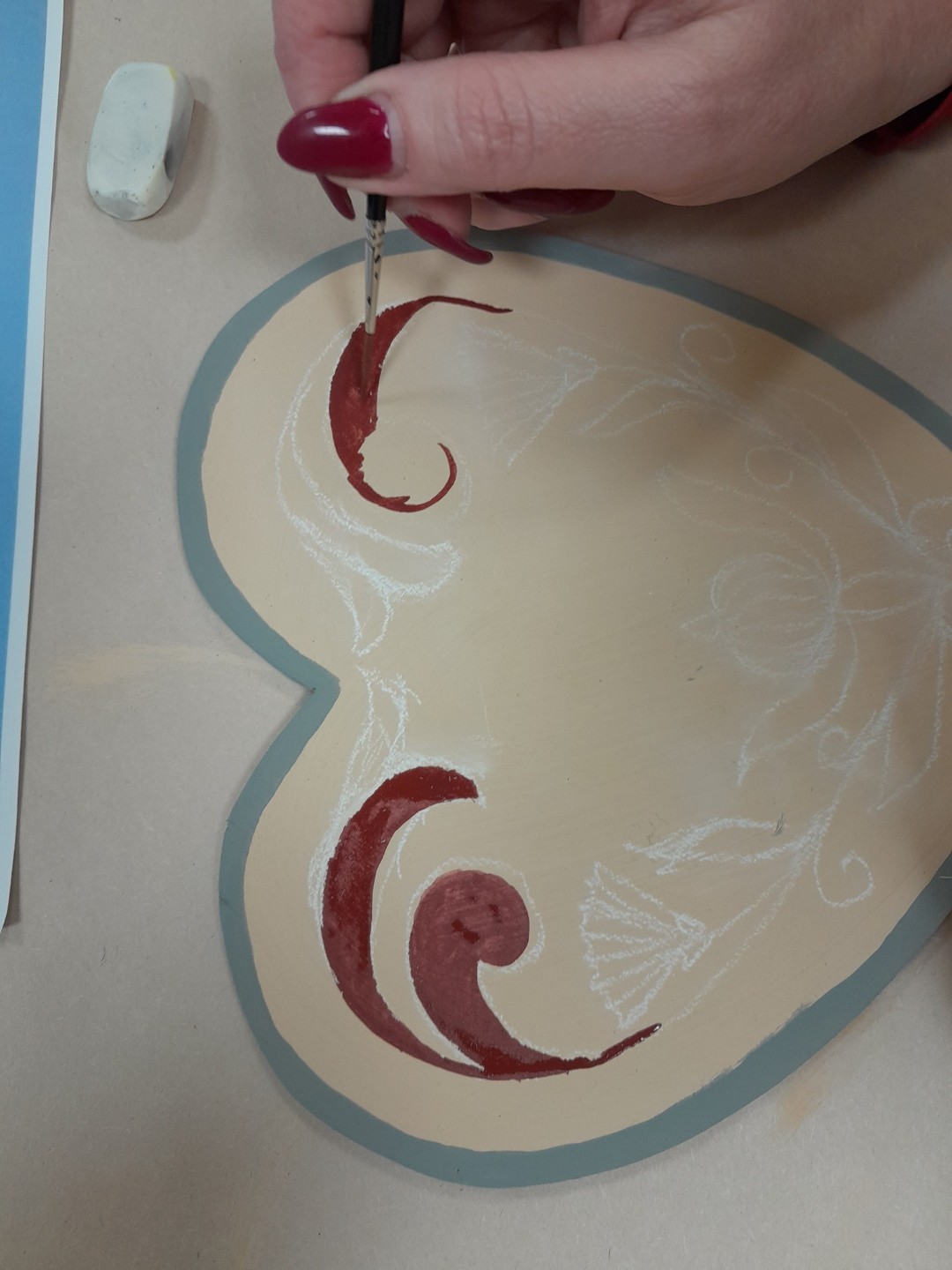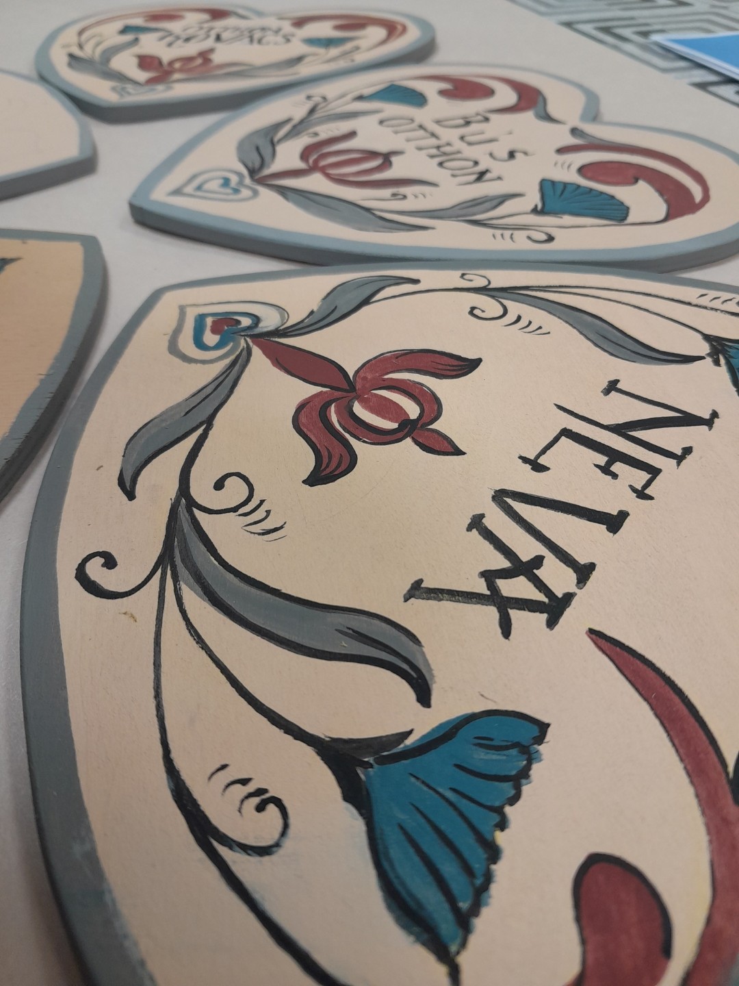 Bútorfestő szakkörünk huszadik alkalmához érkeztünk szerdán, amikor a csoporttagok a múlt héten megkezdett munkájukon dolgoztak tovább. A színkeverés után vizesréti motívumok jelentek meg az ajtónévtáblákon, a befejező fázisban pedig a feketével megfestett árnyékok és indák adták meg a munkadarab végső formáját. Ezen a délutánon is nagyon szép alkotások születtek, bizonyítva a szakkörösök rátermettségét.