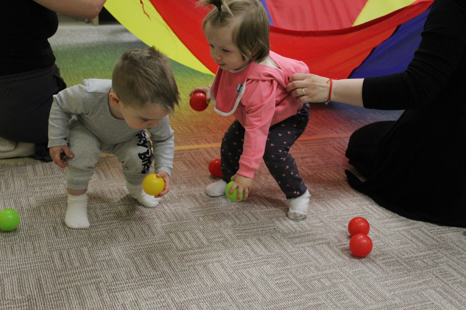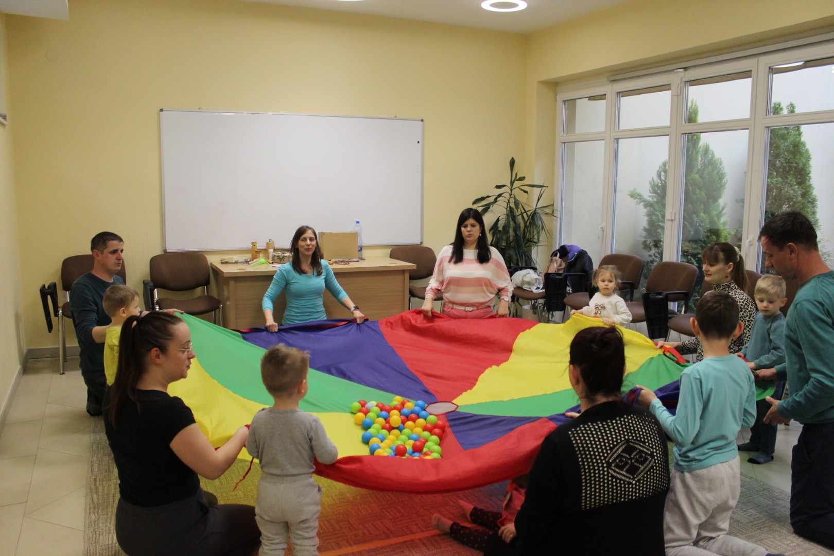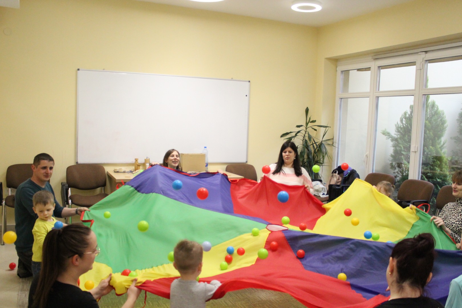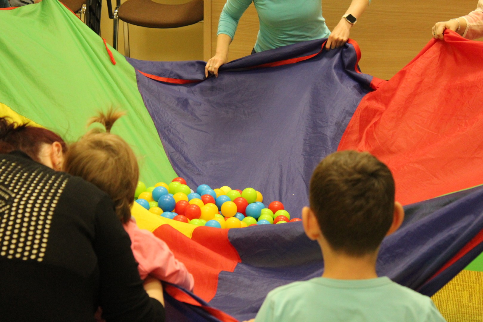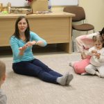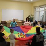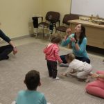 A húsvéti ünnepek után újult erővel tértek vissza kis vendégeink Kiugrott a gombóc elnevezésű baba-mama foglalkozásunk e heti alkalmára. Április 14-én, kedden énekszóval és mókás játékokkal töltöttük a délutánt, elénekeltük kedvenc dalocskáinkat, de előkerült a színes ejtőernyő is. A tenyeresdik és höcögtetők ezúttal is nagy mosolyt csaltak a gyerekek arcára. Sok szeretettek várunk vissza Benneteket jövő héten is!