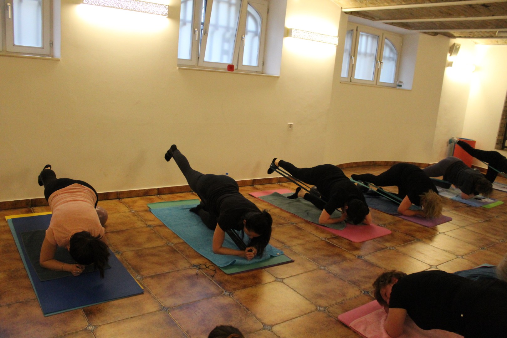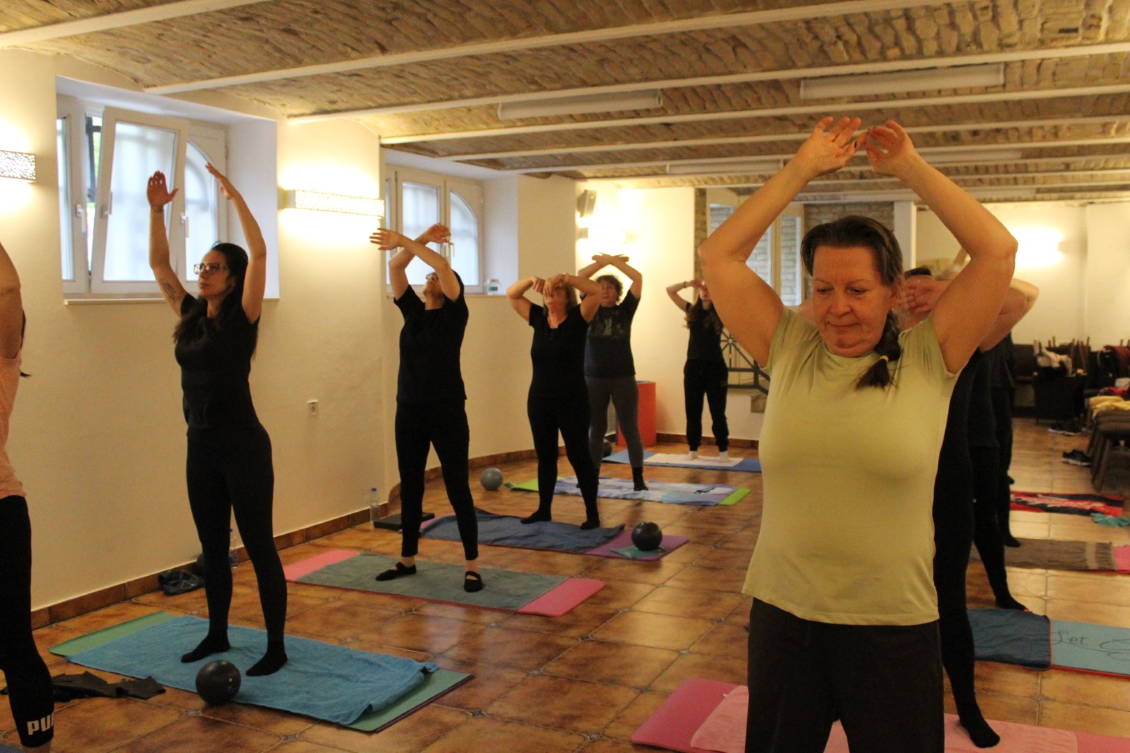 Egészséges gerinctréning nevet viselő foglalkozásunk szorgos és kitartó tagjai ismét összegyűltek alapítványunk pincehelyiségében egy órányi edzés erejéig. A bemelegítő gyakorlatok után áttértek azokra a mozgássorokra, amelyek segítségével tovább erősítették a gerincet tartó mélyizmokat. Természetesen sor került arra az edzésprogramra is, amely végzésével az egész test átmozgatásra került, méghozzá labdák és gumiszalagok használatával.
