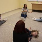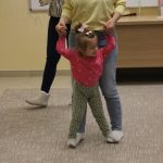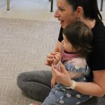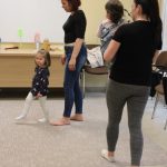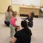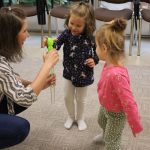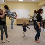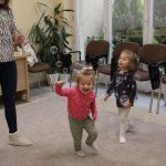 Muzsika, énekszó, nevetés, móka jellemezte a keddi Kiugrott a gombóc foglalkozást. Buborékcsalogató dalocskával kezdődött a délután, majd rá is tértünk a legkedveltebb mondókákra, lovagoltatókra, döcögtetőkre. Új játékok is helyet kaptak a többi mellett, azután dobszó kíséretében táncra perdültek a babák és édesanyák. A foglalkozás végén dallal búcsúztunk egymástól a következő viszontlátásig.