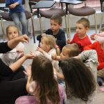 Vidám gyermekzsivaj töltötte be pénteken a Szekeres László Alapítvány termét, hiszen ismét Mesekuckó foglalkozás várta az óvodás korosztályt. Ezen a délutánon az Előbb a tánc, azután a lakoma című magyar népmese feldolgozása került sorra. Meseolvasás és -hallgatás közben sok mozgásos játékot és táncot iktattunk be, euztán pedig megnéztük a történet rajzfilmváltozatát is. Kézműves foglalkozásra is sor került: a szegény ember gyermekeit mintázták meg a kuckólakók ez alkalommal.