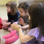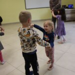 Hétfőn is folyt a tánc és a játék Hej tedd rá, most tedd rá! nevet viselő foglalkozásunkon. A gyermekek kedvenc népi mozgásos és körjátékaival kezdődött a móka. Aranygyűrűt kerestünk, majd a farkas próbálta elkapni a kisbárányokat. A folytatásban táncra perdültek kis vendégeink, méghozzá moldvai dallamokra. A már megtanult lépések mellett új táncelemekkel gazdagították tudásukat, majd befejezésképp a Héja, héja, vaslapát kezdetű játékkal búcsúztak egymástól.