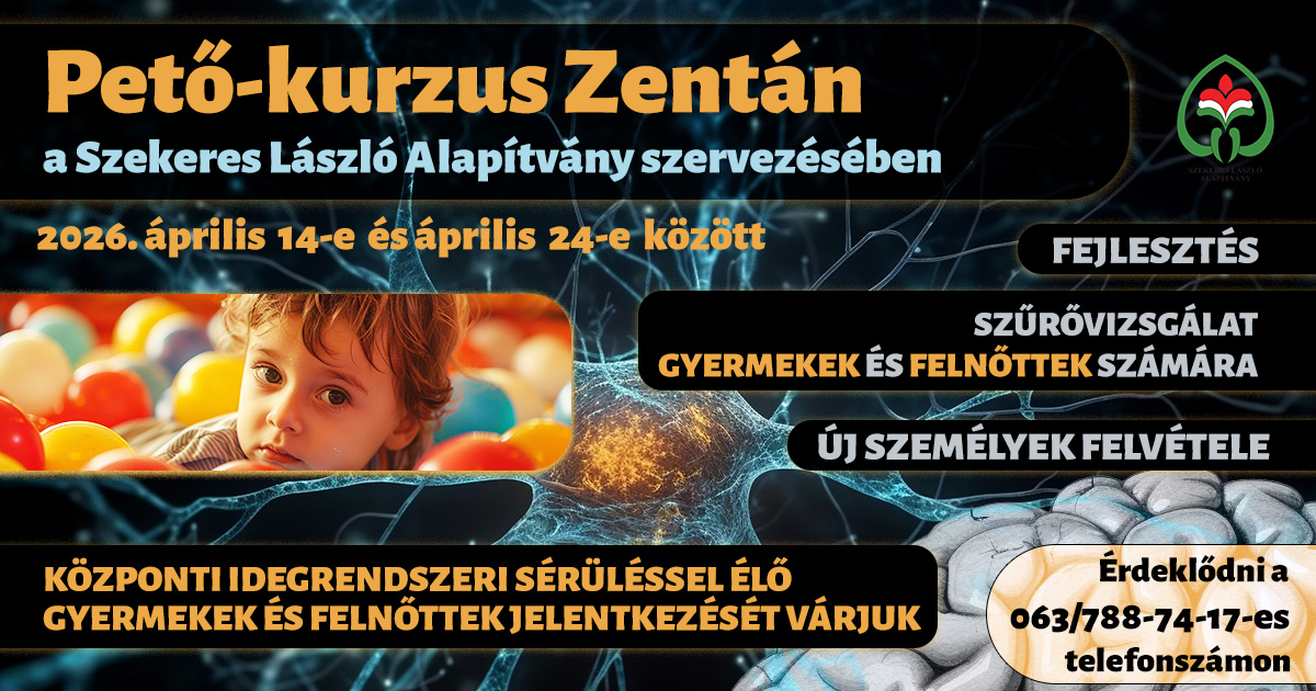 A Szekeres László Alapítvány keretén belül ismét megszervezésre kerül a budapesti székhelyű Semmelweis Egyetem Pető András Karának intenzív kurzusa, mely a központi idegrendszeri sérülésekkel küzdő személyek számára nyújt lehetőséget a fejlesztésre.