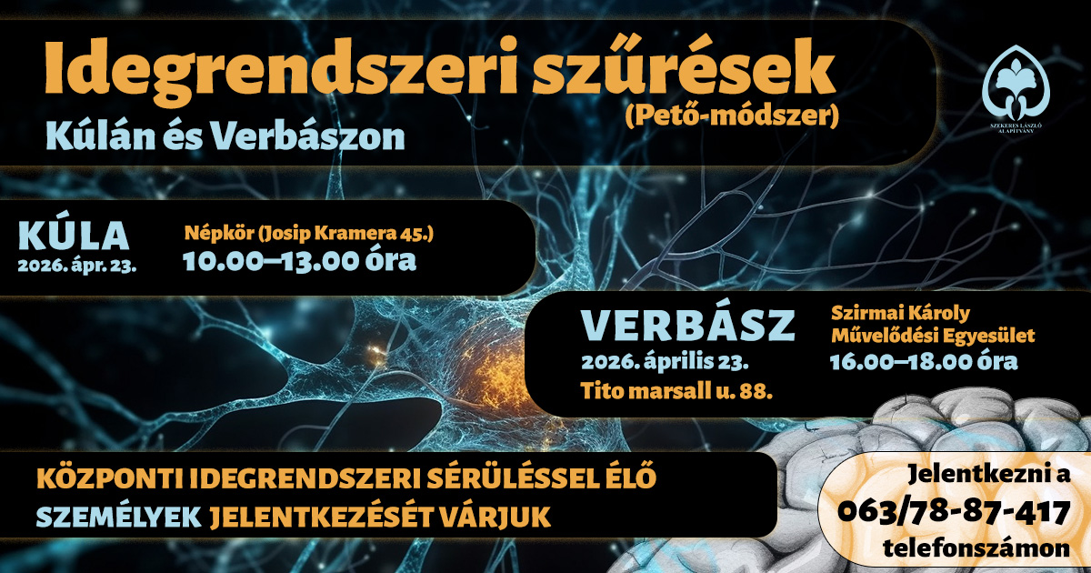 Ezúttal Vajdaság két településén, Kúlán és Verbászon várják a szakemberek a központi idegrendszeri sérüléssel élő felnőttek (Parkinson-kór, Sclerosis Multiplex, hemiplégia, stroke, agyvérzés, vagy valamilyen baleset következtében kialakult idegrendszeri sérülés), valamint a központi idegrendszer-sérüléssel rendelkező gyermekeket várnak, akiknek vezető tünete valamilyen mozgássérülés.